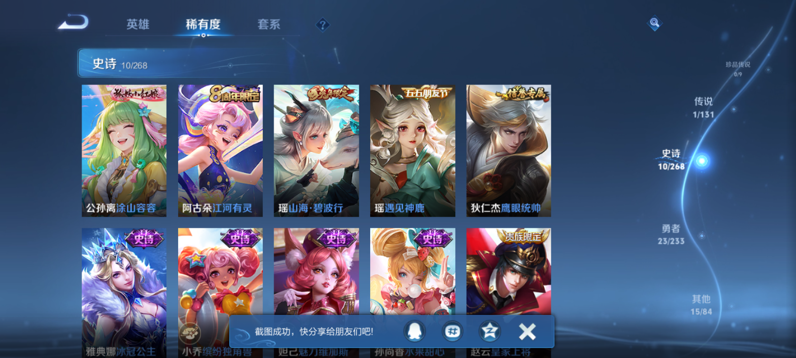 【王者荣耀】【lywz27183】珍品无双0 典藏0 无双0 珍品传说0 传说1 史诗10 英雄71 皮肤49 贵族2级 传说皮肤:瑶-时之祈愿__稀有限定:山海·碧波行|古海寻踪|海滩派对|海盐诗旅|皇家上将|江河有灵|擒涛扼浪|探海日志|醍醐杖|天穹祈灯|疑决卦|阴阳师|御銮|缤纷独角兽|冰冠公主|魅力维加斯|水果甜心|鹰眼统帅|遇见神鹿|云中旅人|灵卜魔法|逆浪荇歌|涂山容容__优质皮肤:露花倒影|森|伊势巫女|幸存者|赤焰之缨|剑舞者|星航指挥官|占星师|花间舞|蔷薇王座|战争女神|精灵公主|万圣前夜|虹云星官|死亡骑士|少女阿狸|玩偶对对碰|教廷特使|白执事|西施-归虚梦演|孙悟空-西部大镖客|乓乓大师|盾山-圆桌骑士|万事如意|花好人间__贵族等级:贵族2级__王者段位:荣耀黄金捡漏瑶 时之祈愿,山海·碧波行,遇见神鹿