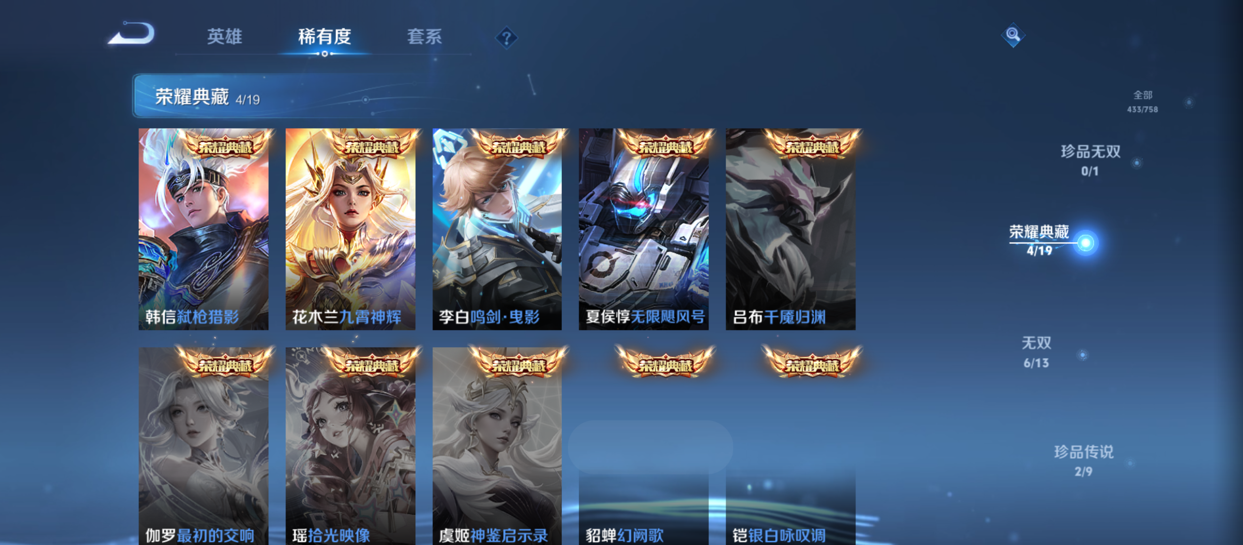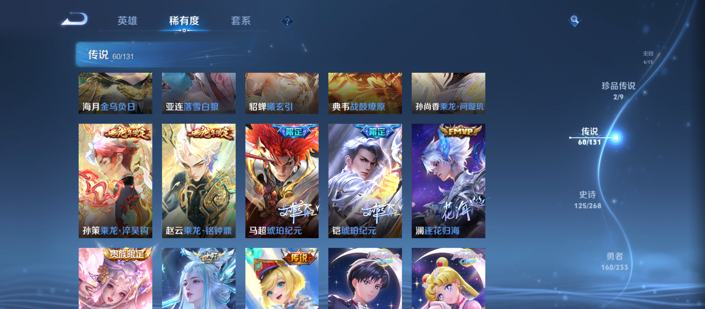 txwz28044-v10-433皮 金标李白 4典藏 无限飓风号,鸣剑·曳影,弑呛猎影,九霄神辉 6无双 器灵·螭龙剑,花合斗,青丘·九尾,时之魔女,碎月剑心,真我赫兹 2珍品 江户川柯南,怪盗基德 60传说 神树通天,末日机甲,云诺千山,黄金射手座,祈雪灵祝,幻光神呛,愿照·众生和,愿照·岁时盈,愿照·福禄聚,愿照·千秋盛,愿照·山河定,愿照·九州拓,玄雷天君,觅芳踪,记忆之芯,映山客,鸣野蒿,战鼓燎原,牧神诗旅,白虎志,时雨天司,音你心动,诗剑行,凤求凰,心动手记,群星魔术团,乞巧织情,仲夏夜之梦,久胜战神,落雪白狼,李 ,金乌负日,黄金狮子座,超时空战士,曦玄引,乘龙·铭钟鼎,乘龙·淬吴钩,乘龙·问璇玑,琥珀纪元,琥珀纪元,云霓雀翎,逐花归海,永恒水手月亮,启明星使,夜礼服假面,小动物乐团,一念神魔,霜月吟,鹤归松栖,炽阳神光,游龙清影,妄想实况,灼幽烈阳,无双飞将,鹤羽星尊,电玩·雷克斯,云鹰飞将,浮生妄,时之恋人,地狱之眼 124史诗