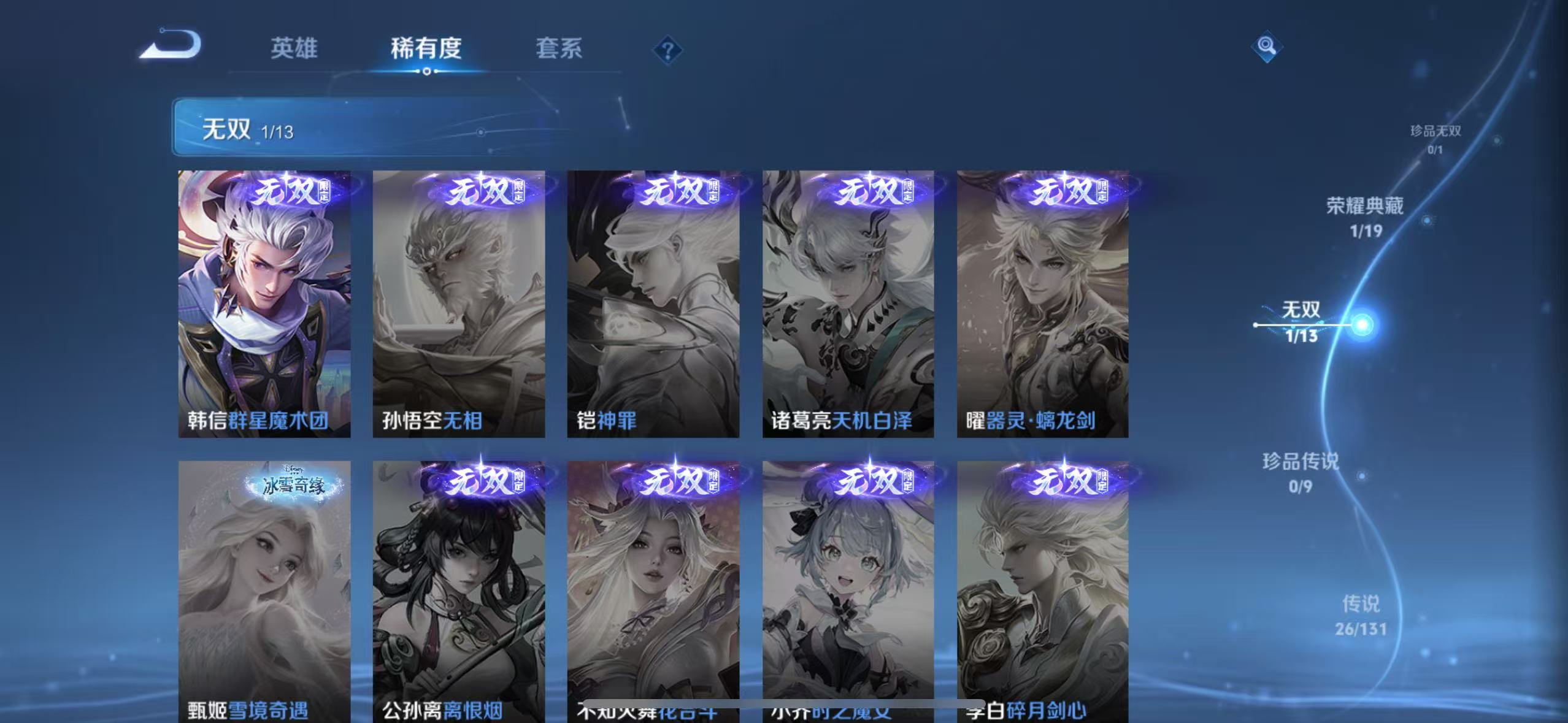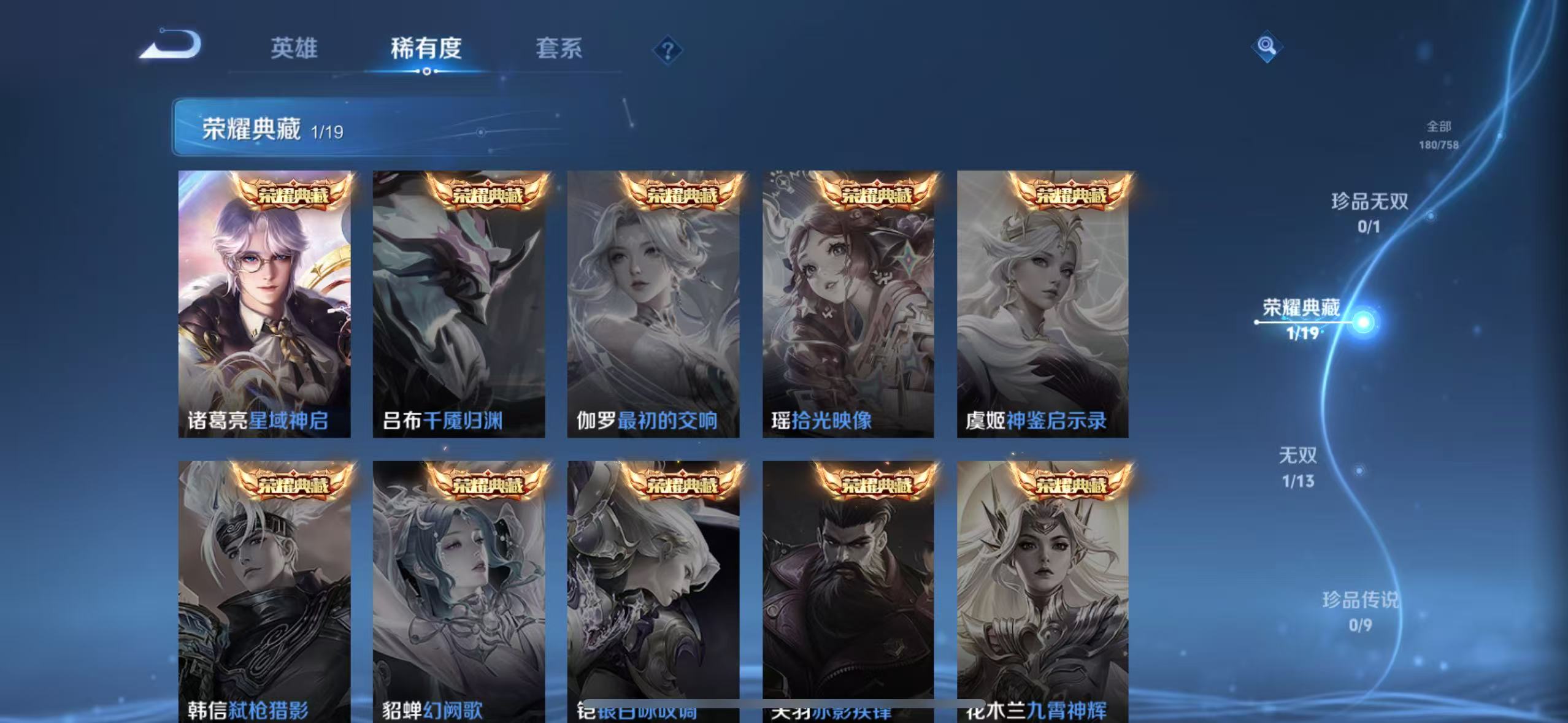 txwz28391 v8 180皮 1典藏 星域神启 1无双 群星魔术团 26传说 胖达荣荣,神树通天,乞巧织情,绛天战甲,启明星使,炽阳神光,时之恋人,久胜战神,祈雪灵祝,冠军飞将,浮生妄,无双飞将,幻光神呛,愿照·岁时盈,愿照·福禄聚,愿照·千秋盛,愿照·山河定,愿照·众生和,愿照·九州拓,祥瑞亨通,画中仙,怒海麟威,鸣野蒿,地狱之眼,逐花归海,末日机甲 57史诗