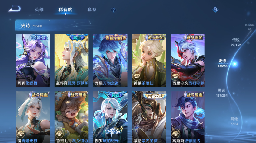 精品皮肤号雪境天幕 木兰典藏 曜无双 孙策马可珍品 黄金白羊座,末日机甲,游龙清影,淬星耀世,祈雪灵祝,愿照·九州拓,海洋之心,绛天战甲,黄金狮子座,黄金射手座,仲夏夜之梦,云鹰飞将,炽阳神光,地狱之眼,一念神魔,时之恋人【王者荣耀】【lywz27907】珍品无双0 典藏1 无双1 珍品传说2 传说22 史诗73 英雄127 皮肤313 贵族8级 荣耀典藏:武则天|九霄神辉__无双皮肤:器灵·螭龙剑__珍品传说:怪盗基德|孙策-时之奇旅__传说皮肤:鸣野蒿|音你闪耀|绛天战甲|炽阳神光|启明星使|地狱之眼|地狱火|海洋之心|孙策-末日机甲|仲夏夜之梦|黄金狮子座|黄金射手座|黄金白羊座|刘备-时之恋人|一念神魔|云鹰飞将|游龙清影|乞巧织情|淬星耀世|祈雪灵祝|幻光神呛|愿照·九州拓__稀有限定:至尊宝|飞衡|蔷薇恋人|神威|李小龙|拒霜思|百解令|冰锋战神|大漠名商|地狱燃心|高山流水|古海寻踪|海滩派对|海盐诗旅|华丽摇滚|皇家上将|混沌棋|剑破天穹|江河有灵|金庭之子|蓝屏警告|黎明之约|魔术师|女武神|千军破阵|擒涛扼浪|青焰无极|驱傩正仪|燃音魔法|荣光圣徽|沙漠行僧|死亡摇滚|探海日志|醍醐杖|天穹祈灯|万华元夜|无心|五谷丰年|纤云弄巧|星界游侠|演武夺筹|疑决卦|阴阳师|驭风魔法|遇见飞天|御旌|御銮|暗隐猎兽者|缤纷独角兽|冰冠公主|冰雪圆舞曲|乘风破浪|德古拉伯爵|电玩·爆裂旋风|伽罗-琥珀纪元|功夫厨神|鬼剑武藏|黄金分割率|箭羽风息|节奏热浪|金属风暴|李元芳-蔬乡物语|吕布-末日机甲|魅力维加斯|梦奇-顽趣|女仆咖啡|偶像歌手|奇遇舞章|热力回旋|圣诞狂欢|圣诞恋歌|鲁班七号-蔬乡物语|水果甜心|水晶猎龙者|孙策-猫狗日记|天才门将|赵云-未来纪元|星夜王子|摇滚巨星|鹰眼统帅|幽灵船长|月团寄思|逐浪之夏|紫霞仙子|百里守约-百相守梦|老夫子-百相守梦|噬灭天穹|天穹之誓|修罗|曙光守护者|心灵战警|孙尚香-时之恋人|舞动绿茵|特工魅影|心灵骇客|茶境仙|谧流熔炉|万物之道|器灵·浮梦炉|化蝶舞|原初探秘者|云中旅人|流音漫舞|访茗客|灵卜魔法|苍威无极|逆浪荇歌|荣光之誓__优质皮肤:尼罗河女神|一千零一夜|创世神祝|年年有余|埃及法老|孤猎|木偶奇遇记|熊喵少女|午夜歌剧院|未来旅行|激情绿茵|海之征途|天启骑士|碧珀绯影|秩序猎龙将|锦衣卫|冰刃幻境|森|超能战警|英喵野望|维京掠夺者|绯红之刃|踏雪寻梅|启蛰|战争骑士|伊势巫女|画中游|生化警戒|威尼斯狂欢|第七人偶|潮流仙人|芝加哥教父|街头旋风|绝影神呛|地府判官|荷鲁斯之眼|幸存者|赤焰之缨|福禄兄弟|隐刃|前尘|特种部队|三太子|精灵王|剑舞者|范海辛|星航指挥官|龙域领主|爱与和平|占星师|花间舞|魇语军师|极冰防御线|花见巫女|棒球奇才|东海龙王|蔷薇王座|灼热之刃|精准探案法|圣殿之光|帝国元帅|战争女神|霓裳曲|加勒比小姐|阿摩司公爵|异域舞娘|精灵公主|修竹墨客|万圣前夜|长夏之忆|破阵·退雄兵|异域游侠|暗都幽影|功夫炙烤|暖冬絮语|潮玩探月行|虎啸剑宗|瓷语鉴心|秘密基地|次元突破|鲨炮海盗猫|野性能量|丁香结|奇妙博物学|虹云星官|守护之力|坚韧之力|幻乐之宴|功夫老勺|命运角斗场|海滩丽影|阿尔法小队|兔女郎|死亡骑士|黄金武士|少女阿狸|天使之翼|玩偶对对碰|宫本武藏-未来纪元|红桃皇后|忍·炎影|街头霸王|教廷特使|金色潮汐|漠中幻影|时空谍影|决胜大满贯|破局者|零食大作战|西部游侠|太极少年|乐园追猎者|牛运亨通|幻泉雾影|潮玩造梦师|危途狂花|胡桃狂想曲|契约魔法|潮玩牛仔|重装意志|次元傲视|黑桃队长|进击墨子号|拳王|时尚教父|白色死神|白执事|大发明家|哥特玫瑰|魅影绮裳|西施-雪境奇遇|星梦巡礼|灵卦秘语|景韶洛都|浪漫序章|缤纷绘卷|掌控之力|雾都夜雨|逐霄战戟|铁骨偃魂|龙腾万里|霸王丸|乱世虎臣|经纬探寻者|敏锐之力|西施-归虚梦演|孙悟空-西部大镖客|牛魔-西部大镖客|鲁班大师-归虚梦演|热血海滩|龙舞盛年|汉昭烈帝|乓乓大师|五福同心|盾山-圆桌骑士|蒙犽-归虚梦演|万事如意|曜-归虚梦演|唤灵魔甲|太乙真人-圆桌骑士|沉稳之力|程咬金-群星魔术团|完美运算|化身博士|花好人间|春野之旅|无尽旅途|万象初新|苍林狼骑|蔚蓝守将|劲辣红锅|特工战影|炽热元素使|妄想特派|玫蓝誓约|无双福将__贵族等级:贵族8级__王者段位:尊贵铂金