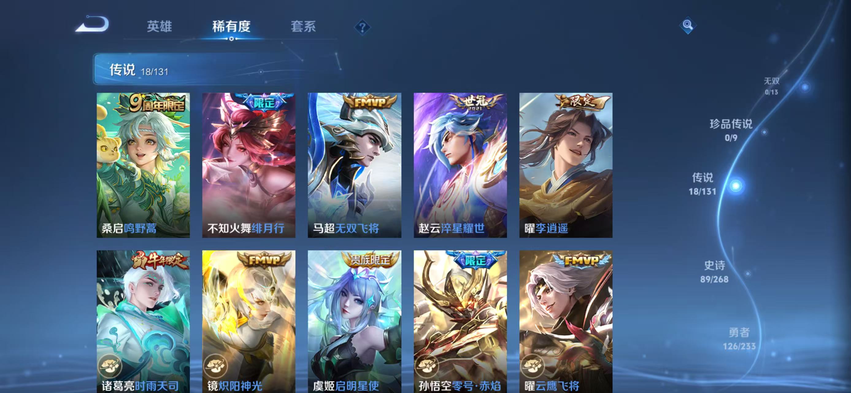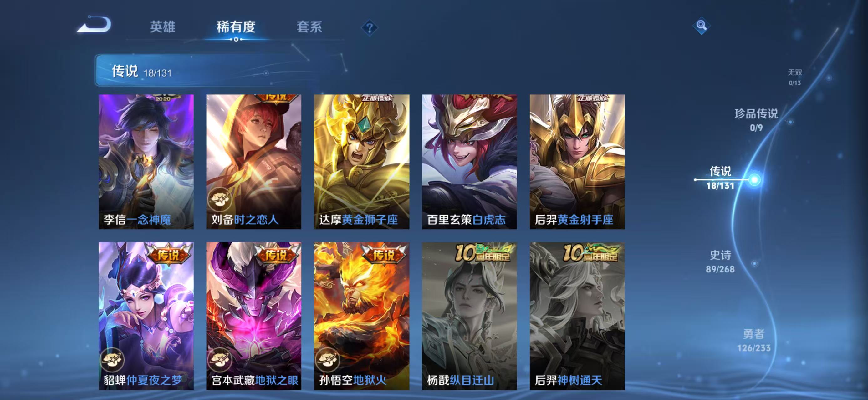 txwz28545 v8 297皮 典藏2( 拾光映像,鸣剑·曳影)传说18(鸣野蒿,时之恋人,绯月行,黄金射手座,无双飞将,启明星使,地狱之眼,李 ,仲夏夜之梦,淬星耀世,时雨天司,黄金狮子座,零号·赤焰,云鹰飞将,白虎志,一念神魔,地狱火,炽阳神光)史诗89(至尊宝)