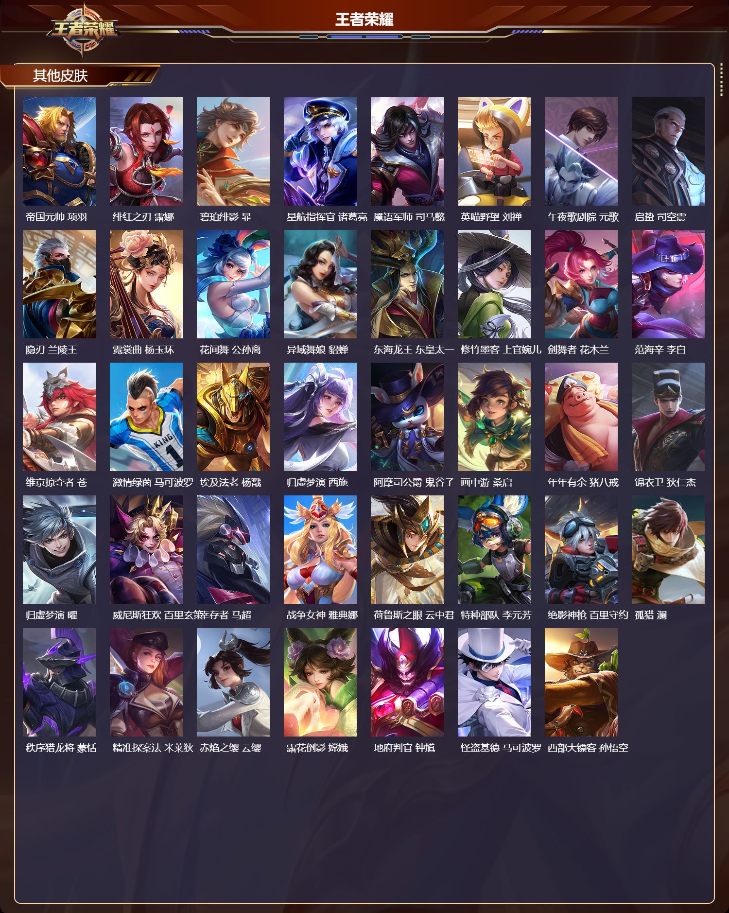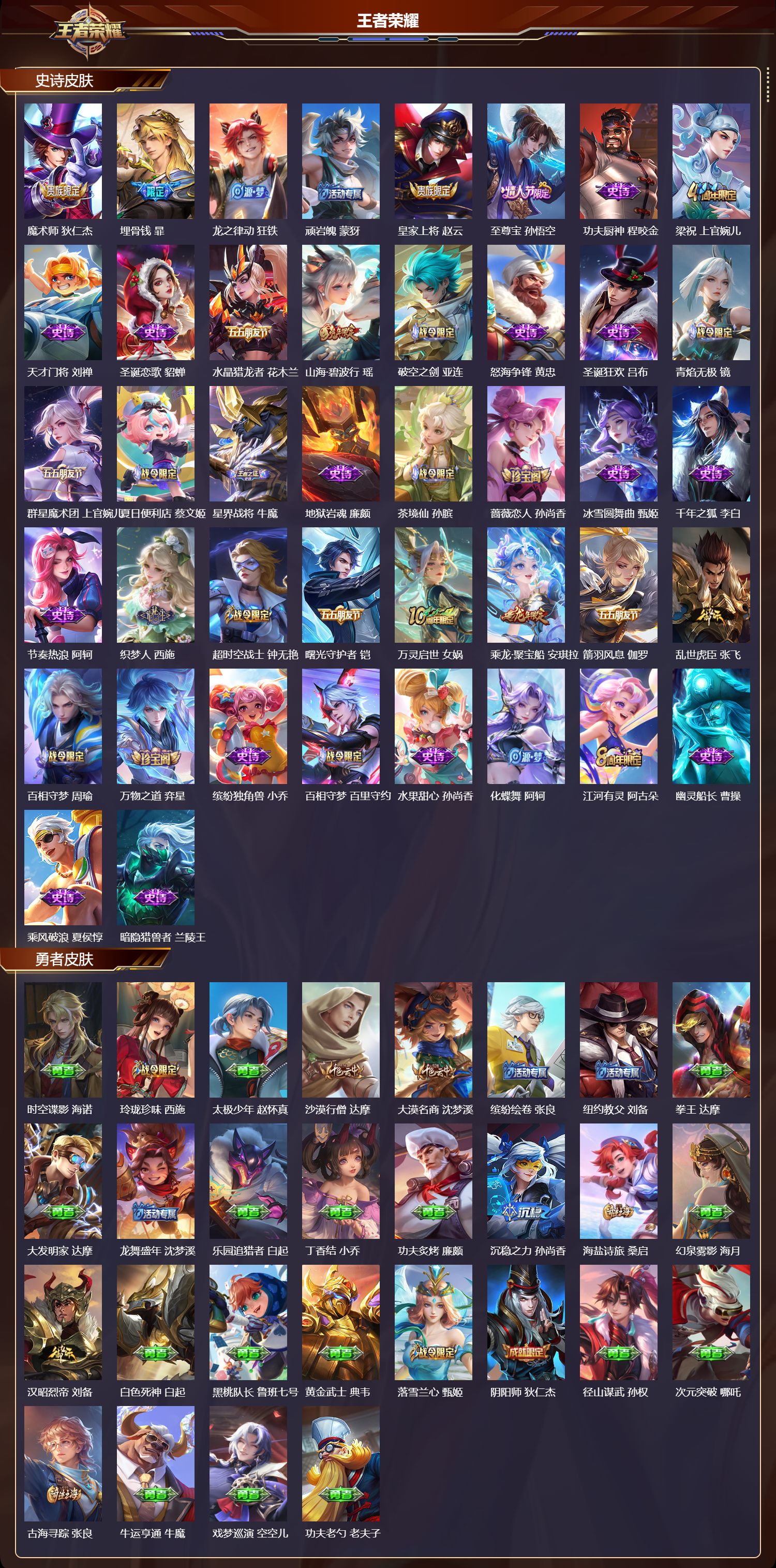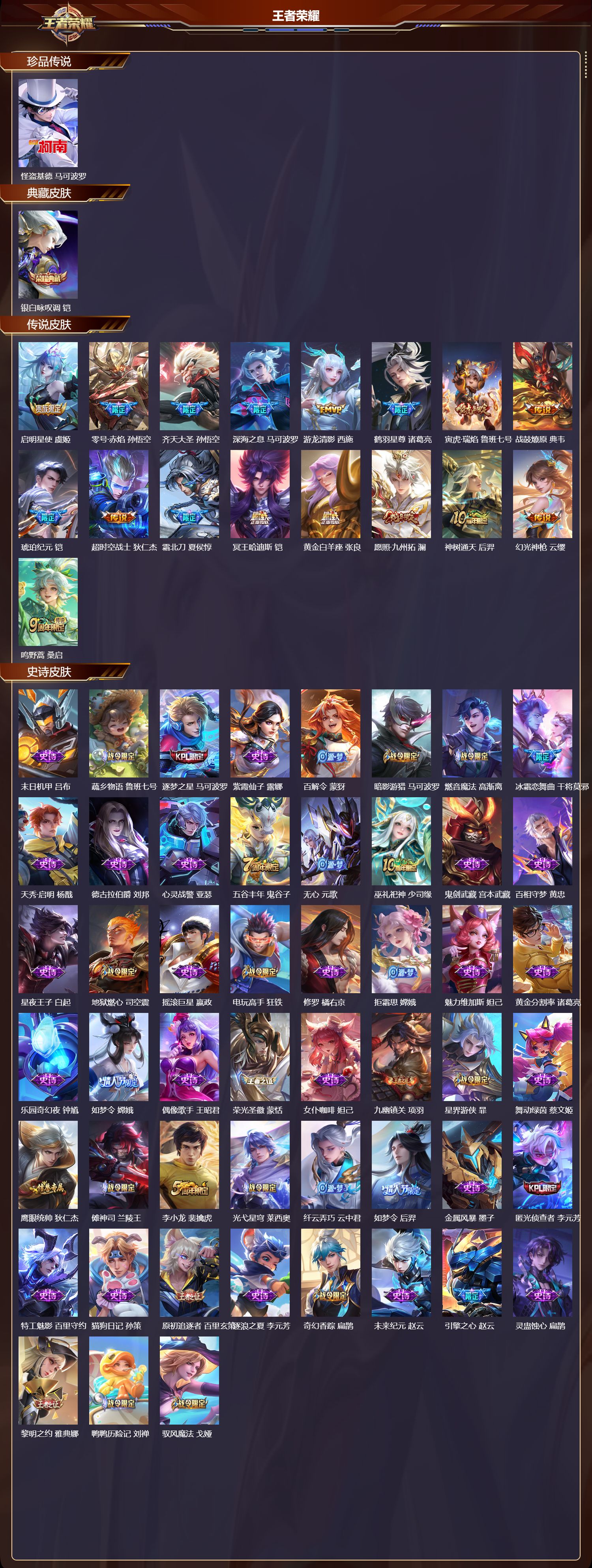 安卓qq/非凡王者/317皮肤/127英雄/1典藏/0珍品无双/0无双/1珍品传说/17传说/93史诗/8稀有英雄【1 珍品传说】怪盗基德 马可波罗【1 典藏皮肤】银白咏叹调 铠【17 传说皮肤】启明星使 虞姬零号·赤焰 孙悟空齐天大圣 孙悟空深海之息 马可波罗游龙清影 西施鹤羽星尊 诸葛亮寅虎·瑞焰 鲁班七号战鼓燎原 典韦琥珀纪元 铠超时空战士 狄仁杰霜北刀 夏侯惇冥王