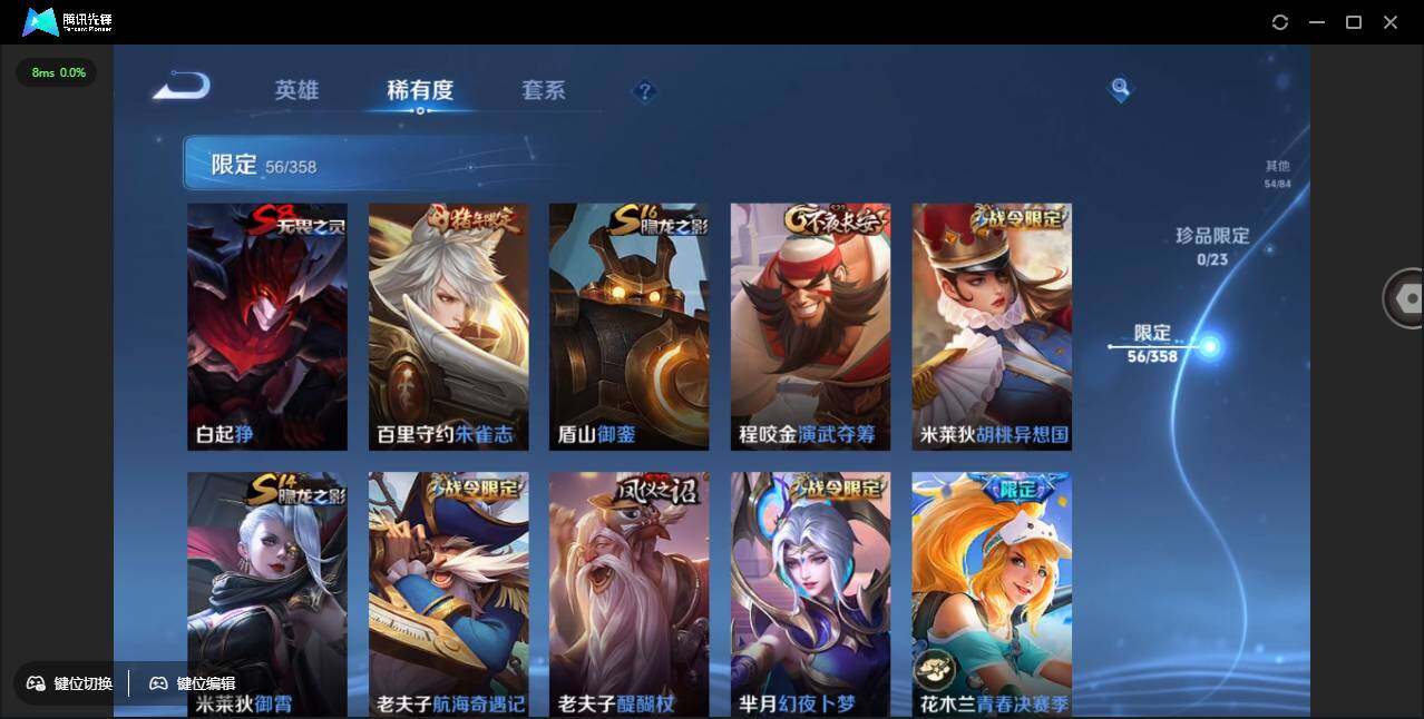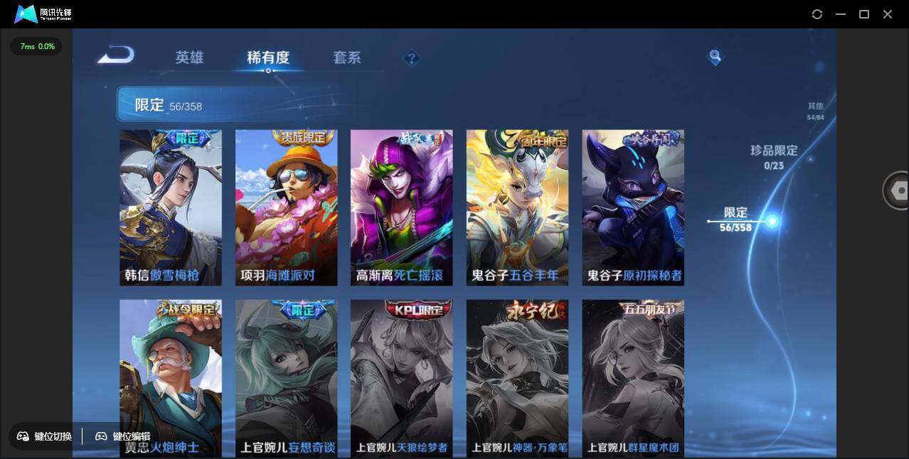 贵族7/皮肤193/传说7/史诗49/英雄125/狄仁杰星际治安官/孙策末日机甲/孙悟空零号赤焰/李信一念神魔/刘备时之恋人/干将莫邪久胜战神/貂蝉仲夏夜之梦/狄仁杰超时空战士/白起狰/狄仁杰阴阳师/赵云皇家上将/赵云百木心呛/墨子神迹守卫/嬴政优雅恋人/庄周高山流水/高渐离死亡摇滚/芈月幻夜卜梦/吕布御风骁将/元歌云间偶戏/元歌无心/夏侯惇朔风刀/曹操烛龙/典韦穷奇/狄仁杰魔术师/狄仁杰万华元夜/达摩星际陆战队/达摩沙漠行僧/项羽海滩派对/老夫子醍醐杖/老夫子航海奇遇记/程咬金演武夺筹/韩信傲雪梅呛/兰陵王金庭之子/花木兰青春决赛季/花木兰默契交锋/亚瑟潮玩骑士王/孙悟空大圣娶亲/孙悟空孙行者/牛魔御旌/后羿圣弓游侠/李元芳云中旅人/钟馗驱傩正仪/干将莫邪真爱魔法/蔡文姬繁星吟游/鬼谷子原初探秘者/鬼谷子五谷丰年/黄忠火炮绅士/苏烈千军破阵/百里守约朱雀志/弈星混沌棋/沈梦溪大漠名商/明世隐疑决卦/裴擒虎李小龙/裴擒虎擒涛扼浪/狂铁御狮/米莱狄御霄/米莱狄胡桃异想国/云中君纤云弄巧/盾山御銮/猪八戒猪悟能/上官婉儿梁祝/嫦娥拒霜思/桑启海盐诗旅/赵云未来纪元/貂蝉圣诞恋歌/廉颇地狱岩魂/宫本武藏鬼剑武藏/孙尚香水果甜心/妲己魅力维加斯/妲己女仆咖啡/墨子金属风暴/刘禅绅士熊喵/曹操幽灵船长/花木兰水晶猎龙者/刘邦德古拉伯爵/铠曙光守护者/程咬金功夫厨神/孙策猫狗日记/狄仁杰鹰眼统帅/公孙离无限星赏官/不知火舞魅语/橘右京修罗/瑶遇见神鹿/孙尚香时之恋人/安琪拉时之奇旅/夏洛特永昼/澜赏金猎手/韩信教廷特使/韩信街头霸王/达摩大发明家/芈月红桃皇后/程咬金星际陆战队/白起白色死神/扁鹊化身博士/安琪拉玩偶对对碰/姜子牙时尚教父/妲己少女阿狸/典韦黄金武士/亚瑟死亡骑士/达摩拳王/花木兰兔女郎/张飞五福同心/甄姬花好人间/刘备万事如意/宫本武藏万象初新/刘备纽约教父/刘备汉昭烈帝/关羽龙腾万里/钟无艳海滩丽影/宫本武藏霸王丸/王昭君幻想奇妙夜/老夫子功夫老勺/牛魔制霸全明星/孙尚香沉稳之力/鬼谷子幻乐之宴/苏烈坚韧之力/大乔守护之力/项羽科学大爆炸/明世隐虹云星官/吕布野性能量/孙膑归虚梦演/沈梦溪鲨炮海盗猫/姜子牙炽热元素使/哪吒次元突破/鲁班七号黑桃队长/盾山圆桌骑士/狂铁特工战影/刘禅秘密基地/杨戬次元傲视/露娜瓷语鉴心/张良缤纷绘卷/鲁班大师乓乓大师/典韦铁甲之心/马可波罗潮玩牛仔/程咬金无双福将/刘禅唤灵魔甲/猪八戒潮玩探月行/赵怀真太极少年/廉颇功夫炙烤/姜子牙星梦巡礼/鲁班七号福禄兄弟/项羽帝国元帅/露娜绯红之刃/貂蝉异域舞娘/花木兰剑舞者/老夫子潮流仙人/王昭君精灵公主/狄仁杰锦衣卫/曹操死神来了/张良一千零一夜/小乔万圣前夜/孙悟空西部大镖客/周瑜海军大将/后羿精灵王/刘禅英喵野望/兰陵王隐刃/李白范海辛/钟馗地府判官/李元芳特种部队/虞姬加勒比小姐/关羽天启骑士/蔡文姬蔷薇王座/雅典娜战争女神/马可波罗激情绿茵/苍维京掠夺者/杨戬埃及法老/诸葛亮星航指挥官/黄忠芝加哥教父/大乔伊势巫女/东皇太一东海龙王/干将莫邪第七人偶/鬼谷子阿摩司公爵/铠龙域领主/百里守约绝影神呛/百里玄策威尼斯狂欢/公孙离花间舞/杨玉环霓裳曲/裴擒虎街头旋风/米莱狄精准探案法/司马懿魇语军师/伽罗花见巫女/李信灼热之刃/猪八戒年年有余/瑶森/云中君荷鲁斯之眼/曜归虚梦演/马超幸存者/镜冰刃幻境/蒙恬秩序猎龙将/澜孤猎/司空震启蛰/云缨赤焰之缨/金蝉前尘/暃碧珀绯影