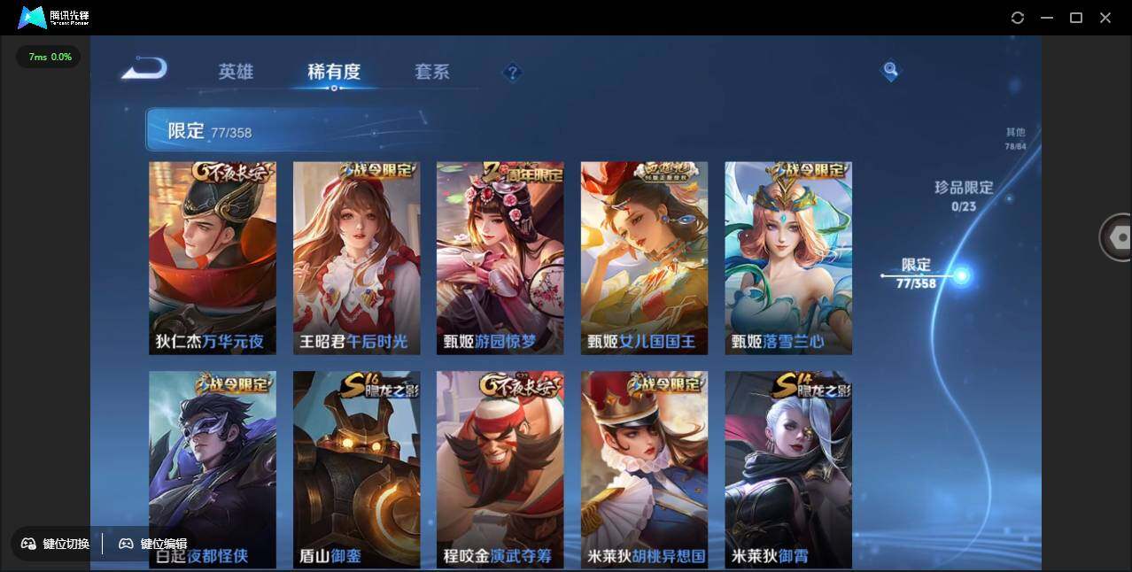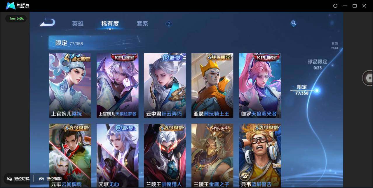 贵族8/皮肤282/典藏2/传说8/史诗83/英雄127/夏侯惇无限飓风号/李白鸣剑曳影/孙悟空幽冥火/孙尚香未来机甲/赵云淬星耀世/虞姬启明星使/刘备时之恋人/虞姬云霓雀翎/梦奇胖达荣荣/孙尚香末日机甲/宫本武藏地狱之眼/孙悟空地狱火/狄仁杰阴阳师/赵云皇家上将/赵云百木心呛/墨子神迹守卫/嬴政优雅恋人/嬴政白昼王子/孙尚香蔷薇恋人/鲁班七号狮舞东方/庄周高山流水/高渐离死亡摇滚/高渐离玩趣恶龙/钟无艳超时空战士/白起夜都怪侠/芈月重明/芈月幻夜卜梦/吕布猎兽之王/周瑜赤莲之焰/元歌云间偶戏/元歌无心/夏侯惇朔风刀/甄姬女儿国国王/甄姬游园惊梦/甄姬落雪兰心/曹操烛龙/典韦穷奇/典韦蓝屏警告/狄仁杰魔术师/狄仁杰万华元夜/达摩星际陆战队/达摩沙漠行僧/项羽海滩派对/老夫子醍醐杖/老夫子航海奇遇记/程咬金演武夺筹/韩信逐梦之影/韩信飞衡/韩信傲雪梅呛/王昭君午后时光/兰陵王驯魔猎人/兰陵王金庭之子/花木兰默契交锋/亚瑟潮玩骑士王/孙悟空孙行者/牛魔御旌/后羿圣弓游侠/李元芳云中旅人/钟馗神迹守卫/钟馗驱傩正仪/杨玉环遇见飞天/女娲朔望之晖/干将莫邪真爱魔法/蔡文姬繁星吟游/鬼谷子原初探秘者/鬼谷子五谷丰年/黄忠火炮绅士/苏烈千军破阵/弈星混沌棋/梦奇顽趣/沈梦溪大漠名商/明世隐疑决卦/明世隐吟游魔法/裴擒虎李小龙/裴擒虎擒涛扼浪/狂铁御狮/狂铁电玩高手/米莱狄御霄/米莱狄胡桃异想国/云中君纤云弄巧/伽罗天狼溯光者/盾山御銮/上官婉儿梁祝/上官婉儿天狼绘梦者/嫦娥拒霜思/嫦娥暖冬兔眠/桑启海盐诗旅/暃星界游侠/周瑜熔金海岸/鲁班七号电玩小子/项羽苍穹之光/阿轲暗夜猫娘/赵云未来纪元/貂蝉圣诞恋歌/甄姬冰雪圆舞曲/王昭君偶像歌手/廉颇地狱岩魂/宫本武藏鬼剑武藏/孙尚香水果甜心/嬴政暗夜贵公子/嬴政摇滚巨星/妲己魅力维加斯/妲己女仆咖啡/墨子龙骑士/墨子金属风暴/吕布圣诞狂欢/刘禅绅士熊喵/曹操幽灵船长/李白千年之狐/吕布末日机甲/张飞乱世虎臣/韩信白龙吟/花木兰水晶猎龙者/刘邦德古拉伯爵/夏侯惇乘风破浪/小乔缤纷独角兽/兰陵王暗隐猎兽者/诸葛亮黄金分割率/亚瑟心灵战警/雅典娜冰冠公主/安琪拉心灵骇客/百里守约特工魅影/蔡文姬舞动绿茵/刘禅天才门将/李元芳逐浪之夏/程咬金功夫厨神/白起星夜王子/阿轲节奏热浪/大乔猫狗日记/伽罗箭羽风息/狄仁杰鹰眼统帅/娜可露露晚萤/不知火舞魅语/橘右京修罗/安琪拉时之奇旅/韩信教廷特使/韩信街头霸王/露娜哥特玫瑰/阿轲爱心护理/达摩大发明家/赵云白执事/赵云忍炎影/芈月红桃皇后/程咬金星际陆战队/白起白色死神/牛魔西部大镖客/扁鹊化身博士/扁鹊救世之瞳/宫本武藏未来纪元/安琪拉玩偶对对碰/孙膑天使之翼/姜子牙时尚教父/妲己少女阿狸/典韦黄金武士/亚瑟死亡骑士/达摩拳王/花木兰兔女郎/张飞五福同心/甄姬花好人间/刘备万事如意/宫本武藏万象初新/后羿阿尔法小队/刘备纽约教父/刘备汉昭烈帝/关羽龙腾万里/墨子进击墨子号/钟无艳海滩丽影/宫本武藏霸王丸/王昭君幻想奇妙夜/狂铁命运角斗场/老夫子功夫老勺/孙尚香沉稳之力/诸葛亮掌控之力/李白敏锐之力/鬼谷子幻乐之宴/苏烈坚韧之力/大乔守护之力/项羽科学大爆炸/明世隐虹云星官/张良幽兰居士/小乔丁香结/吕布野性能量/孙膑归虚梦演/沈梦溪鲨炮海盗猫/姜子牙炽热元素使/哪吒次元突破/盾山圆桌骑士/狂铁特工战影/刘禅秘密基地/杨戬次元傲视/张良缤纷绘卷/鲁班大师乓乓大师/典韦铁甲之心/程咬金无双福将/刘禅唤灵魔甲/蒙恬蔚蓝守将/刘备潮玩造梦师/海月幻泉雾影/猪八戒潮玩探月行/白起乐园追猎者/赵怀真太极少年/莱西奥西部游侠/李元芳妄想特派/廉颇功夫炙烤/大司命暗都幽影/姜子牙星梦巡礼/鲁班七号福禄兄弟/鲁班七号木偶奇遇记/高渐离金属狂潮/项羽帝国元帅/露娜绯红之刃/钟无艳生化警戒/貂蝉异域舞娘/花木兰剑舞者/老夫子潮流仙人/程咬金华尔街大亨/王昭君精灵公主/狄仁杰锦衣卫/曹操超能战警/张良一千零一夜/小乔万圣前夜/孙膑未来旅行/孙悟空西部大镖客/周瑜海军大将/后羿精灵王/刘禅英喵野望/兰陵王隐刃/李白范海辛/钟馗地府判官/李元芳特种部队/刘邦圣殿之光/虞姬加勒比小姐/关羽天启骑士/蔡文姬蔷薇王座/夏侯惇战争骑士/雅典娜战争女神/马可波罗激情绿茵/苍维京掠夺者/杨戬埃及法老/太乙真人圆桌骑士/诸葛亮星航指挥官/黄忠芝加哥教父/大乔伊势巫女/东皇太一东海龙王/干将莫邪第七人偶/鬼谷子阿摩司公爵/铠龙域领主/百里守约绝影神呛/百里玄策威尼斯狂欢/苏烈爱与和平/梦奇美梦成真/女娲尼罗河女神/明世隐占星师/公孙离花间舞/杨玉环霓裳曲/裴擒虎街头旋风/弈星踏雪寻梅/米莱狄精准探案法/元歌午夜歌剧院/孙策海之征途/司马懿魇语军师/盾山极冰防御线/伽罗花见巫女/沈梦溪棒球奇才/李信灼热之刃/上官婉儿修竹墨客/嫦娥露花倒影/猪八戒年年有余/盘古创世神祝/瑶森/云中君荷鲁斯之眼/曜归虚梦演/马超幸存者/西施归虚梦演/鲁班大师归虚梦演/蒙犽归虚梦演/镜冰刃幻境/蒙恬秩序猎龙将/阿古朵熊喵少女/澜孤猎/司空震启蛰/云缨赤焰之缨/暃碧珀绯影/桑启画中游