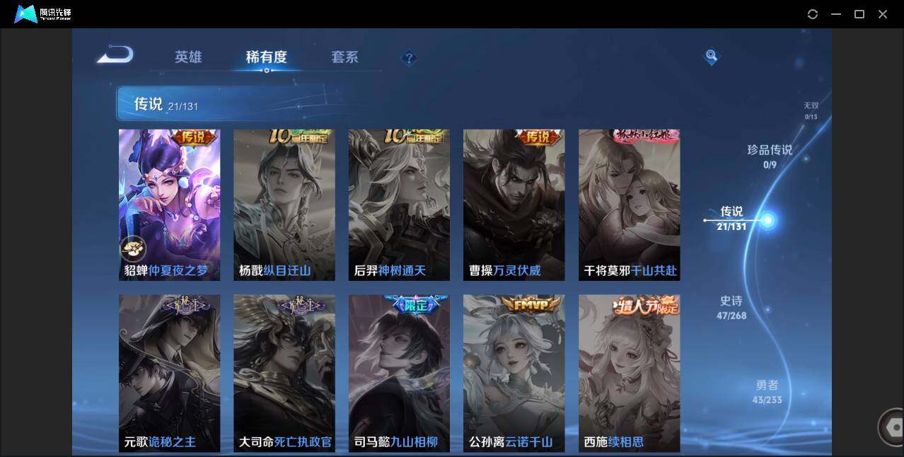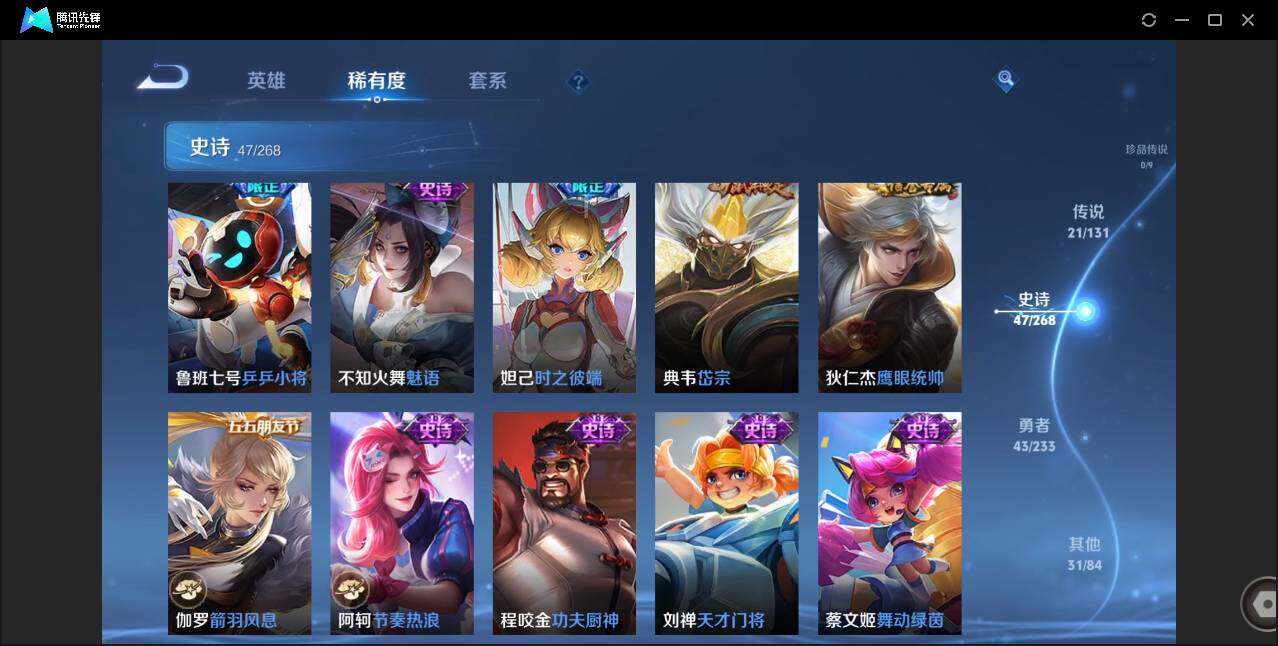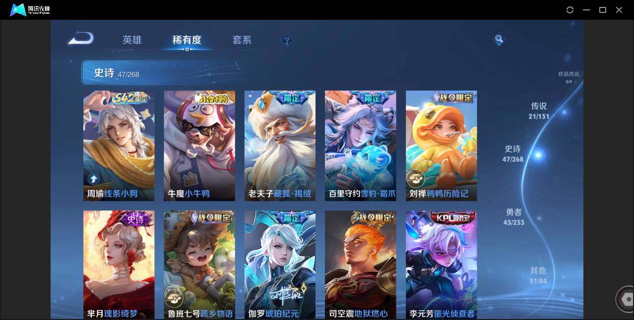 贵族2/皮肤142/传说21/史诗46/英雄123/刘备时之思念/蔡文姬愿照福禄聚/桑启鸣野蒿/孙尚香乘龙问璇玑/王昭君永恒水手月亮/马可波罗妄想实况/公孙离记忆之芯/李白诗剑行/后羿无尽星芒/孙策末日机甲/赵云淬星耀世/周瑜音你心动/小乔音你心动/铠绛天战甲/虞姬启明星使/孙悟空零号赤焰/李信一念神魔/刘备时之恋人/虞姬云霓雀翎/达摩黄金狮子座/花木兰冠军飞将/貂蝉仲夏夜之梦/姜子牙天穹之誓/狄仁杰阴阳师/赵云皇家上将/妲己时之彼端/鲁班七号乒乒小将/典韦岱宗/狄仁杰魔术师/项羽海滩派对/关羽冰锋战神/李元芳匿光侦查者/鲁班大师探海日志/艾琳流音漫舞/司空震地狱燃心/张良古海寻踪/鬼谷子天穹祈灯/伽罗琥珀纪元/鲁班七号蔬乡物语/李元芳蔬乡物语/周瑜熔金海岸/东皇太一噬灭天穹/太乙真人谧流熔炉/钟馗虚灵犬护/亚瑟荣光之誓/刘禅鸭鸭历险记/沈梦溪鸭鸭历险记/周瑜线条小狗/露娜紫霞仙子/甄姬冰雪圆舞曲/廉颇地狱岩魂/宫本武藏鬼剑武藏/孙尚香水果甜心/妲己魅力维加斯/墨子龙骑士/吕布圣诞狂欢/曹操幽灵船长/张飞乱世虎臣/韩信白龙吟/花木兰水晶猎龙者/刘邦德古拉伯爵/夏侯惇乘风破浪/兰陵王暗隐猎兽者/诸葛亮黄金分割率/亚瑟心灵战警/雅典娜冰冠公主/安琪拉心灵骇客/蔡文姬舞动绿茵/刘禅天才门将/程咬金功夫厨神/阿轲节奏热浪/伽罗箭羽风息/狄仁杰鹰眼统帅/不知火舞魅语/杨戬天秀启明/高渐离天秀音浪/庄周天秀幻梦/米莱狄完美假期/百里守约真我赫兹/芈月瑰影绮梦/百里守约雪豹霜爪/老夫子藏狐褐绒/牛魔小牛鸭/韩信教廷特使/露娜哥特玫瑰/阿轲爱心护理/赵云忍炎影/芈月红桃皇后/武则天东方不败/安琪拉玩偶对对碰/孙膑天使之翼/典韦黄金武士/亚瑟死亡骑士/甄姬花好人间/宫本武藏万象初新/后羿阿尔法小队/关羽龙腾万里/钟无艳海滩丽影/孙尚香沉稳之力/诸葛亮掌控之力/李白敏锐之力/小乔丁香结/哪吒次元突破/狂铁特工战影/张良缤纷绘卷/鲁班大师乓乓大师/程咬金无双福将/廉颇功夫炙烤/亚瑟动物派对/干将莫邪雾都夜雨/姬小满小满鸭/艾琳鹤鸣心笺/鲁班七号福禄兄弟/鲁班七号木偶奇遇记/高渐离金属狂潮/露娜绯红之刃/貂蝉异域舞娘/老夫子潮流仙人/曹操超能战警/张良一千零一夜/孙膑未来旅行/孙悟空西部大镖客/周瑜海军大将/后羿精灵王/钟馗地府判官/关羽天启骑士/蔡文姬蔷薇王座/马可波罗激情绿茵/苍维京掠夺者/哪吒三太子/黄忠芝加哥教父/百里玄策威尼斯狂欢/苏烈爱与和平/明世隐占星师/司马懿魇语军师/盘古创世神祝/瑶森/云中君荷鲁斯之眼/曜归虚梦演/镜冰刃幻境/金蝉前尘/暃碧珀绯影/桑启画中游