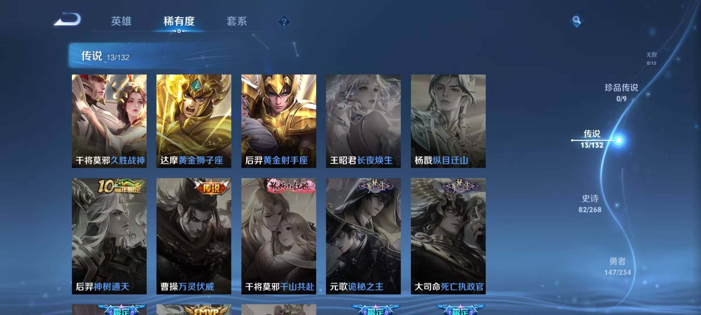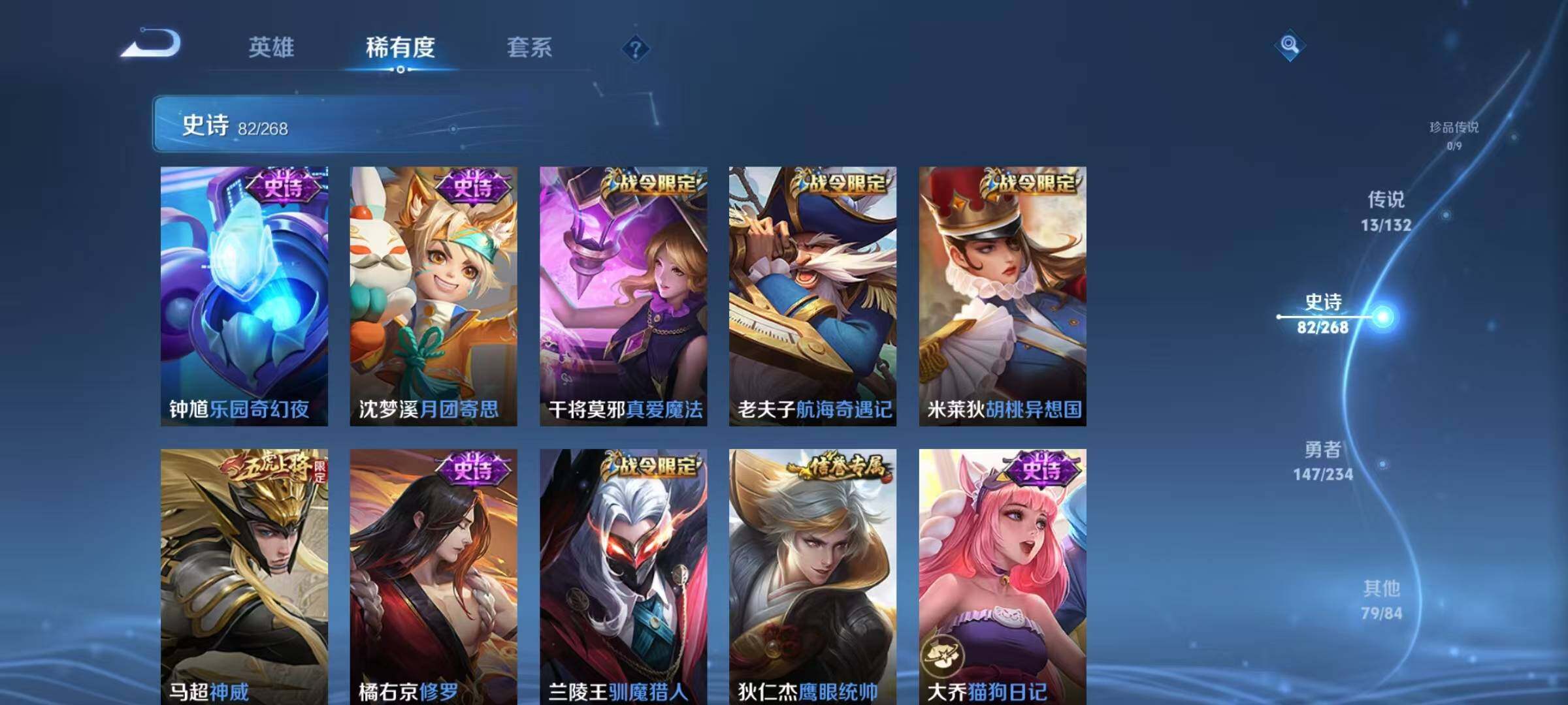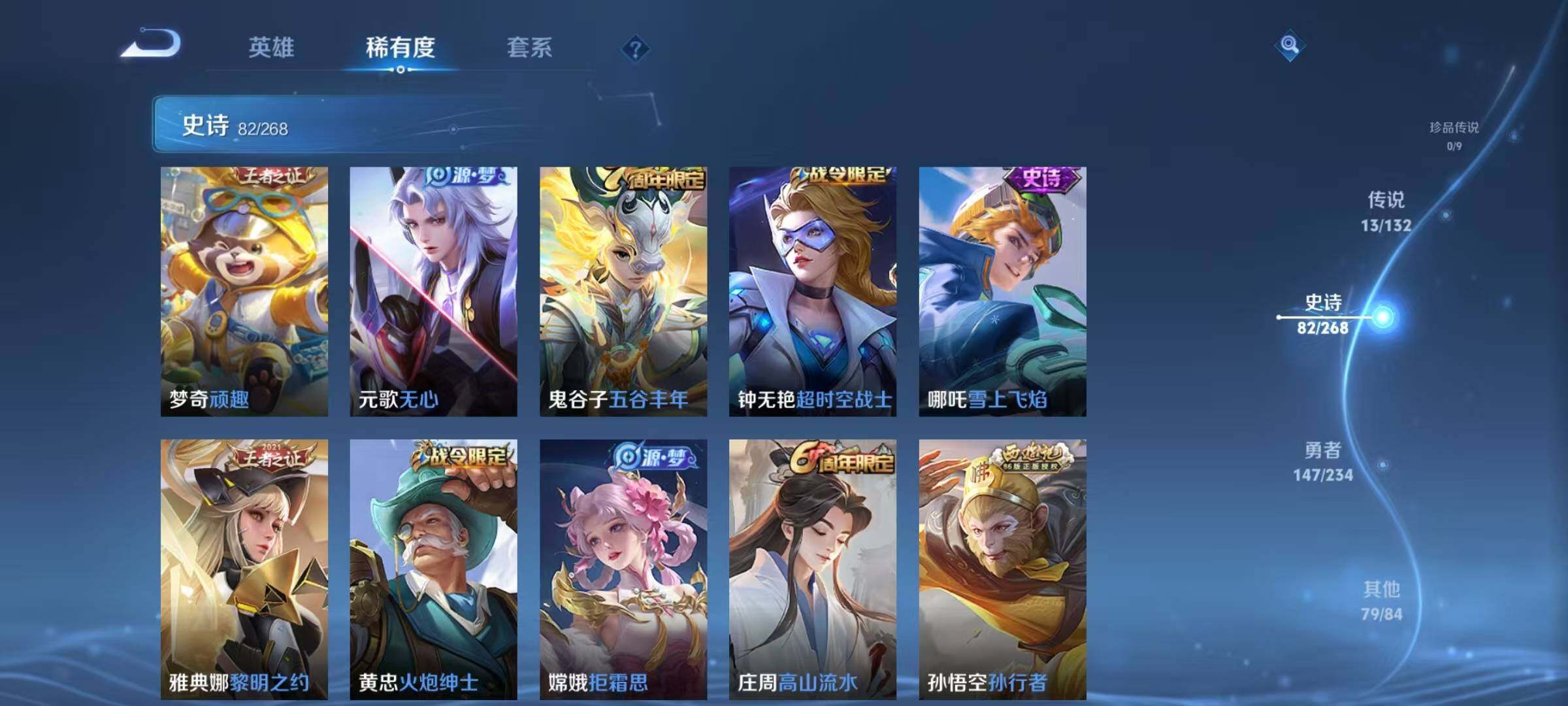 安卓q-v7-尊贵铂金i段位-127英雄-324皮肤-3典藏皮肤-13传说-81史诗 【英雄全皮】:刘禅全皮,达摩全皮,刘邦全皮,影全皮 【荣耀典藏】:夏侯惇无限飓风号,李白鸣剑曳影,铠银白咏叹调 【传说皮肤】:桑启鸣野蒿,孙策末日机甲,赵云淬星耀世,王昭君乞巧织情,周瑜音你心动,铠绛天战甲,虞姬启明星使,刘备时之恋人,貂蝉猫影幻舞,张良黄金白羊座,干将莫邪久胜战神,达摩黄金狮子座,后羿黄金射手座 【限定皮肤】:暃埋骨钱,蒙犽顽岩魄,蔡文姬夏日便利店,虞姬夏日便利店,姜子牙天穹之誓,杨戬破阵退雄兵,狄仁杰阴阳师,赵云皇家上将,墨子神迹守卫,嬴政优雅恋人,孙尚香蔷薇恋人,庄周高山流水,钟无艳超时空战士,芈月幻夜卜梦,元歌无心,甄姬游园惊梦,甄姬落雪兰心,马可波罗山海玄木吟,狄仁杰魔术师,狄仁杰万华元夜,达摩星际陆战队,达摩沙漠行僧,项羽海滩派对,老夫子航海奇遇记,安琪拉魔法小厨娘,程咬金演武夺筹,刘邦夺宝奇兵,兰陵王驯魔猎人,兰陵王金庭之子,孙悟空至尊宝,孙悟空孙行者,后羿圣弓游侠,李元芳云中旅人,虞姬启明星使,钟馗驱傩正仪,杨戬潮玩骑兵,女娲朔望之晖,干将莫邪真爱魔法,雅典娜黎明之约,鬼谷子原初探秘者,鬼谷子五谷丰年,黄忠火炮绅士,苏烈千军破阵,梦奇顽趣,沈梦溪星空之诺,沈梦溪大漠名商,裴擒虎擒涛扼浪,米莱狄胡桃异想国,猪八戒西部大镖客,嫦娥拒霜思,西施玲珑珍味,鲁班大师探海日志,桑启海盐诗旅,鬼谷子天穹祈灯,姬小满妄想食味,沈梦溪龙舞盛年,刘邦剑破天穹,程咬金群星魔术团,镜青焰无极,项羽苍威无极,周瑜熔金海岸 【年限皮肤】:马可波罗山海玄木吟 【赛季限定】:鬼谷子原初探秘者,狄仁杰万华元夜,程咬金演武夺筹,钟馗驱傩正仪,苏烈千军破阵,达摩沙漠行僧,兰陵王金庭之子,沈梦溪大漠名商,李元芳云中旅人,桑启海盐诗旅,裴擒虎擒涛扼浪,鲁班大师探海日志,鬼谷子天穹祈灯,刘邦剑破天穹,姜子牙天穹之誓,东皇太一噬灭天穹,太乙真人谧流熔炉,钟馗虚灵犬护,甄姬逆浪荇歌,雅典娜黎明之约,梦奇顽趣,牛魔星界战将 【战令限定】:女娲朔望之晖,兰陵王驯魔猎人,沈梦溪星空之诺,刘邦夺宝奇兵,猪八戒西部大镖客,米莱狄胡桃异想国,达摩星际陆战队,老夫子航海奇遇记,墨子神迹守卫,干将莫邪真爱魔法,后羿圣弓游侠,黄忠火炮绅士,芈月幻夜卜梦,钟无艳超时空战士,甄姬落雪兰心,杨戬潮玩骑兵,西施玲珑珍味,镜青焰无极,项羽苍威无极,蔡文姬夏日便利店,虞姬夏日便利店,亚连破空之剑,孙悟空神迹守卫,百里守约百相守梦,老夫子百相守梦,孙膑茶境仙,马超访茗客,刘禅鸭鸭历险记,沈梦溪鸭鸭历险记,周瑜线条小狗 【史诗皮肤】:露娜紫霞仙子,赵云皇家上将,赵云未来纪元,貂蝉圣诞恋歌,甄姬冰雪圆舞曲,王昭君偶像歌手,狄仁杰魔术师,廉颇地狱岩魂,宫本武藏鬼剑武藏,孙尚香蔷薇恋人,孙尚香水果甜心,嬴政优雅恋人,嬴政摇滚巨星,妲己魅力维加斯,妲己女仆咖啡,墨子龙骑士,墨子金属风暴,吕布圣诞狂欢,刘禅绅士熊喵,曹操幽灵船长,李白千年之狐,吕布末日机甲,安琪拉魔法小厨娘,张飞乱世虎臣,孙悟空至尊宝,花木兰水晶猎龙者,刘邦德古拉伯爵,夏侯惇乘风破浪,小乔缤纷独角兽,兰陵王暗隐猎兽者,甄姬游园惊梦,亚瑟心灵战警,雅典娜冰冠公主,百里守约特工魅影,铠曙光守护者,蔡文姬舞动绿茵,刘禅天才门将,李元芳逐浪之夏,程咬金功夫厨神,白起星夜王子,阿轲节奏热浪,孙策猫狗日记,大乔猫狗日记,狄仁杰鹰眼统帅,兰陵王驯魔猎人,橘右京修罗,马超神威,米莱狄胡桃异想国,老夫子航海奇遇记,干将莫邪真爱魔法,沈梦溪月团寄思,钟馗乐园奇幻夜,孙悟空孙行者,庄周高山流水,嫦娥拒霜思,黄忠火炮绅士,雅典娜黎明之约,哪吒雪上飞焰,钟无艳超时空战士,鬼谷子五谷丰年,元歌无心,梦奇顽趣,马可波罗山海玄木吟,刘禅电玩爆裂旋风,姬小满妄想食味,镜青焰无极,蔡文姬夏日便利店,蒙犽顽岩魄,暃埋骨钱,亚连破空之剑,百里守约百相守梦,牛魔星界战将,孙膑茶境仙,赵怀真器灵浮梦炉,阿轲化蝶舞,刘禅鸭鸭历险记,狂铁龙之律动,后羿石田雨龙,黄忠百相守梦,公孙离涂山容容,少司缘巫礼祀神,周瑜线条小狗 【其他皮肤】:项羽海滩派对,韩信教廷特使,韩信街头霸王,露娜哥特玫瑰,阿轲爱心护理,达摩大发明家,赵云白执事,赵云忍炎影,芈月红桃皇后,程咬金星际陆战队,白起白色死神,牛魔西部大镖客,扁鹊化身博士,扁鹊救世之瞳,宫本武藏未来纪元,安琪拉玩偶对对碰,孙膑天使之翼,姜子牙时尚教父,妲己少女阿狸,典韦黄金武士,亚瑟死亡骑士,达摩拳王,花木兰兔女郎,张飞五福同心,甄姬花好人间,刘备万事如意,宫本武藏万象初新,后羿阿尔法小队,狄仁杰阴阳师,刘备纽约教父,刘备汉昭烈帝,关羽龙腾万里,墨子进击墨子号,钟无艳海滩丽影,宫本武藏霸王丸,王昭君幻想奇妙夜,狂铁命运角斗场,老夫子功夫老勺,孙尚香沉稳之力,诸葛亮掌控之力,李白敏锐之力,鬼谷子幻乐之宴,苏烈坚韧之力,大乔守护之力,明世隐虹云星官,女娲朔望之晖,小乔丁香结,吕布野性能量,孙膑归虚梦演,沈梦溪鲨炮海盗猫,姜子牙炽热元素使,沈梦溪星空之诺,哪吒次元突破,鲁班七号黑桃队长,刘邦夺宝奇兵,盾山圆桌骑士,猪八戒西部大镖客,狂铁特工战影,鬼谷子原初探秘者,狄仁杰万华元夜,刘禅秘密基地,杨戬次元傲视,达摩星际陆战队,程咬金演武夺筹,张良缤纷绘卷,钟