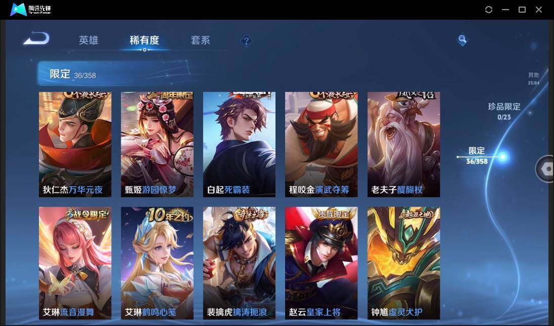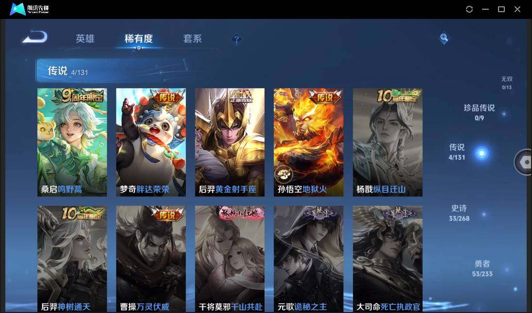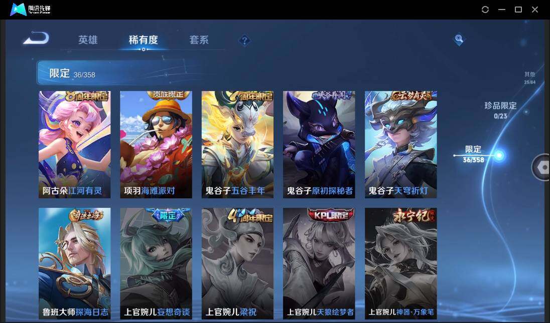 贵族0/皮肤115/传说4/史诗32/英雄124/桑启鸣野蒿/梦奇胖达荣荣/后羿黄金射手座/孙悟空地狱火/姜子牙天穹之誓/狄仁杰阴阳师/赵云皇家上将/孙尚香蔷薇恋人/甄姬游园惊梦/狄仁杰万华元夜/项羽海滩派对/老夫子醍醐杖/程咬金演武夺筹/李元芳云中旅人/杨玉环遇见飞天/干将莫邪胡桃夹子/鬼谷子原初探秘者/鬼谷子五谷丰年/弈星混沌棋/沈梦溪大漠名商/明世隐疑决卦/裴擒虎擒涛扼浪/鲁班大师探海日志/桑启海盐诗旅/艾琳流音漫舞/司空震地狱燃心/阿古朵江河有灵/张良古海寻踪/鬼谷子天穹祈灯/刘邦剑破天穹/周瑜熔金海岸/赵云未来纪元/貂蝉圣诞恋歌/甄姬冰雪圆舞曲/廉颇地狱岩魂/孙尚香水果甜心/妲己魅力维加斯/墨子龙骑士/墨子金属风暴/吕布圣诞狂欢/曹操幽灵船长/李白千年之狐/张飞乱世虎臣/兰陵王暗隐猎兽者/诸葛亮黄金分割率/亚瑟心灵战警/雅典娜冰冠公主/百里守约特工魅影/蔡文姬舞动绿茵/程咬金功夫厨神/阿轲节奏热浪/狄仁杰鹰眼统帅/橘右京修罗/哪吒雪上飞焰/刘禅电玩爆裂旋风/黄忠百相守梦/周瑜线条小狗/韩信教廷特使/韩信街头霸王/赵云白执事/赵云忍炎影/扁鹊化身博士/扁鹊救世之瞳/安琪拉玩偶对对碰/妲己少女阿狸/亚瑟死亡骑士/甄姬花好人间/钟无艳海滩丽影/宫本武藏霸王丸/孙膑归虚梦演/姜子牙炽热元素使/猪八戒潮玩探月行/太乙真人劲辣红锅/李元芳妄想特派/哪吒热血海滩/钟无艳聚星闪耀/后羿完美运算/嫦娥漠中幻影/朵莉亚金色潮汐/廉颇功夫炙烤/东皇太一噬灭天穹/苍苍林狼骑/太乙真人谧流熔炉/姜子牙星梦巡礼/钟馗虚灵犬护/张良灵野札记/白起死霸装/云中君云械蓝图/亚瑟荣光之誓/艾琳鹤鸣心笺/鲁班七号福禄兄弟/高渐离金属狂潮/露娜绯红之刃/貂蝉异域舞娘/花木兰剑舞者/狄仁杰锦衣卫/孙悟空西部大镖客/刘禅英喵野望/刘邦圣殿之光/诸葛亮星航指挥官/黄忠芝加哥教父/铠龙域领主/百里守约绝影神呛/梦奇美梦成真/裴擒虎街头旋风/米莱狄精准探案法/孙策海之征途/沈梦溪棒球奇才/李信灼热之刃/上官婉儿修竹墨客/瑶森/西施归虚梦演/澜孤猎/云缨赤焰之缨/金蝉前尘
