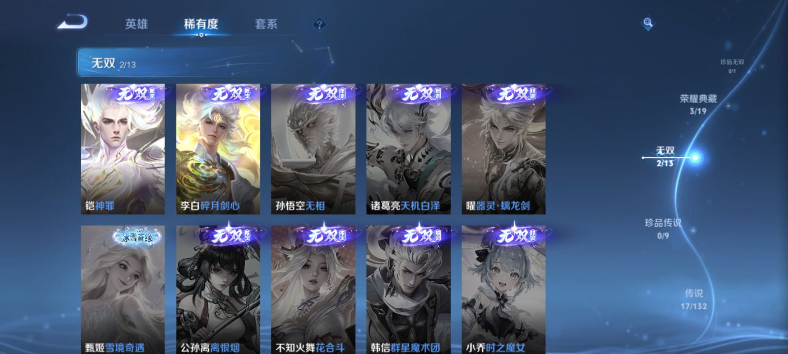 【王者荣耀】【lywz28730】珍品无双0 典藏3 无双2 珍品传说0 传说17 史诗56 英雄128 皮肤215 贵族8级 荣耀典藏:鸣剑·曳影|拾光映像|最初的交响__无双皮肤:碎月剑心|神罪__传说皮肤:炽阳神光|启明星使|云鹰飞将|飞鸢探春|炽翼辉光|大乔-时之奇旅|诗剑行|逐花归海|幻光神呛|祥瑞亨通|云诺千山|九山相柳|死亡执政官|诡秘之主|千山共赴|神树通天|长夜焕生__稀有限定:白晶晶|至尊宝|一生所爱|青春决赛季|大漠名商|古海寻踪|海滩派对|皇家上将|混沌棋|剑破天穹|江河有灵|黎明之约|魔术师|擒涛扼浪|穷奇|驱傩正仪|朔风刀|探海日志|饕餮|醍醐杖|天穹祈灯|阿古朵-顽趣|万华元夜|无心|五谷丰年|疑决卦|阴阳师|优雅恋人|驭风魔法|遇见飞天|御旌|御銮|云间偶戏|暗夜贵公子|暗隐猎兽者|暗渊魔法|缤纷独角兽|冰冠公主|苍穹之光|德古拉伯爵|浮梦罗烟|鬼剑武藏|黄金分割率|箭羽风息|吕布-末日机甲|魅力维加斯|梦奇-顽趣|圣诞恋歌|水果甜心|孙策-猫狗日记|晚萤|摇滚巨星|鹰眼统帅|幽灵船长|月团寄思|紫霞仙子|战舞者|天穹之誓|曙光守护者|特工魅影|心灵骇客|飞车小橘子|御霄|烛龙|原初探秘者|重明|云中旅人|玲珑珍味|流音漫舞|龙之律动|逆浪荇歌|孙策-百相守梦|周瑜-百相守梦|赞萌露比|幻珠鲛人|黄忠-百相守梦|织梦人|守夜人|涂山容容|光弋星穹|傩神司|往忆晖光|荣光之誓|万灵启世|鹤鸣心笺|小乔-线条小狗|周瑜-线条小狗__优质皮肤:尼罗河女神|创世神祝|孤猎|熊喵少女|午夜歌剧院|露花倒影|未来旅行|激情绿茵|秩序猎龙将|冰刃幻境|英喵野望|维京掠夺者|伊势巫女|威尼斯狂欢|潮流仙人|绝影神呛|赤焰之缨|福禄兄弟|隐刃|前尘|精灵王|剑舞者|星航指挥官|占星师|魇语军师|花见巫女|蔷薇王座|精准探案法|圣殿之光|霓裳曲|加勒比小姐|精灵公主|修竹墨客|万圣前夜|功夫炙烤|潮玩探月行|瓷语鉴心|丁香结|守护之力|命运角斗场|幻想奇妙夜|海滩丽影|兔女郎|死亡骑士|黄金武士|少女阿狸|天使之翼|玩偶对对碰|红桃皇后|忍·炎影|爱心护理|街头霸王|教廷特使|时空谍影|破局者|太极少年|牛运亨通|危途狂花|紫罗兰之誓|铁甲之心|重装意志|拳王|白色死神|哥特玫瑰|魅影绮裳|西施-雪境奇遇|星梦巡礼|灵卦秘语|缤纷绘卷|纽约教父|龙腾万里|乱世虎臣|龙舞盛年|乓乓大师|五福同心|盾山-圆桌骑士|猎兽之王|蒙犽-归虚梦演|曜-归虚梦演|太乙真人-圆桌骑士|程咬金-群星魔术团|完美运算|化身博士|花好人间|熔金海岸|万象初新|特工战影|炽热元素使|妄想特派|无双福将|踏浪烽翎|云械蓝图|克喵|青衿临川|哪吒-罗小黑战记|张良-罗小黑战记|径山谋武|逐霄之志|极光幻客|溯影追猎|糖果风暴|苍云破阵|桑启-线条小狗|妲己-线条小狗|班班快跑__贵族等级:贵族8级__王者段位:非凡王者【射手国标号】(1.4w大国李元芳1.3w伽罗黄忠小国7金标万战英雄)典藏李白伽罗瑶 无双铠李白 1天幕