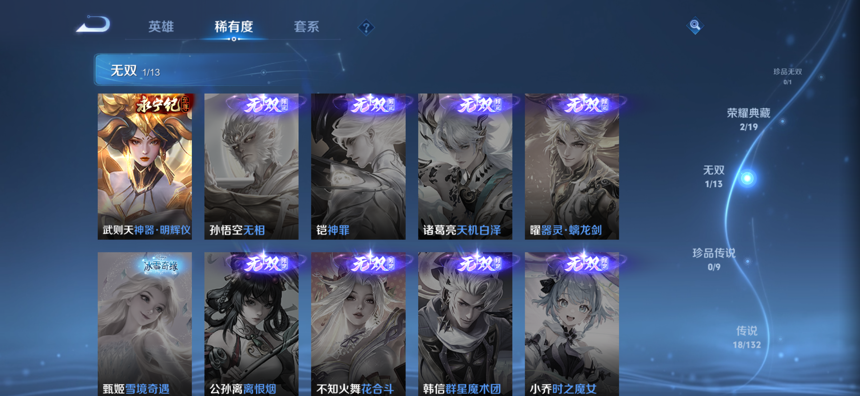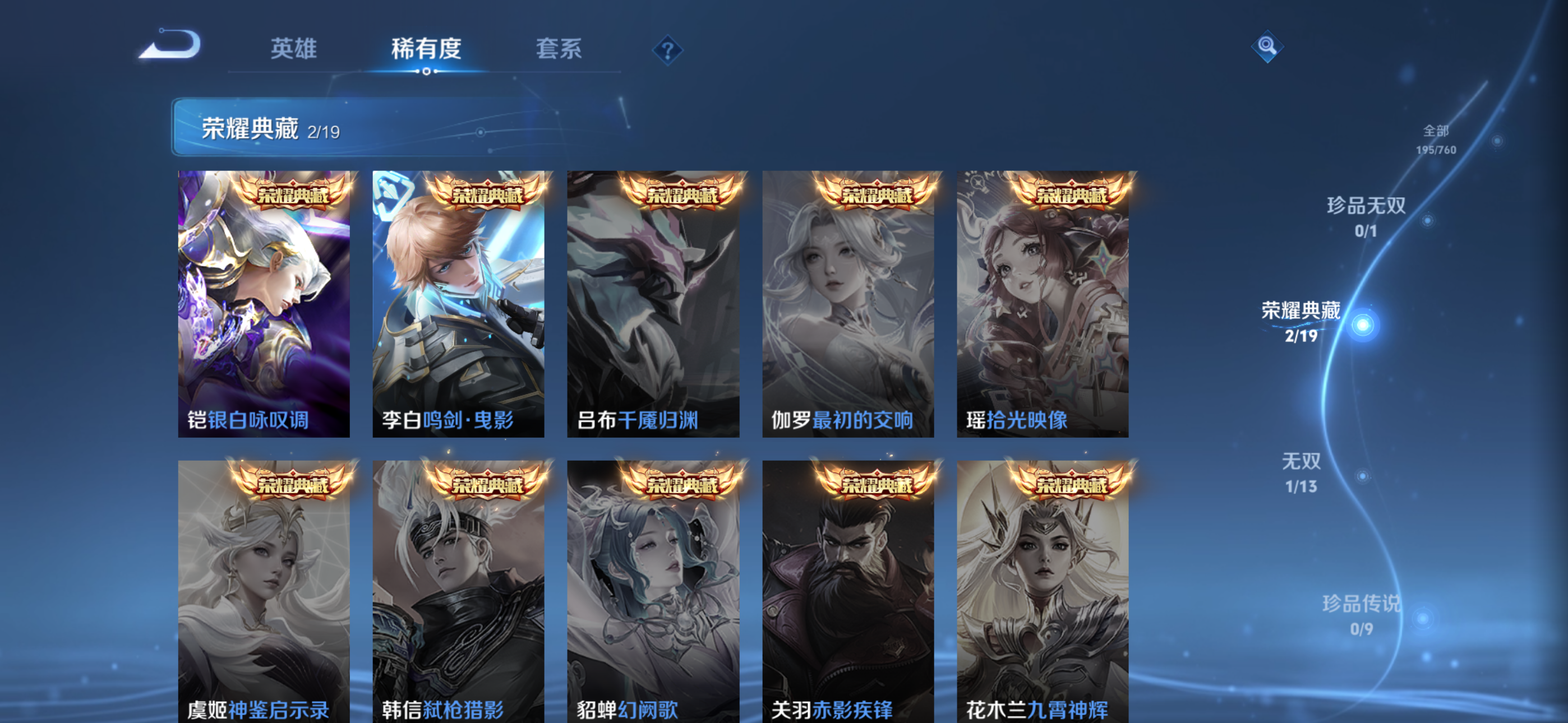 txwz29267-v8-195皮 2典藏 银白咏叹调,鸣剑·曳影 1无双 神器·明辉仪 18传说 记忆之芯,凤求凰,启明星使,炽阳神光,百相守梦,黄金白羊座,无限倾心,浮生妄,一念神魔,齐天大圣,山海·琳琅生,山海·苍雷引,山海·炽霜斩,怒海麟威,诗剑行,神器·狴犴令,绯月行,李 61史诗