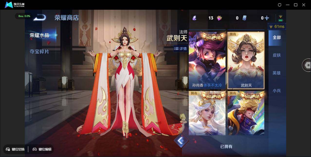 【w5230】嫦娥器灵·落星盏珍品-幽冥火.未来机甲星元-愿照·千秋盛.愿照·众生和.司愿照·九州拓-绝版白虎志.凤求凰.天魔缭乱.神奇女侠.神威.大圣娶亲.kpl天狼狩猎者.引擎之心.霸王别姬-安卓q-无二次-贵9-129英雄-389皮肤-5典藏-28传说-1珍品-133限定-113史诗-2星元-4按键-品质号-7印记-贵族积分162169-营地id:410507429 【星元皮肤】:孙悟空