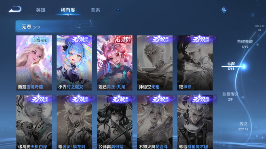 【王者荣耀】【lywz29144】珍品无双0 典藏3 无双3 珍品传说2 传说32 史诗58 英雄128 皮肤186 贵族8级 荣耀典藏:杀手不太冷|神鉴启示录|拾光映像__无双皮肤:时之魔女|雪境奇遇|青丘·九尾__珍品传说:孙策-时之奇旅|兔狲·蓬尾__传说皮肤:鸣野蒿|炽阳神光|启明星使|云霓雀翎|久胜战神|猫影幻舞|冠军飞将|游龙清影|乞巧织情|炽翼辉光|浮生妄|金乌负日|祈雪灵祝|妄想奇谈|妄想实况|貂蝉-曦玄引|虞姬-无限倾心|逐花归海|乘龙·淬吴钩|乘龙·铭钟鼎|乘龙·问璇玑|幻光神呛|愿照·岁时盈|愿照·山河定|愿照·九州拓|愿照·众生和|愿照·福禄聚|星之鸣奏|愿照·千秋盛|千劫归真|云诺千山|神树通天__稀有限定:寅虎·展翼|寅虎·心曲|白晶晶|纯白花嫁|玄嵩|冰霜恋舞曲|大漠名商|古海寻踪|海滩派对|海盐诗旅|胡桃异想国|皇家上将|剑破天穹|蓝屏警告|黎明之约|魔术师|千军破阵|燃音魔法|沙漠行僧|天穹祈灯|无心|星界游侠|夜都魔契|阴阳师|暗夜贵公子|暗隐猎兽者|冰雪圆舞曲|苍穹之光|乘风破浪|乘龙·聚宝船|乘龙·忆丹青|德古拉伯爵|电玩小子|浮梦罗烟|鬼剑武藏|唤灵魅影|金属风暴|李元芳-蔬乡物语|龙骑士|吕布-末日机甲|魅力维加斯|偶像歌手|上官婉儿-群星魔术团|圣诞恋歌|鲁班七号-蔬乡物语|水果甜心|天秀·启明|完美假期|星夜王子|摇滚巨星|银翎春语|鹰眼统帅|遇见神鹿|紫霞仙子|噬灭天穹|蔡文姬-夏日便利店|虞姬-夏日便利店|千年之狐|茶境仙|谧流熔炉|万物之道|器灵·浮梦炉|化蝶舞|访茗客|暖冬·兔眠|灵卜魔法|仙境爱丽丝|刘禅-鸭鸭历险记|沈梦溪-鸭鸭历险记|雪豹·霜爪|龙之律动|虚灵犬护|逆浪荇歌|幻珠鲛人|光弋星穹|傩神司|往忆晖光|荣光之誓|巫礼祀神|鹤鸣心笺|九幽镇关__优质皮肤:尼罗河女神|木偶奇遇记|激情绿茵|冰刃幻境|维京掠夺者|伊势巫女|画中游|生化警戒|隐刃|范海辛|龙域领主|爱与和平|花见巫女|圣殿之光|加勒比小姐|精灵公主|暗都幽影|次元突破|鲨炮海盗猫|丁香结|虹云星官|幻想奇妙夜|死亡骑士|天使之翼|宫本武藏-未来纪元|红桃皇后|教廷特使|金色潮汐|牛运亨通|幻泉雾影|潮玩牛仔|进击墨子号|拳王|时尚教父|魅影绮裳|西施-雪境奇遇|星梦巡礼|灵卦秘语|爆裂喵拳|景韶洛都|浪漫序章|掌控之力|西施-归虚梦演|龙舞盛年|唤灵魔甲|程咬金-群星魔术团|完美运算|熔金海岸|春野之旅|无尽旅途|万象初新|劲辣红锅|特工战影|秘证寻踪|春野闲踪|灵野札记|玫蓝誓约|命运加冕|潮玩士官长|小满鸭|死霸装|踏浪烽翎|糖果风暴|桑启-线条小狗|妲己-线条小狗__贵族等级:贵族8级__王者段位:永恒钻石v8女号 3无双 雪境奇遇,时之魔女,青丘·九尾 3典藏拾光映像,神鉴启示录,杀手不太冷 张飞孙策珍品 多热门传说