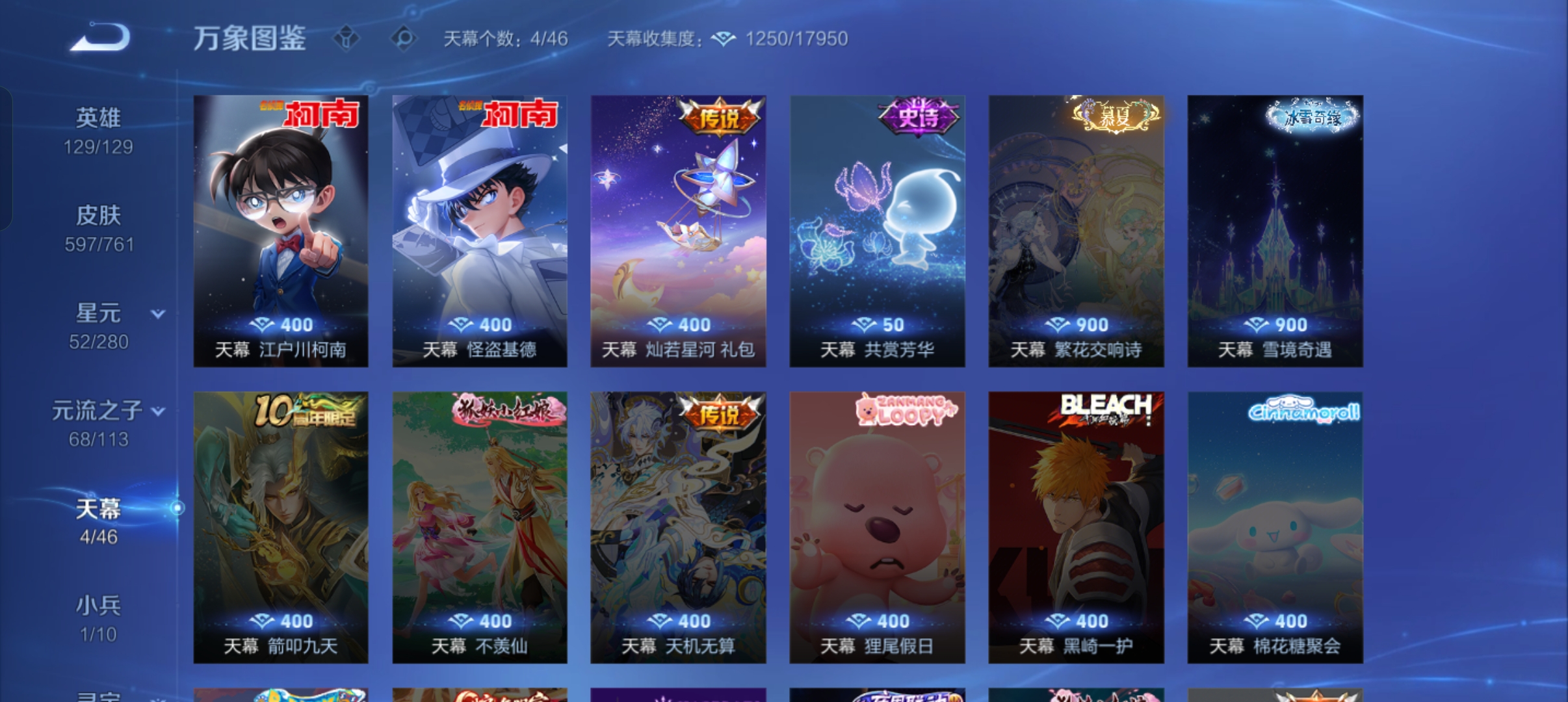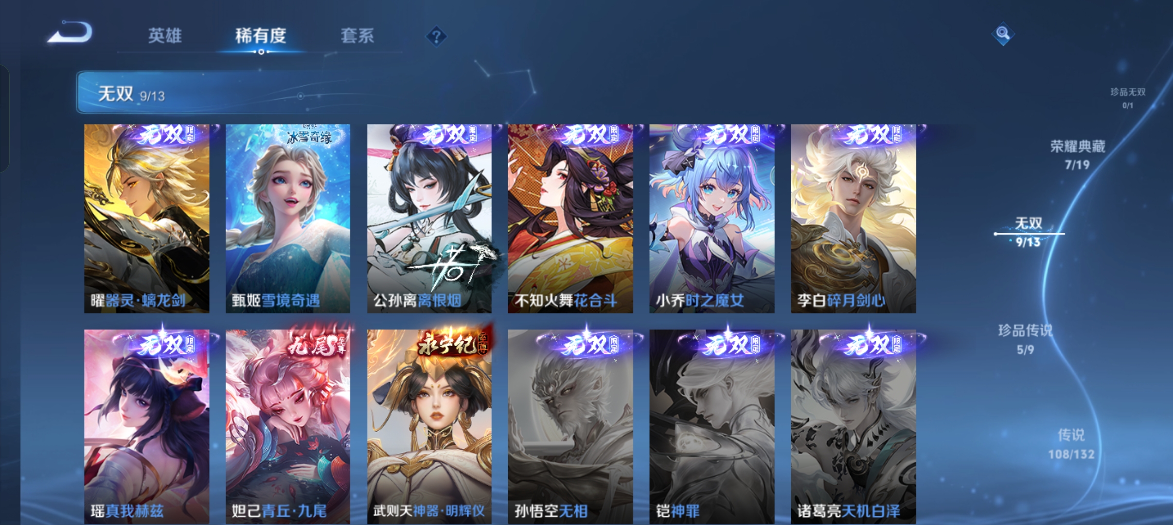 [16291863]wz2300总皮597 7典藏(伽罗最初的交响 瑶拾光映像 铠银白咏叹调 花木兰九霄神辉 武则天倪克斯神谕 孙尚香杀手不太冷 小乔天鹅之梦) 9无双(曜器灵·螭龙剑 甄姬雪境奇遇 公孙离离恨烟 不知火舞花合斗 小乔时之魔女 李白碎月剑心 瑶真我赫兹 妲己青丘·九尾v武则天神器·明辉仪) 5珍品(瑶大耳狗之梦 嫦娥器灵·落星盏 嫦娥器灵·落星盏 马可波罗怪盗基德 马可波罗怪盗基德) 108传说 大女号 9星传说 36个个性按键 小兵狐妖小红娘 4天幕(江户川柯南 怪盗基德 灿若星河 共赏芳华)3万战(万战镜 万战露娜 万战暃)无限倾慕 伽罗太华 兰陵王默契交锋 瑶 时之祈愿 鲁班七号寅虎·瑞焰 刘备时之恋人 武则天 海洋之心 宫本武藏地狱之眼 貂蝉仲夏夜之梦