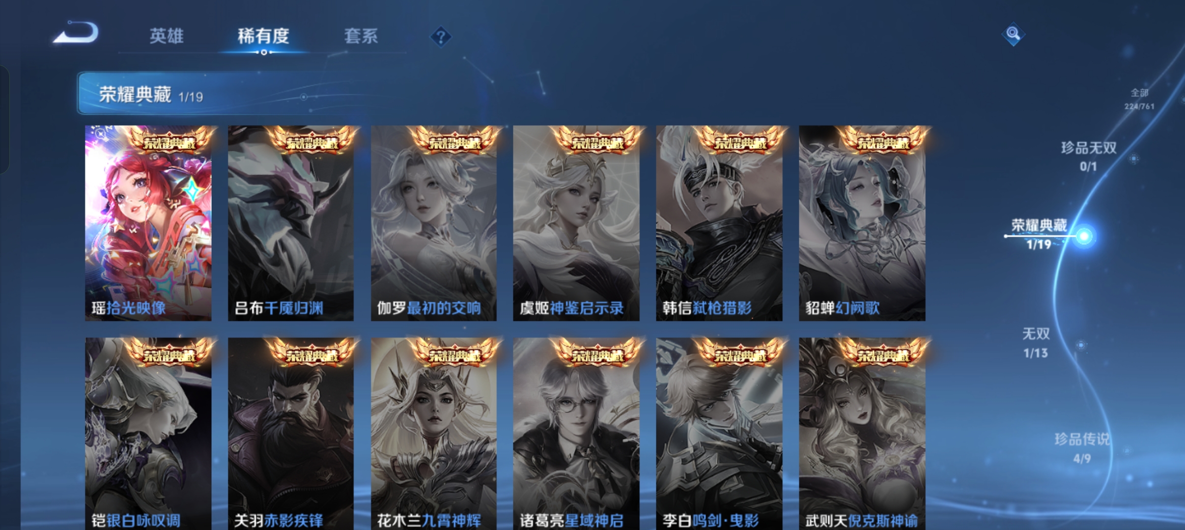 [16291996]wz2279总皮224 典藏1(瑶拾光映像) 无双1(瑶真我赫兹) 珍品4(安琪拉酷洛米之心 瑶大耳狗之梦 嫦娥器灵·落星盏 马可波罗怪盗基德) 传说12 小女号 西施嫦娥朵朵少司缘全皮西施 游龙清影 貂蝉 仲夏夜之梦