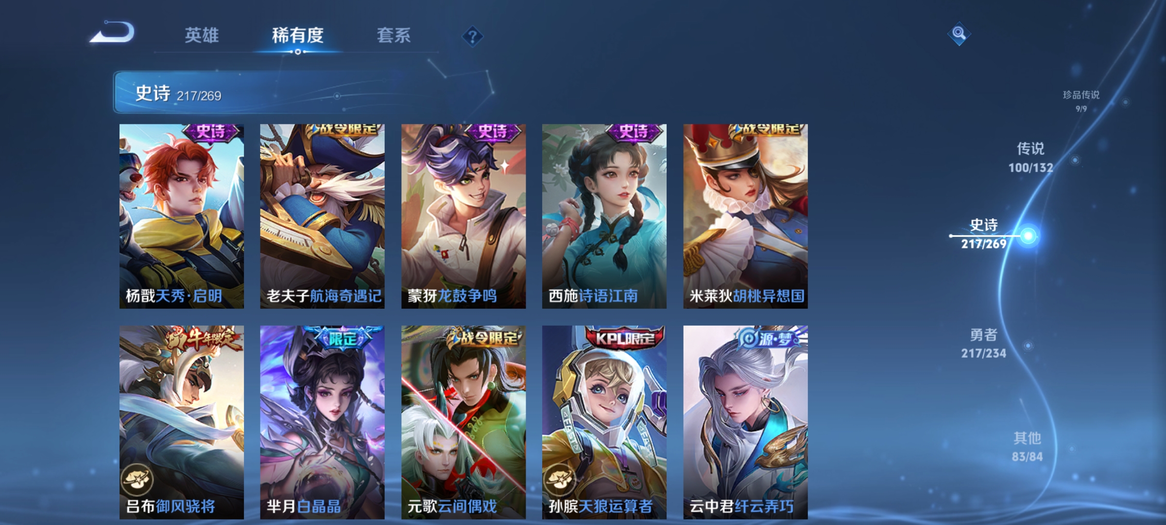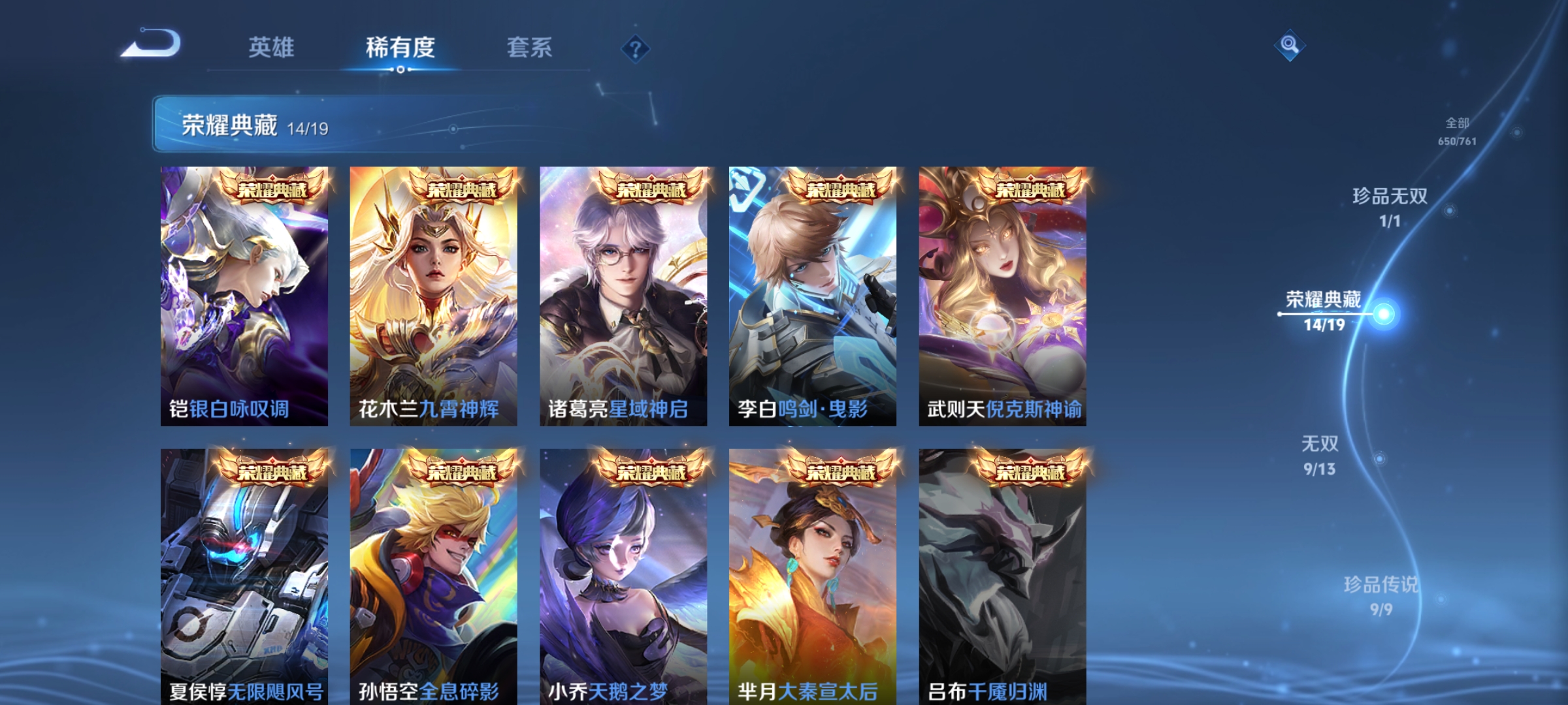 129英雄-650皮肤-幻阙歌鸣剑·曳影全息碎影天鹅之梦无限飓风号大秦宣太后倪克斯神谕星域神启九霄神辉银白咏叹调弑呛猎影神鉴启示录拾光映像最初的交响,馥梦繁花,青丘·九尾碎月剑心时之魔女真我赫兹瑶群星魔术团离恨烟雪境奇遇器灵·螭龙剑无相,怪盗基德江户川柯南时之奇旅器灵·落