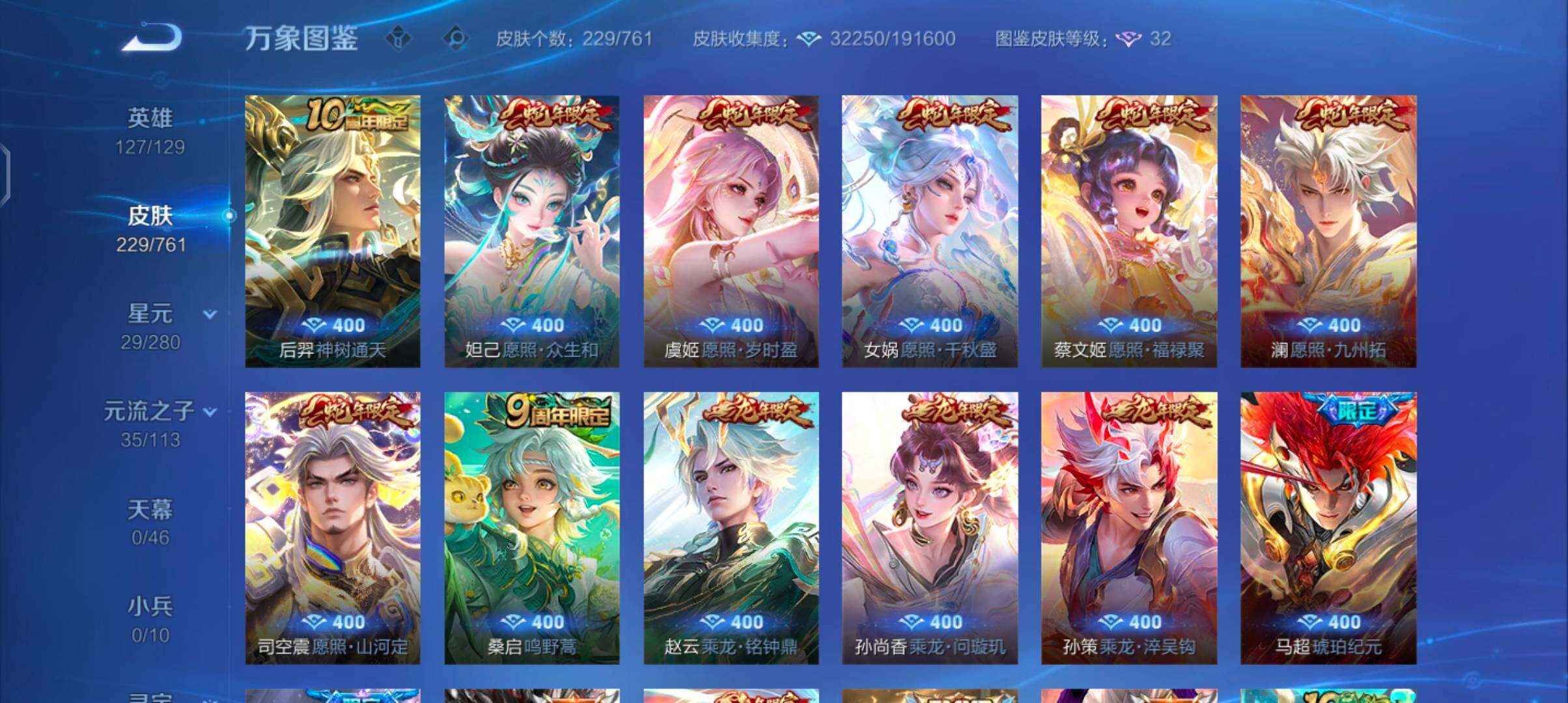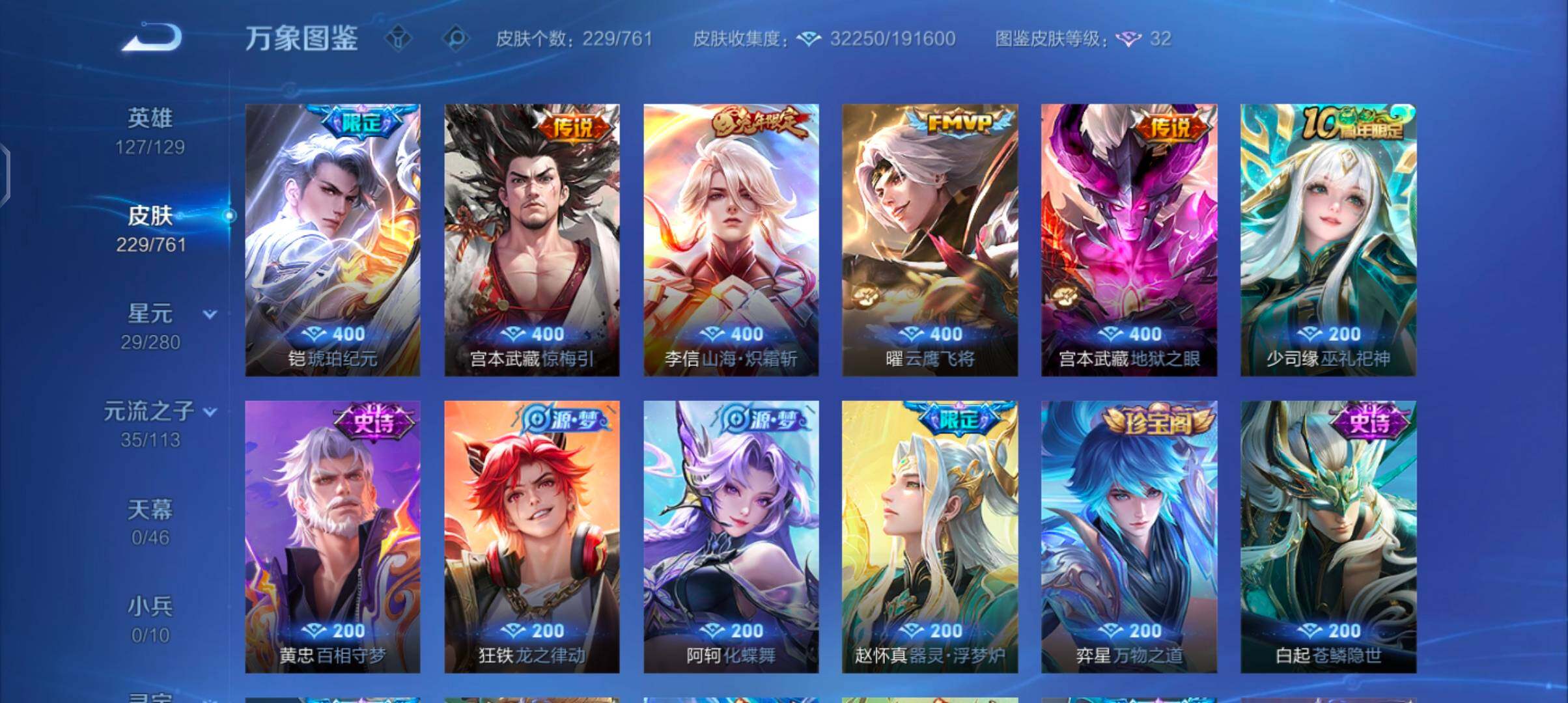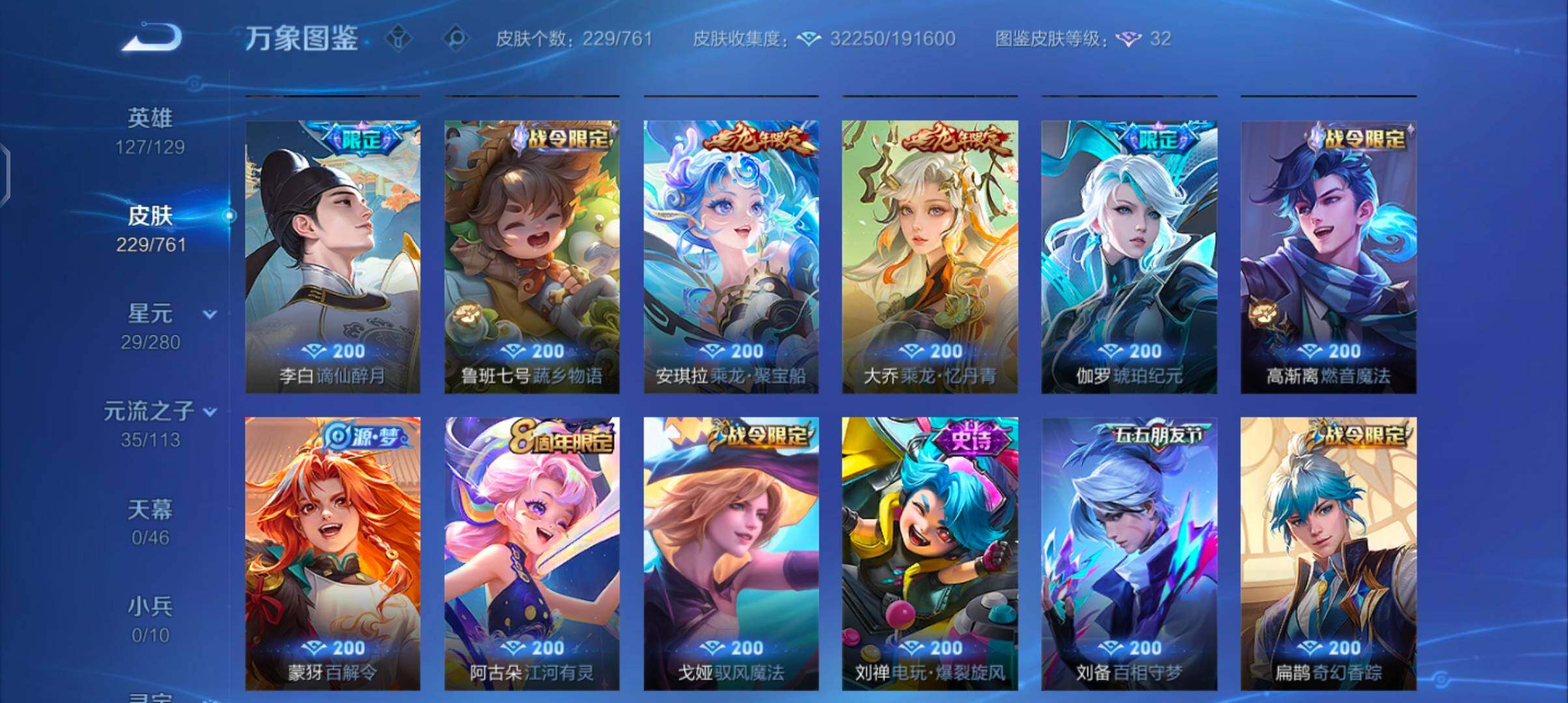 【精氪2套年限·12个年限皮·满蛇年限定·满龙年限定·愿照山河定·马超琥珀纪元·铠琥珀纪元·愿照众生和·乘龙问璇玑·乘龙淬吴钩·乘龙铭钟鼎·山海炽霜斩·云鹰飞将·可二次】yxw13887-安卓q-127英雄-229皮肤-4王者印记-200铭文-贵族积分4w【贵族7】【1星传说·17传说·4按键】【因赛季更新游戏段付以上号为准!】 【星元皮肤】:宫本武藏幽冥之眼 【传说皮肤】:后羿神树通天,司空震愿照山河定,女娲愿照千秋盛,妲己愿照众生和,澜愿照九州拓,蔡文姬愿照福禄聚,虞姬愿照岁时盈,桑启鸣野蒿,孙尚香乘龙问璇玑,孙策乘龙淬吴钩,赵云乘龙铭钟鼎,马超琥珀纪元,铠琥珀纪元,宫本武藏惊梅引,李信山海炽霜斩,曜云鹰飞将,宫本武藏地狱之眼 【限定皮肤】:李白谪仙醉月,狄仁杰阴阳师,赵云皇家上将,墨子神迹守卫,孙尚香蔷薇恋人,鲁班七号狮舞东方,钟无艳超时空战士,扁鹊奇幻香踪,元歌无心,夏侯惇朔风刀,甄姬落雪兰心,狄仁杰魔术师,项羽海滩派对,老夫子醍醐杖,程咬金演武夺筹,王昭君午后时光,兰陵王金庭之子,刘备百相守梦,李元芳云中旅人,钟馗神迹守卫,钟馗驱傩正仪,杨戬潮玩骑兵,女娲朔望之晖,鬼谷子五谷丰年,弈星混沌棋,沈梦溪大漠名商,裴擒虎天狼狩猎者,裴擒虎擒涛扼浪,狂铁电玩高手,云中君纤云弄巧,李信山海炽霜斩,盾山御銮,上官婉儿梁祝,嫦娥拒霜思,西施玲珑珍味,鲁班大师探海日志,桑启海盐诗旅,戈娅驭风魔法,阿古朵江河有灵,张良古海寻踪,蒙犽百解令,高渐离燃音魔法,妲己灵卜魔法,鬼谷子天穹祈灯,伽罗琥珀纪元,铠琥珀纪元,马超琥珀纪元,大乔乘龙忆丹青,安琪拉乘龙聚宝船,孙尚香乘龙问璇玑,孙策乘龙淬吴钩,赵云乘龙铭钟鼎,沈梦溪龙舞盛年,鲁班七号蔬乡物语,李元芳蔬乡物语,刘邦剑破天穹,程咬金群星魔术团 【年限皮肤】:李信山海炽霜斩,孙尚香乘龙问璇玑,孙策乘龙淬吴钩,赵云乘龙铭钟鼎,大乔乘龙忆丹青,安琪拉乘龙聚宝船,司空震愿照山河定,女娲愿照千秋盛,妲己愿照众生和,澜愿照九州拓,蔡文姬愿照福禄聚,虞姬愿照岁时盈 【赛季限定】:盾山御銮,夏侯惇朔风刀,弈星混沌棋,老夫子醍醐杖,程咬金演武夺筹,钟馗驱傩正仪,兰陵王金庭之子,沈梦溪大漠名商,李元芳云中旅人,桑启海盐诗旅,裴擒虎擒涛扼浪,鲁班大师探海日志,张良古海寻踪,鬼谷子天穹祈灯,刘邦剑破天穹,东皇太一噬灭天穹,太乙真人谧流熔炉,甄姬逆浪荇歌,亚瑟荣光之誓 【战令限定】:女娲朔望之晖,鲁班七号狮舞东方,钟馗神迹守卫,墨子神迹守卫,狂铁电玩高手,王昭君午后时光,钟无艳超时空战士,甄姬落雪兰心,扁鹊奇幻香踪,杨戬潮玩骑兵,戈娅驭风魔法,西施玲珑珍味,高渐离燃音魔法,妲己灵卜魔法,鲁班七号蔬乡物语,李元芳蔬乡物语 【史诗皮肤】:项羽苍穹之光,阿轲暗夜猫娘,赵云皇家上将,赵云未来纪元,甄姬冰雪圆舞曲,狄仁杰魔术师,廉颇地狱岩魂,宫本武藏鬼剑武藏,孙尚香蔷薇恋人,孙尚香水果甜心,嬴政摇滚巨星,妲己魅力维加斯,墨子金属风暴,吕布圣诞狂欢,刘禅绅士熊喵,曹操幽灵船长,李白千年之狐,吕布末日机甲,张飞乱世虎臣,刘邦德古拉伯爵,夏侯惇乘风破浪,小乔缤纷独角兽,兰陵王暗隐猎兽者,诸葛亮黄金分割率,亚瑟心灵战警,百里守约特工魅影,铠曙光守护者,蔡文姬舞动绿茵,刘禅天才门将,李元芳逐浪之夏,孙策猫狗日记,裴擒虎天狼狩猎者,鲁班七号狮舞东方,狄仁杰鹰眼统帅,上官婉儿梁祝,云中君纤云弄巧,百里玄策热力回旋,司马懿暗渊魔法,嫦娥拒霜思,狂铁电玩高手,钟无艳超时空战士,鬼谷子五谷丰年,元歌无心,扁鹊奇幻香踪,刘备百相守梦,刘禅电玩爆裂旋风,戈娅驭风魔法,阿古朵江河有灵,蒙犽百解令,妲己灵卜魔法,高渐离燃音魔法,伽罗琥珀纪元,安琪拉乘龙聚宝船,大乔乘龙忆丹青,鲁班七号蔬乡物语,李白谪仙醉月,白起苍鳞隐世,弈星万物之道,赵怀真器灵浮梦炉,阿轲化蝶舞,狂铁龙之律动,黄忠百相守梦,少司缘巫礼祀神 【其他皮肤】:项羽海滩派对,韩信教廷特使,韩信街头霸王,露娜哥特玫瑰,赵云忍炎影,芈月红桃皇后,白起白色死神,牛魔西部大镖客,扁鹊化身博士,扁鹊救世之瞳,宫本武藏未来纪元,安琪拉玩偶对对碰,孙膑天使之翼,姜子牙时尚教父,妲己少女阿狸,典韦黄金武士,亚瑟死亡骑士,花木兰兔女郎,张飞五福同心,甄姬花好人间,宫本武藏万象初新,后羿阿尔法小队,狄仁杰阴阳师,钟无艳海滩丽影,王昭君幻想奇妙夜,狂铁命运角斗场,老夫子功夫老勺,孙尚香沉稳之力,诸葛亮掌控之力,李白敏锐之力,鬼谷子幻乐之宴,苏烈坚韧之力,大乔守护之力,明世隐虹云星官,庄周奇妙博物学,女娲朔望之晖,吕布野性能量,钟馗神迹守卫,盾山御銮,孙膑归虚梦演,沈梦溪鲨炮海盗猫,姜子牙炽热元素使,夏侯惇朔风刀,弈星混沌棋,哪吒次元突破,鲁班七号黑桃队长,老夫子醍醐杖,刘禅秘密基地,露娜瓷语鉴心,程咬金演武夺筹,张良缤纷绘卷,盘古重装意志,钟馗驱傩正仪,墨子神迹守卫,鲁班大师乓乓大师,程咬金无双福将,兰陵王金庭之子,王昭君午后时光,沈梦溪大漠名商,蒙犽胡桃狂想曲,蒙恬蔚蓝守将,甄姬落雪兰心,李元芳云中旅人,刘备潮玩造梦师,桑启海盐诗旅,海月幻泉雾影,猪八戒潮玩探月行,牛魔牛运亨通,白起乐园追猎者,赵怀真太极少年,裴擒虎擒涛扼浪,杨戬潮玩骑兵,太乙真人劲辣红锅,鲁班大师探海日志,西施玲珑珍味,姬小满零食大作战,李元芳妄想特派,张