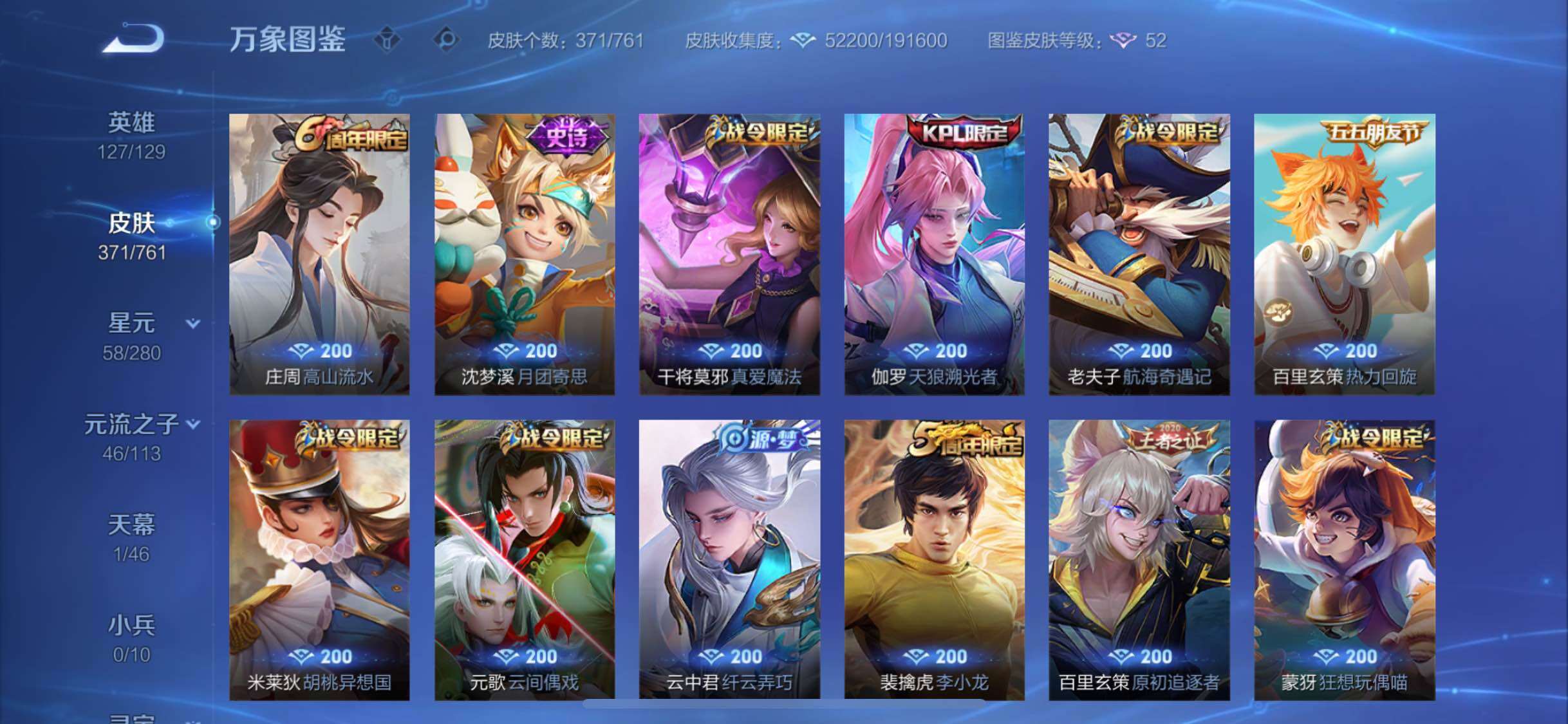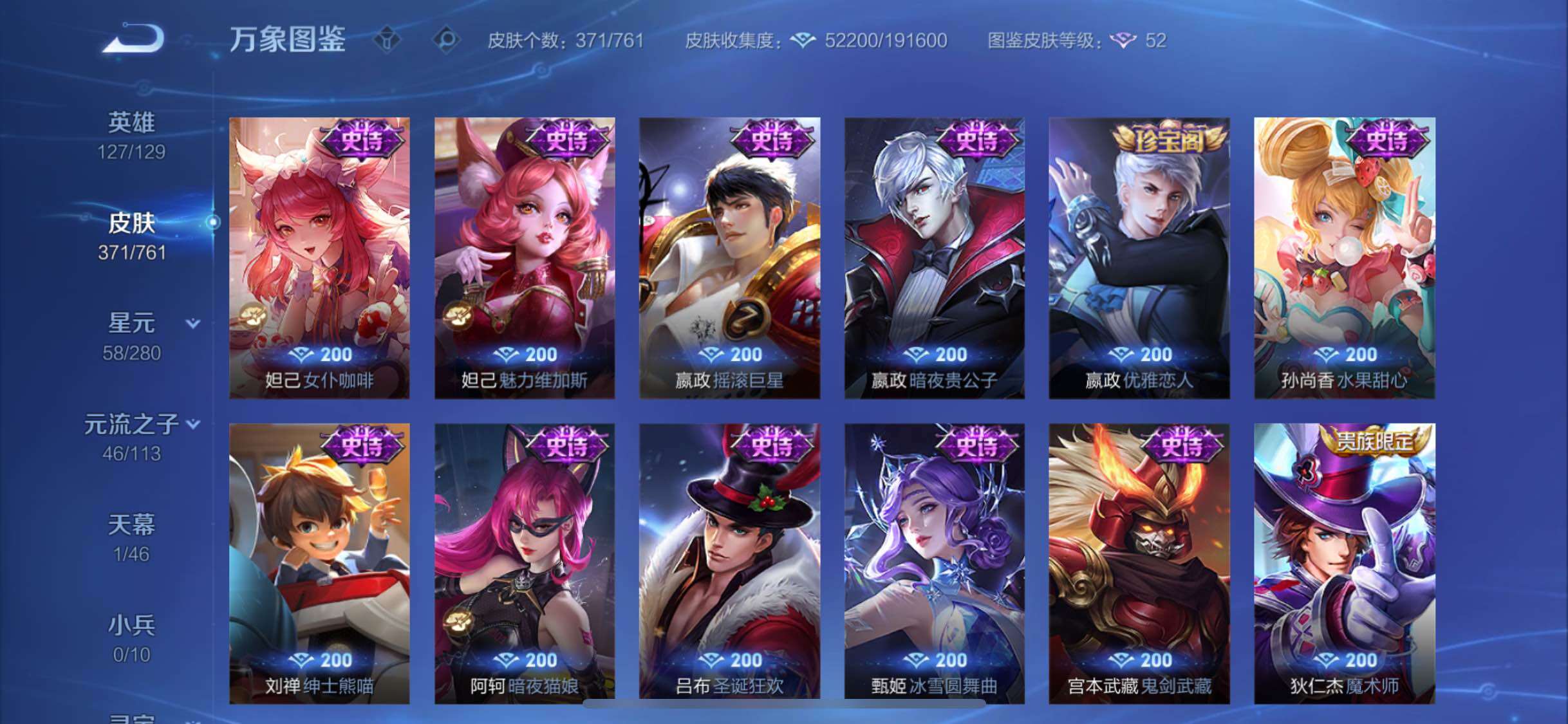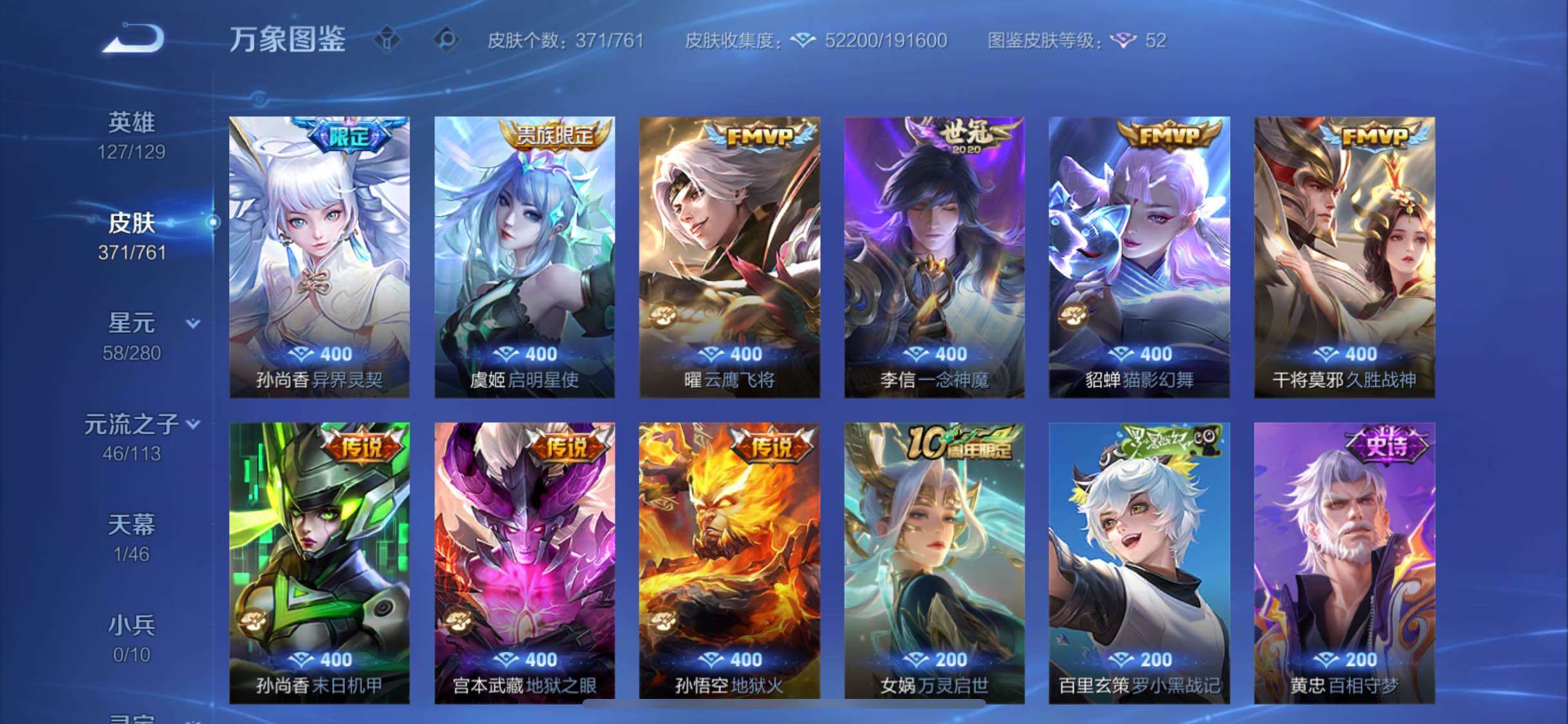 【精氪贵族v10·2典藏·19传说·4星传说·鸣剑曳影·弑呛猎影·寅虎赤拳·异界灵契·齐天大圣·山海炽霜斩·怒海麟威·诗剑行·启示之音·云鹰飞将·猫影幻舞·神威·可二次】yxw13995-苹果q-127英雄-371皮肤-20王者印记-300铭文-贵族积分19w【贵族10】【2典藏·4星传说·19传说·1天幕·8按键·107个性戳戳】【因赛季更新游戏段付以上号为准!】 【英雄全皮】:阿轲全皮,刘邦全皮,李信全皮,空空儿全皮,影全皮 【荣耀典藏】:李白鸣剑曳影,韩信弑呛猎影 【星元皮肤】:刘备时之思念,孙尚香未来机甲,宫本武藏幽冥之眼,孙悟空幽冥火 【天幕】:共赏芳华天幕 【传说皮肤】:云缨幻光神呛,艾琳觅芳踪,孙悟空齐天大圣,李信山海炽霜斩,吕布怒海麟威,李白诗剑行,马超无双飞将,孙策挚爱之约,露娜启示之音,裴擒虎寅虎赤拳,孙尚香异界灵契,虞姬启明星使,曜云鹰飞将,李信一念神魔,貂蝉猫影幻舞,干将莫邪久胜战神,孙尚香末日机甲,宫本武藏地狱之眼,孙悟空地狱火 【限定皮肤】:白起狰,狄仁杰阴阳师,虞姬凯尔特女王,赵云皇家上将,赵云百木心呛,墨子神迹守卫,嬴政优雅恋人,孙尚香异界灵契,鲁班七号狮舞东方,庄周蜃楼王,庄周高山流水,高渐离死亡摇滚,高渐离玩趣恶龙,阿轲迷踪丽影,孙膑妖精王,扁鹊炼金王,扁鹊奇幻香踪,白起夜都怪侠,芈月重明,芈月幻夜卜梦,周瑜赤莲之焰,元歌云间偶戏,元歌无心,夏侯惇朔风刀,夏侯惇匿光决锋者,甄姬女儿国国王,甄姬游园惊梦,曹操烛龙,典韦穷奇,典韦蓝屏警告,马可波罗逐梦之星,马可波罗暗影游猎,狄仁杰魔术师,狄仁杰万华元夜,达摩星际陆战队,达摩沙漠行僧,项羽海滩派对,老夫子醍醐杖,老夫子航海奇遇记,程咬金演武夺筹,露娜一生所爱,露娜启示之音,刘邦夺宝奇兵,韩信逐梦之影,韩信傲雪梅呛,兰陵王驯魔猎人,兰陵王金庭之子,亚瑟潮玩骑士王,孙悟空齐天大圣,牛魔御旌,后羿辉光之辰,后羿如梦令,后羿圣弓游侠,李元芳银河之约,李元芳云中旅人,虞姬启明星使,钟馗神迹守卫,钟馗驱傩正仪,杨戬潮玩骑兵,女娲朔望之晖,干将莫邪真爱魔法,雅典娜单词大作战,雅典娜黎明之约,蔡文姬繁星吟游,太乙真人饕餮,太乙真人华丽摇滚,鬼谷子原初探秘者,黄忠火炮绅士,苏烈千军破阵,百里玄策原初追逐者,弈星混沌棋,梦奇顽趣,公孙离玉兔公主,沈梦溪星空之诺,明世隐疑决卦,明世隐吟游魔法,裴擒虎天狼狩猎者,裴擒虎李小龙,裴擒虎寅虎赤拳,裴擒虎擒涛扼浪,狂铁御狮,米莱狄御霄,米莱狄胡桃异想国,云中君纤云弄巧,李信山海炽霜斩,伽罗天狼溯光者,盾山御銮,孙策挚爱之约,猪八戒西部大镖客,上官婉儿梁祝,上官婉儿天狼绘梦者,嫦娥拒霜思,嫦娥暖冬兔眠,蒙犽狂想玩偶喵,鲁班大师探海日志,镜匿光追影者,桑启海盐诗旅,暃星界游侠,阿古朵江河有灵,张良古海寻踪,艾琳觅芳踪,蒙恬荣光圣徽,鬼谷子天穹祈灯,姬小满妄想食味,沈梦溪龙舞盛年,刘邦剑破天穹,程咬金群星魔术团 【年限皮肤】:后羿辉光之辰,裴擒虎寅虎赤拳,李信山海炽霜斩 【赛季限定】:庄周蜃楼王,孙膑妖精王,扁鹊炼金王,虞姬凯尔特女王,白起狰,太乙真人饕餮,曹操烛龙,芈月重明,典韦穷奇,狂铁御狮,米莱狄御霄,牛魔御旌,盾山御銮,夏侯惇朔风刀,弈星混沌棋,明世隐疑决卦,老夫子醍醐杖,鬼谷子原初探秘者,狄仁杰万华元夜,程咬金演武夺筹,钟馗驱傩正仪,苏烈千军破阵,达摩沙漠行僧,兰陵王金庭之子,李元芳云中旅人,桑启海盐诗旅,裴擒虎擒涛扼浪,鲁班大师探海日志,张良古海寻踪,鬼谷子天穹祈灯,刘邦剑破天穹,东皇太一噬灭天穹,太乙真人谧流熔炉,钟馗虚灵犬护,甄姬逆浪荇歌,百里玄策原初追逐者,雅典娜黎明之约,梦奇顽趣,蒙恬荣光圣徽 【战令限定】:典韦蓝屏警告,女娲朔望之晖,鲁班七号狮舞东方,钟馗神迹守卫,兰陵王驯魔猎人,周瑜赤莲之焰,李元芳银河之约,沈梦溪星空之诺,阿轲迷踪丽影,刘邦夺宝奇兵,马可波罗暗影游猎,猪八戒西部大镖客,蒙犽狂想玩偶喵,雅典娜单词大作战,元歌云间偶戏,亚瑟潮玩骑士王,米莱狄胡桃异想国,达摩星际陆战队,老夫子航海奇遇记,墨子神迹守卫,干将莫邪真爱魔法,后羿圣弓游侠,黄忠火炮绅士,芈月幻夜卜梦,明世隐吟游魔法,白起夜都怪侠,暃星界游侠,嫦娥暖冬兔眠,扁鹊奇幻香踪,杨戬潮玩骑兵 【史诗皮肤】:露娜紫霞仙子,阿轲暗夜猫娘,赵云皇家上将,赵云未来纪元,貂蝉圣诞恋歌,甄姬冰雪圆舞曲,狄仁杰魔术师,廉颇地狱岩魂,宫本武藏鬼剑武藏,孙尚香水果甜心,嬴政优雅恋人,嬴政暗夜贵公子,嬴政摇滚巨星,妲己魅力维加斯,妲己女仆咖啡,墨子金属风暴,吕布圣诞狂欢,刘禅绅士熊喵,曹操幽灵船长,李白千年之狐,吕布末日机甲,张飞乱世虎臣,花木兰水晶猎龙者,刘邦德古拉伯爵,韩信逐梦之影,夏侯惇乘风破浪,小乔缤纷独角兽,兰陵王暗隐猎兽者,诸葛亮黄金分割率,甄姬游园惊梦,马可波罗逐梦之星,亚瑟心灵战警,雅典娜冰冠公主,安琪拉心灵骇客,后羿辉光之辰,百里守约特工魅影,铠曙光守护者,蔡文姬舞动绿茵,刘禅天才门将,李元芳逐浪之夏,程咬金功夫厨神,白起星夜王子,阿轲节奏热浪,孙策猫狗日记,大乔猫狗日记,露娜一生所爱,典韦蓝屏警告,伽罗箭羽风息,裴擒虎天狼狩猎者,鲁班七号狮舞东方,狄仁杰鹰眼统帅,公孙离无限星赏官,兰陵王驯魔猎人,上官婉儿梁祝,蔡文姬繁星吟游,李元芳银河之约,后羿如梦令,不知火舞魅语,阿轲迷踪丽影,橘右京
