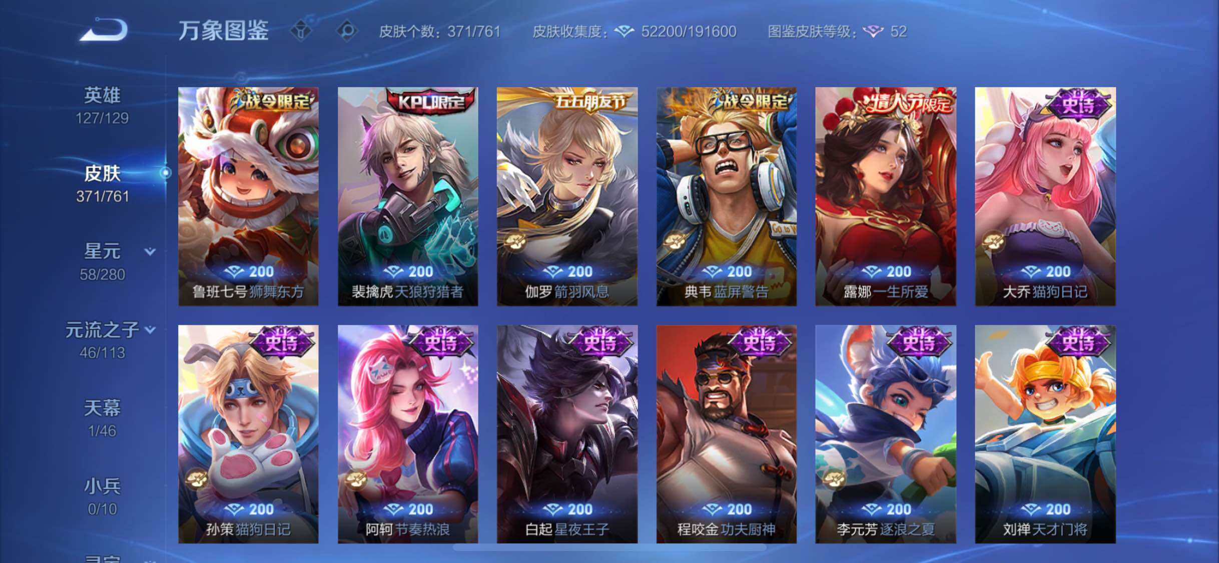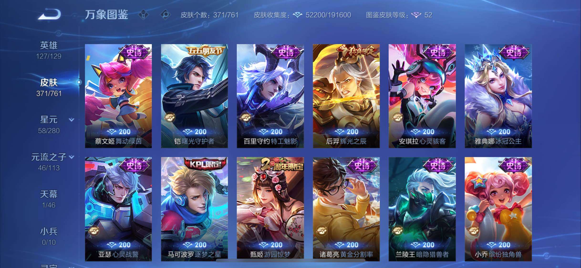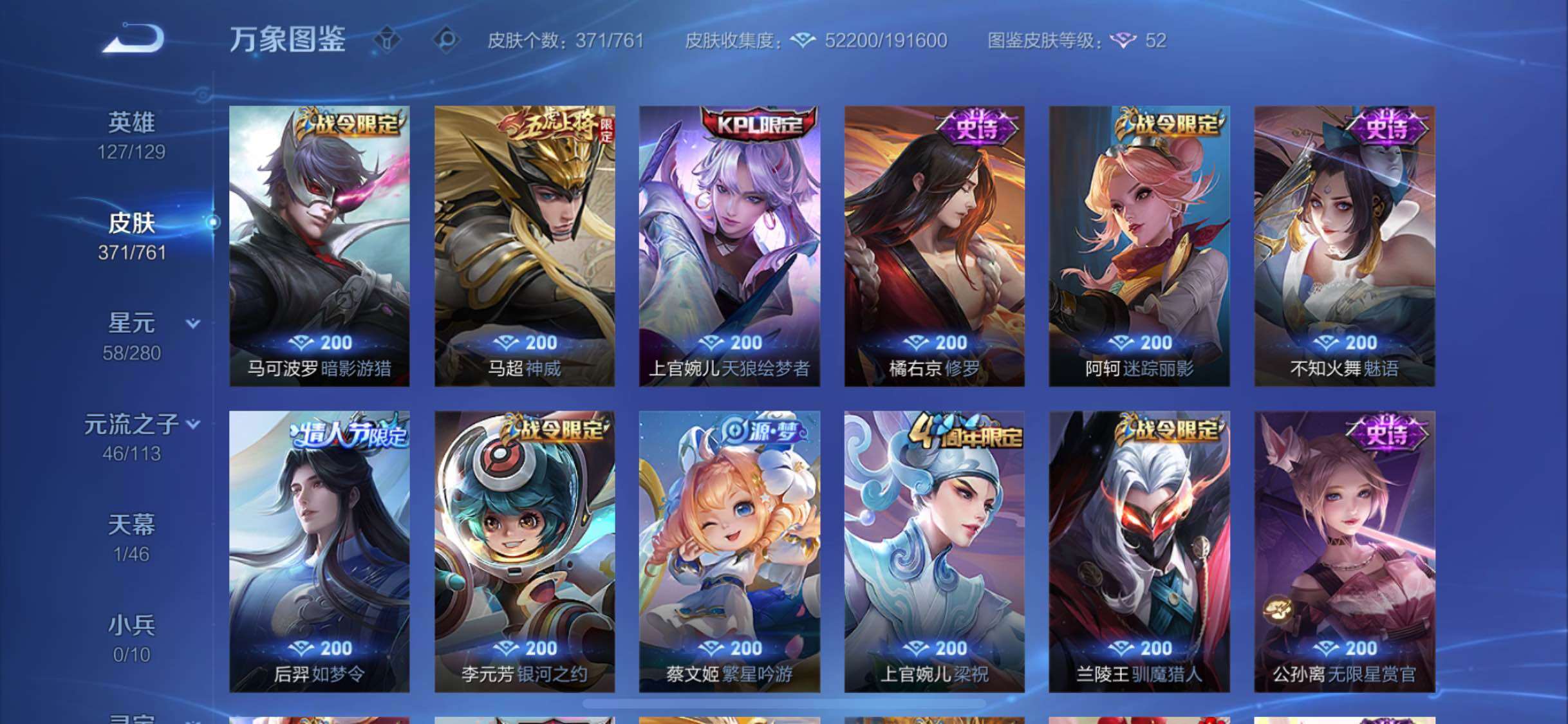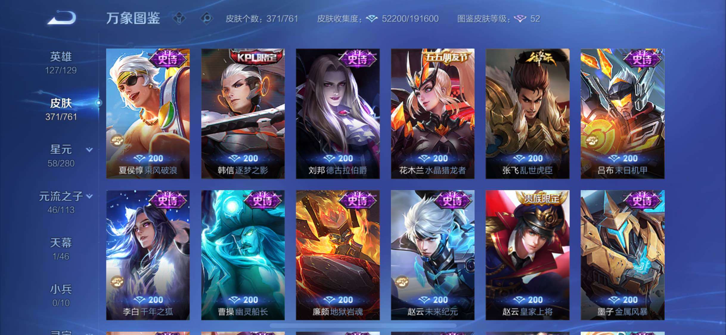 【精氪贵族v10·2典藏·19传说·4星传说·鸣剑曳影·弑呛猎影·寅虎赤拳·异界灵契·齐天大圣·山海炽霜斩·怒海麟威·诗剑行·启示之音·云鹰飞将·猫影幻舞·神威·可二次】yxw13995-苹果q-127英雄-371皮肤-20王者印记-300铭文-贵族积分19w【贵族10】【2典藏·4星传说·19传说·1天幕·8按键·107个性戳戳】【因赛季更新游戏段付以上号为准!】 【英雄全皮】:阿轲全皮,刘邦全皮,李信全皮,空空儿全皮,影全皮 【荣耀典藏】:李白鸣剑曳影,韩信弑呛猎影 【星元皮肤】:刘备时之思念,孙尚香未来机甲,宫本武藏幽冥之眼,孙悟空幽冥火 【天幕】:共赏芳华天幕 【传说皮肤】:云缨幻光神呛,艾琳觅芳踪,孙悟空齐天大圣,李信山海炽霜斩,吕布怒海麟威,李白诗剑行,马超无双飞将,孙策挚爱之约,露娜启示之音,裴擒虎寅虎赤拳,孙尚香异界灵契,虞姬启明星使,曜云鹰飞将,李信一念神魔,貂蝉猫影幻舞,干将莫邪久胜战神,孙尚香末日机甲,宫本武藏地狱之眼,孙悟空地狱火 【限定皮肤】:白起狰,狄仁杰阴阳师,虞姬凯尔特女王,赵云皇家上将,赵云百木心呛,墨子神迹守卫,嬴政优雅恋人,孙尚香异界灵契,鲁班七号狮舞东方,庄周蜃楼王,庄周高山流水,高渐离死亡摇滚,高渐离玩趣恶龙,阿轲迷踪丽影,孙膑妖精王,扁鹊炼金王,扁鹊奇幻香踪,白起夜都怪侠,芈月重明,芈月幻夜卜梦,周瑜赤莲之焰,元歌云间偶戏,元歌无心,夏侯惇朔风刀,夏侯惇匿光决锋者,甄姬女儿国国王,甄姬游园惊梦,曹操烛龙,典韦穷奇,典韦蓝屏警告,马可波罗逐梦之星,马可波罗暗影游猎,狄仁杰魔术师,狄仁杰万华元夜,达摩星际陆战队,达摩沙漠行僧,项羽海滩派对,老夫子醍醐杖,老夫子航海奇遇记,程咬金演武夺筹,露娜一生所爱,露娜启示之音,刘邦夺宝奇兵,韩信逐梦之影,韩信傲雪梅呛,兰陵王驯魔猎人,兰陵王金庭之子,亚瑟潮玩骑士王,孙悟空齐天大圣,牛魔御旌,后羿辉光之辰,后羿如梦令,后羿圣弓游侠,李元芳银河之约,李元芳云中旅人,虞姬启明星使,钟馗神迹守卫,钟馗驱傩正仪,杨戬潮玩骑兵,女娲朔望之晖,干将莫邪真爱魔法,雅典娜单词大作战,雅典娜黎明之约,蔡文姬繁星吟游,太乙真人饕餮,太乙真人华丽摇滚,鬼谷子原初探秘者,黄忠火炮绅士,苏烈千军破阵,百里玄策原初追逐者,弈星混沌棋,梦奇顽趣,公孙离玉兔公主,沈梦溪星空之诺,明世隐疑决卦,明世隐吟游魔法,裴擒虎天狼狩猎者,裴擒虎李小龙,裴擒虎寅虎赤拳,裴擒虎擒涛扼浪,狂铁御狮,米莱狄御霄,米莱狄胡桃异想国,云中君纤云弄巧,李信山海炽霜斩,伽罗天狼溯光者,盾山御銮,孙策挚爱之约,猪八戒西部大镖客,上官婉儿梁祝,上官婉儿天狼绘梦者,嫦娥拒霜思,嫦娥暖冬兔眠,蒙犽狂想玩偶喵,鲁班大师探海日志,镜匿光追影者,桑启海盐诗旅,暃星界游侠,阿古朵江河有灵,张良古海寻踪,艾琳觅芳踪,蒙恬荣光圣徽,鬼谷子天穹祈灯,姬小满妄想食味,沈梦溪龙舞盛年,刘邦剑破天穹,程咬金群星魔术团 【年限皮肤】:后羿辉光之辰,裴擒虎寅虎赤拳,李信山海炽霜斩 【赛季限定】:庄周蜃楼王,孙膑妖精王,扁鹊炼金王,虞姬凯尔特女王,白起狰,太乙真人饕餮,曹操烛龙,芈月重明,典韦穷奇,狂铁御狮,米莱狄御霄,牛魔御旌,盾山御銮,夏侯惇朔风刀,弈星混沌棋,明世隐疑决卦,老夫子醍醐杖,鬼谷子原初探秘者,狄仁杰万华元夜,程咬金演武夺筹,钟馗驱傩正仪,苏烈千军破阵,达摩沙漠行僧,兰陵王金庭之子,李元芳云中旅人,桑启海盐诗旅,裴擒虎擒涛扼浪,鲁班大师探海日志,张良古海寻踪,鬼谷子天穹祈灯,刘邦剑破天穹,东皇太一噬灭天穹,太乙真人谧流熔炉,钟馗虚灵犬护,甄姬逆浪荇歌,百里玄策原初追逐者,雅典娜黎明之约,梦奇顽趣,蒙恬荣光圣徽 【战令限定】:典韦蓝屏警告,女娲朔望之晖,鲁班七号狮舞东方,钟馗神迹守卫,兰陵王驯魔猎人,周瑜赤莲之焰,李元芳银河之约,沈梦溪星空之诺,阿轲迷踪丽影,刘邦夺宝奇兵,马可波罗暗影游猎,猪八戒西部大镖客,蒙犽狂想玩偶喵,雅典娜单词大作战,元歌云间偶戏,亚瑟潮玩骑士王,米莱狄胡桃异想国,达摩星际陆战队,老夫子航海奇遇记,墨子神迹守卫,干将莫邪真爱魔法,后羿圣弓游侠,黄忠火炮绅士,芈月幻夜卜梦,明世隐吟游魔法,白起夜都怪侠,暃星界游侠,嫦娥暖冬兔眠,扁鹊奇幻香踪,杨戬潮玩骑兵 【史诗皮肤】:露娜紫霞仙子,阿轲暗夜猫娘,赵云皇家上将,赵云未来纪元,貂蝉圣诞恋歌,甄姬冰雪圆舞曲,狄仁杰魔术师,廉颇地狱岩魂,宫本武藏鬼剑武藏,孙尚香水果甜心,嬴政优雅恋人,嬴政暗夜贵公子,嬴政摇滚巨星,妲己魅力维加斯,妲己女仆咖啡,墨子金属风暴,吕布圣诞狂欢,刘禅绅士熊喵,曹操幽灵船长,李白千年之狐,吕布末日机甲,张飞乱世虎臣,花木兰水晶猎龙者,刘邦德古拉伯爵,韩信逐梦之影,夏侯惇乘风破浪,小乔缤纷独角兽,兰陵王暗隐猎兽者,诸葛亮黄金分割率,甄姬游园惊梦,马可波罗逐梦之星,亚瑟心灵战警,雅典娜冰冠公主,安琪拉心灵骇客,后羿辉光之辰,百里守约特工魅影,铠曙光守护者,蔡文姬舞动绿茵,刘禅天才门将,李元芳逐浪之夏,程咬金功夫厨神,白起星夜王子,阿轲节奏热浪,孙策猫狗日记,大乔猫狗日记,露娜一生所爱,典韦蓝屏警告,伽罗箭羽风息,裴擒虎天狼狩猎者,鲁班七号狮舞东方,狄仁杰鹰眼统帅,公孙离无限星赏官,兰陵王驯魔猎人,上官婉儿梁祝,蔡文姬繁星吟游,李元芳银河之约,后羿如梦令,不知火舞魅语,阿轲迷踪丽影,橘右京