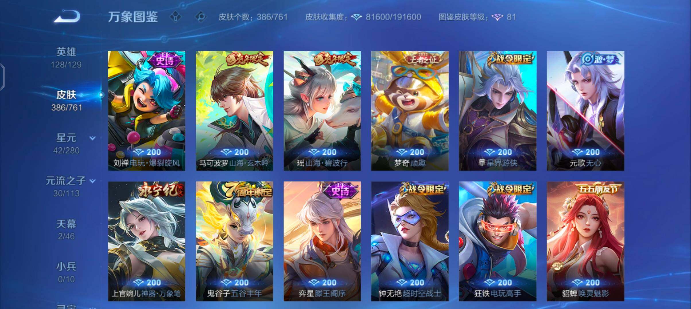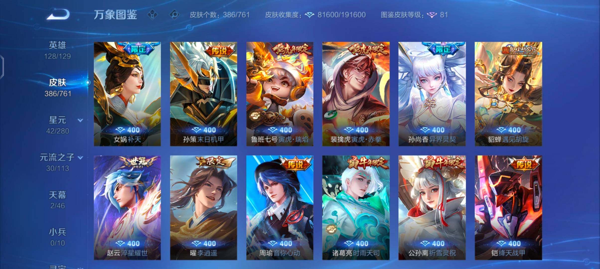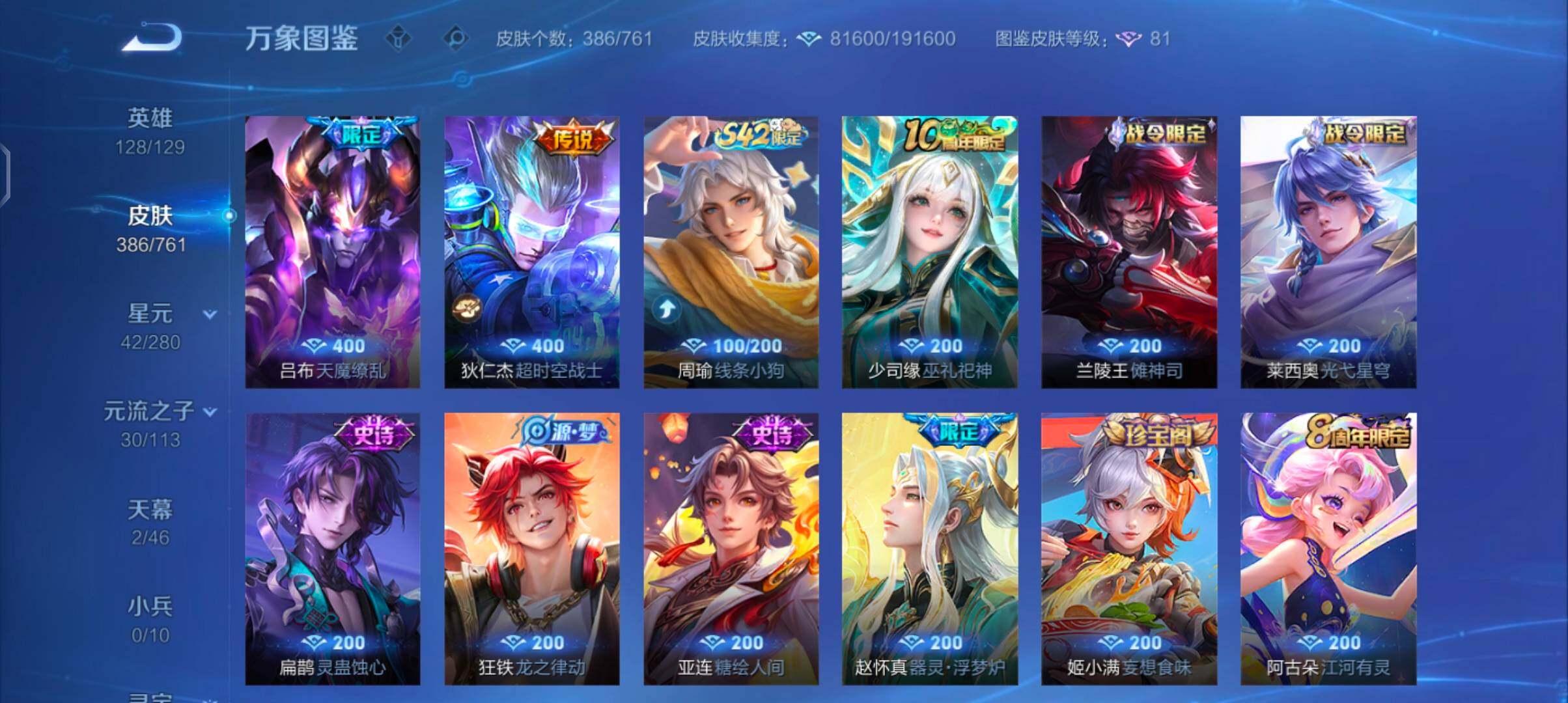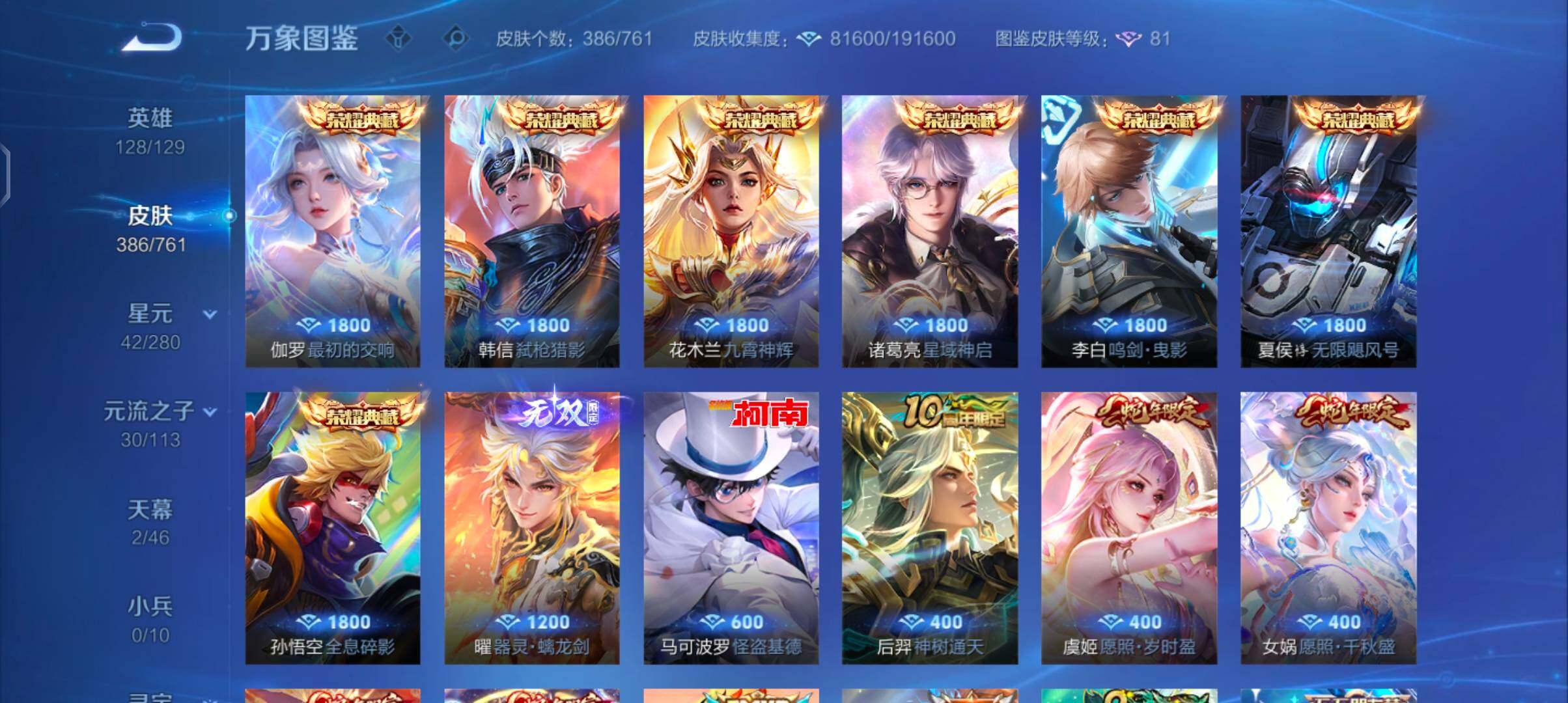 【精氪打野贵族v10·30个年限·全皮曜·凤鸣九霄天幕·墨上江山天幕·7典藏·1无双·1珍品·65传说·器灵螭龙剑·怪盗基德·全息碎影·无限飓风号·鸣剑曳影·星域神启·九霄神辉·弑呛猎影·最初的交响·满猪年限定·满虎年限定·满兔年限定·云中君群星魔术团·寅虎赤拳·李·武圣·白虎志·可二次】yxw14015-安卓q-128英雄-386皮肤-12王者印记-300铭文-贵族积分24w【贵族10】【7典藏·1无双·1珍品·2星传说·65传说·2天幕·46按键·221个性戳戳】【因赛季更新游戏段付以上号为准!】 【英雄全皮】:孙权全皮,橘右京全皮,李信全皮,曜全皮,影全皮 【荣耀典藏】:孙悟空全息碎影,夏侯惇无限飓风号,李白鸣剑曳影,诸葛亮星域神启,花木兰九霄神辉,韩信弑呛猎影,伽罗最初的交响 【无双皮肤】:曜器灵螭龙剑 【珍品传说】:马可波罗怪盗基德 【星元皮肤】:宫本武藏幽冥之眼,貂蝉金色仲夏夜 【天幕】:凤鸣九霄天幕,墨上江山天幕 【传说皮肤】:后羿神树通天,司空震愿照山河定,女娲愿照千秋盛,澜愿照九州拓,虞姬愿照岁时盈,云缨幻光神呛,裴擒虎祥瑞亨通,桑启鸣野蒿,云中君群星魔术团,艾琳觅芳踪,虞姬无限倾心,项羽无限倾心,伽罗炽翼辉光,孙悟空齐天大圣,小乔山海琳琅生,曜山海苍雷引,李信山海炽霜斩,吕布怒海麟威,李白诗剑行,狄仁杰神器狴犴令,不知火舞绯月行,百里守约碎云,橘右京枫霜尽,娜可露露前尘镜,孙尚香音你闪耀,马可波罗深海之息,马超无双飞将,女娲补天,孙策末日机甲,裴擒虎寅虎赤拳,鲁班七号寅虎瑞焰,孙尚香异界灵契,貂蝉遇见胡旋,赵云淬星耀世,曜李 ,周瑜音你心动,公孙离祈雪灵祝,诸葛亮时雨天司,铠绛天战甲,镜炽阳神光,虞姬启明星使,孙悟空零号赤焰,关羽武圣,曜云鹰飞将,李信一念神魔,刘备时之恋人,伽罗太华,貂蝉猫影幻舞,张良黄金白羊座,干将莫邪久胜战神,虞姬云霓雀翎,达摩黄金狮子座,百里玄策白虎志,花木兰冠军飞将,梦奇胖达荣荣,后羿黄金射手座,杨戬永曜之星,诸葛亮武陵仙君,貂蝉仲夏夜之梦,李白凤求凰,孙尚香末日机甲,宫本武藏地狱之眼,孙悟空地狱火,吕布天魔缭乱,狄仁杰超时空战士 【限定皮肤】:白起狰,狄仁杰阴阳师,虞姬凯尔特女王,廉颇寅虎御盾,小乔山海琳琅生,赵云皇家上将,赵云引擎之心,赵云龙胆,赵云百木心呛,嬴政白昼王子,孙尚香蔷薇恋人,孙尚香异界灵契,鲁班七号狮舞东方,鲁班七号寅虎瑞焰,庄周云端筑梦师,钟无艳超时空战士,孙膑寅虎展翼,扁鹊炼金王,芈月重明,芈月白晶晶,芈月幻夜卜梦,吕布天魔缭乱,吕布猎兽之王,吕布御风骁将,周瑜赤莲之焰,元歌云间偶戏,元歌无心,夏侯惇朔风刀,夏侯惇匿光决锋者,甄姬游园惊梦,甄姬落雪兰心,曹操烛龙,曹操天狼征服者,典韦穷奇,典韦蓝屏警告,典韦岱宗,马可波罗逐梦之星,马可波罗暗影游猎,马可波罗深海之息,马可波罗山海玄木吟,狄仁杰魔术师,狄仁杰万华元夜,狄仁杰神器狴犴令,达摩沙漠行僧,项羽海滩派对,项羽无限倾心,老夫子醍醐杖,关羽冰锋战神,关羽武圣,貂蝉遇见胡旋,程咬金演武夺筹,韩信逐梦之影,韩信飞衡,韩信傲雪梅呛,王昭君凤凰于飞,王昭君午后时光,兰陵王驯魔猎人,兰陵王金庭之子,花木兰青春决赛季,花木兰瑞麟志,花木兰默契交锋,不知火舞绯月行,娜可露露前尘镜,橘右京枫霜尽,孙悟空美猴王,孙悟空至尊宝,孙悟空大圣娶亲,孙悟空零号赤焰,孙悟空孙行者,孙悟空齐天大圣,牛魔御旌,后羿辉光之辰,后羿如梦令,李元芳云中旅人,虞姬启明星使,虞姬无限倾心,钟馗神迹守卫,钟馗驱傩正仪,杨玉环遇见飞天,杨玉环寅虎心曲,杨戬永曜之星,女娲朔望之晖,女娲补天,干将莫邪冰霜恋舞曲,雅典娜单词大作战,太乙真人饕餮,东皇太一逐梦之光,鬼谷子原初探秘者,鬼谷子五谷丰年,诸葛亮武陵仙君,诸葛亮时雨天司,黄忠火炮绅士,铠青龙志,苏烈玄武志,百里玄策白虎志,百里玄策原初追逐者,百里守约朱雀志,弈星混沌棋,梦奇顽趣,公孙离蜜橘之夏,公孙离祈雪灵祝,沈梦溪大漠名商,明世隐疑决卦,裴擒虎天狼狩猎者,裴擒虎李小龙,裴擒虎寅虎赤拳,狂铁御狮,狂铁电玩高手,米莱狄御霄,瑶山海碧波行,云中君纤云弄巧,李信山海炽霜斩,伽罗太华,伽罗天狼溯光者,伽罗炽翼辉光,猪八戒西部大镖客,上官婉儿梁祝,上官婉儿天狼绘梦者,上官婉儿神器万象笔,嫦娥拒霜思,嫦娥暖冬兔眠,曜李 ,曜山海苍雷引,蒙犽狂想玩偶喵,镜匿光追影者,桑启海盐诗旅,暃星界游侠,阿古朵江河有灵,裴擒虎梅西,艾琳觅芳踪,鬼谷子天穹祈灯,姬小满妄想食味,刘邦剑破天穹,云中君群星魔术团 【年限皮肤】:孙悟空美猴王,王昭君凤凰于飞,李白凤求凰,杨戬永曜之星,后羿辉光之辰,花木兰瑞麟志,苏烈玄武志,百里玄策白虎志,百里守约朱雀志,铠青龙志,伽罗太华,典韦岱宗,韩信飞衡,公孙离祈雪灵祝,诸葛亮时雨天司,吕布御风骁将,裴擒虎寅虎赤拳,鲁班七号寅虎瑞焰,孙膑寅虎展翼,廉颇寅虎御盾,杨玉环寅虎心曲,小乔山海琳琅生,曜山海苍雷引,李信山海炽霜斩,瑶山海碧波行,马可波罗山海玄木吟,司空震愿照山河定,女娲愿照千秋盛,澜愿照九州拓,虞姬愿照岁时盈 【赛季限定】:扁鹊炼金王,虞姬凯尔特女王,白起狰,太乙真人饕餮,曹操烛龙,芈月重明,典韦穷奇,狂铁御狮,米莱狄御霄,牛魔御旌,夏侯惇朔风刀,弈星混沌棋,明世隐疑决卦,老夫子醍醐杖,鬼谷子原初探秘者,狄仁杰万华元夜,程咬金演武夺筹,钟馗驱傩