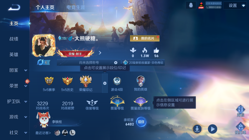 【王者荣耀】【lywz29296】珍品无双0 典藏0 无双0 珍品传说0 传说9 史诗33 英雄127 皮肤104 贵族3级 传说皮肤:鸣野蒿|胖达荣荣|地狱之眼|云鹰飞将|妄想实况|幻光神呛|愿照·岁时盈|愿照·九州拓|神树通天__稀有限定:寅虎·心曲|蔷薇恋人|傲雪梅呛|大漠名商|海滩派对|海盐诗旅|皇家上将|金庭之子|魔术师|千军破阵|擒涛扼浪|沙漠行僧|五谷丰年|阴阳师|原初追逐者|缤纷独角兽|冰冠公主|冰雪圆舞曲|德古拉伯爵|功夫厨神|鬼剑武藏|箭羽风息|魅力维加斯|女仆咖啡|圣诞恋歌|水果甜心|水晶猎龙者|赵云-未来纪元|星夜王子|鹰眼统帅|逐浪之夏|百里守约-百相守梦|老夫子-百相守梦|噬灭天穹|孙尚香-时之恋人|特工魅影|谧流熔炉|器灵·浮梦炉|化蝶舞|原初探秘者|云中旅人|龙之律动|布丁狗之约|虚灵犬护|石田雨龙|逆浪荇歌|涂山容容|荣光之誓|万灵启世|鹤鸣心笺|九幽镇关|周瑜-线条小狗__优质皮肤:埃及法老|孤猎|木偶奇遇记|激情绿茵|海之征途|第七人偶|绝影神呛|精灵王|范海辛|星航指挥官|灼热之刃|加勒比小姐|坚韧之力|幻乐之宴|命运角斗场|阿尔法小队|兔女郎|死亡骑士|黄金武士|少女阿狸|东方不败|街头霸王|太极少年|拳王|哥特玫瑰|西施-雪境奇遇|景韶洛都|浪漫序章|铁骨偃魂|敏锐之力|龙舞盛年|汉昭烈帝|曜-归虚梦演|沉稳之力|万象初新|苍林狼骑|春野闲踪|灵野札记|玫蓝誓约|命运加冕|小满鸭|溯影追猎|谜偶窥秘__贵族等级:贵族3级__王者段位:至尊星耀神树通天,地狱之眼,幻光神呛,云鹰飞将,愿照·九州拓,妄想实况,愿照·岁时盈,鸣野蒿,胖达荣荣