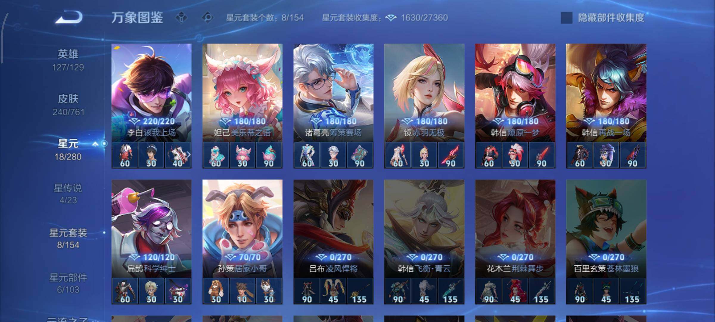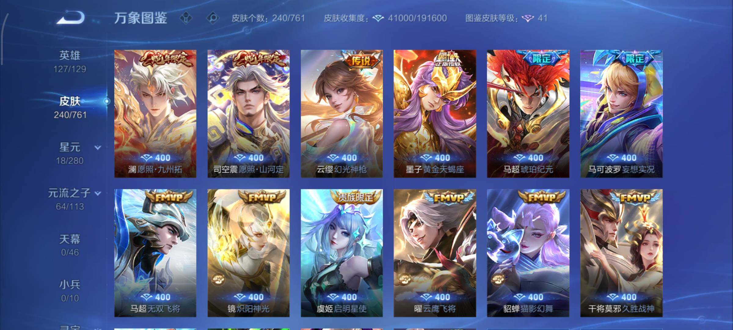 【高性价比·幻阙歌·最初的交响·瑶真我赫兹·马可怪盗基德·孙策时之奇旅·瑶大耳狗之梦·幻舞叠翠·镜破晓神光·全皮马超·全皮元歌·满蛇年限定·妄想实况·曜云鹰飞将·可二次】yxw13680-安卓q-127英雄-240皮肤-9王者印记-170铭文-贵族积分6w【贵族8】【2典藏·1无双·3珍品·4星传说·21传说·9按键】【因赛季更新游戏段付以上号为准!】 【英雄全皮】:元歌全皮,孙权全皮,马超全皮,影全皮,海诺全皮 【荣耀典藏】:貂蝉幻阙歌,伽罗最初的交响 【无双皮肤】:瑶真我赫兹 【珍品传说】:马可波罗怪盗基德,孙策时之奇旅,瑶大耳狗之梦 【星元皮肤】:貂蝉幻舞叠翠,镜破晓神光,孙尚香未来机甲,宫本武藏幽冥之眼 【传说皮肤】:后羿神树通天,元歌诡秘之主,司空震愿照山河定,女娲愿照千秋盛,妲己愿照众生和,澜愿照九州拓,蔡文姬愿照福禄聚,虞姬愿照岁时盈,云缨幻光神呛,墨子黄金天蝎座,马超琥珀纪元,马可波罗妄想实况,马超无双飞将,镜炽阳神光,虞姬启明星使,曜云鹰飞将,貂蝉猫影幻舞,干将莫邪久胜战神,梦奇胖达荣荣,孙尚香末日机甲,宫本武藏地狱之眼 【限定皮肤】:大乔绒语心约,姜子牙天穹之誓,李白谪仙醉月,狄仁杰阴阳师,赵云皇家上将,芈月白晶晶,元歌云间偶戏,元歌无心,马可波罗妄想实况,狄仁杰魔术师,狄仁杰万华元夜,项羽海滩派对,安琪拉魔法小厨娘,程咬金演武夺筹,兰陵王金庭之子,孙悟空至尊宝,孙悟空孙行者,李元芳云中旅人,虞姬启明星使,女娲朔望之晖,太乙真人华丽摇滚,百里玄策原初追逐者,沈梦溪大漠名商,西施至美乘鲤谣,鲁班大师探海日志,蒙恬荣光圣徽,高渐离燃音魔法,妲己灵卜魔法,鬼谷子天穹祈灯,伽罗琥珀纪元,马超琥珀纪元,姬小满妄想食味,沈梦溪龙舞盛年,鲁班七号蔬乡物语,李元芳蔬乡物语,刘邦剑破天穹,上官婉儿群星魔术团,程咬金群星魔术团,镜青焰无极,项羽苍威无极,海诺心动手记,刘备异域游侠,芈月浮光幕影,周瑜熔金海岸 【年限皮肤】:司空震愿照山河定,女娲愿照千秋盛,妲己愿照众生和,澜愿照九州拓,蔡文姬愿照福禄聚,虞姬愿照岁时盈 【赛季限定】:狄仁杰万华元夜,程咬金演武夺筹,兰陵王金庭之子,沈梦溪大漠名商,李元芳云中旅人,鲁班大师探海日志,鬼谷子天穹祈灯,刘邦剑破天穹,姜子牙天穹之誓,东皇太一噬灭天穹,太乙真人谧流熔炉,钟馗虚灵犬护,甄姬逆浪荇歌,亚瑟荣光之誓,百里玄策原初追逐者,蒙恬荣光圣徽,牛魔星界战将,项羽九幽镇关 【战令限定】:女娲朔望之晖,元歌云间偶戏,高渐离燃音魔法,妲己灵卜魔法,鲁班七号蔬乡物语,李元芳蔬乡物语,镜青焰无极,项羽苍威无极,百里守约百相守梦,老夫子百相守梦,孙膑茶境仙,马超访茗客,刘禅鸭鸭历险记,沈梦溪鸭鸭历险记,周瑜百相守梦,孙策百相守梦,周瑜线条小狗 【史诗皮肤】:露娜紫霞仙子,赵云皇家上将,赵云未来纪元,甄姬冰雪圆舞曲,狄仁杰魔术师,廉颇地狱岩魂,宫本武藏鬼剑武藏,孙尚香水果甜心,嬴政摇滚巨星,妲己魅力维加斯,墨子金属风暴,吕布圣诞狂欢,曹操幽灵船长,李白千年之狐,安琪拉魔法小厨娘,孙悟空至尊宝,花木兰水晶猎龙者,刘邦德古拉伯爵,兰陵王暗隐猎兽者,亚瑟心灵战警,安琪拉心灵骇客,百里守约特工魅影,程咬金功夫厨神,白起星夜王子,孙策猫狗日记,狄仁杰鹰眼统帅,公孙离无限星赏官,娜可露露晚萤,大乔白蛇,不知火舞魅语,橘右京修罗,马超神威,百里玄策原初追逐者,元歌云间偶戏,芈月白晶晶,沈梦溪月团寄思,钟馗乐园奇幻夜,孙悟空孙行者,弈星滕王阁序,元歌无心,西施至美乘鲤谣,妲己灵卜魔法,高渐离燃音魔法,蒙恬荣光圣徽,伽罗琥珀纪元,姬小满妄想食味,鲁班七号蔬乡物语,上官婉儿群星魔术团,镜青焰无极,海诺心动手记,黄忠怒海争锋,芈月浮光幕影,李白谪仙醉月,百里守约百相守梦,牛魔星界战将,孙膑茶境仙,赵怀真器灵浮梦炉,阿轲化蝶舞,刘禅鸭鸭历险记,扁鹊灵蛊蚀心,周瑜百相守梦,黄忠百相守梦,公孙离涂山容容,百里玄策罗小黑战记,女娲万灵启世,少司缘巫礼祀神,项羽九幽镇关,周瑜线条小狗 【其他皮肤】:项羽海滩派对,韩信教廷特使,韩信街头霸王,露娜哥特玫瑰,阿轲爱心护理,赵云白执事,赵云忍炎影,芈月红桃皇后,白起白色死神,扁鹊化身博士,扁鹊救世之瞳,姜子牙时尚教父,典韦黄金武士,亚瑟死亡骑士,达摩拳王,花木兰兔女郎,甄姬花好人间,宫本武藏万象初新,狄仁杰阴阳师,刘备纽约教父,关羽龙腾万里,钟无艳海滩丽影,王昭君幻想奇妙夜,孙尚香沉稳之力,诸葛亮掌控之力,李白敏锐之力,鬼谷子幻乐之宴,太乙真人华丽摇滚,张良幽兰居士,女娲朔望之晖,小乔丁香结,沈梦溪鲨炮海盗猫,哪吒次元突破,狄仁杰万华元夜,刘禅秘密基地,程咬金演武夺筹,张良缤纷绘卷,鲁班大师乓乓大师,兰陵王金庭之子,沈梦溪大漠名商,蒙恬蔚蓝守将,李元芳云中旅人,刘备潮玩造梦师,海月幻泉雾影,猪八戒潮玩探月行,太乙真人劲辣红锅,莱西奥西部游侠,鲁班大师探海日志,哪吒热血海滩,鬼谷子天穹祈灯,妲己灵卜魔法,海诺时空谍影,嫦娥漠中幻影,朵莉亚金色潮汐,廉颇功夫炙烤,亚瑟鸿运当头,沈梦溪龙舞盛年,钟无艳春野之旅,李元芳蔬乡物语,扁鹊无尽旅途,刘邦剑破天穹,盘古经纬探寻者,程咬金群星魔术团,项羽苍威无极,大司命暗都幽影,刘备异域游侠,貂蝉长夏之忆,姜子牙天穹之誓,周瑜熔金海岸,大乔绒语心约,东皇太一噬灭天穹,老夫子