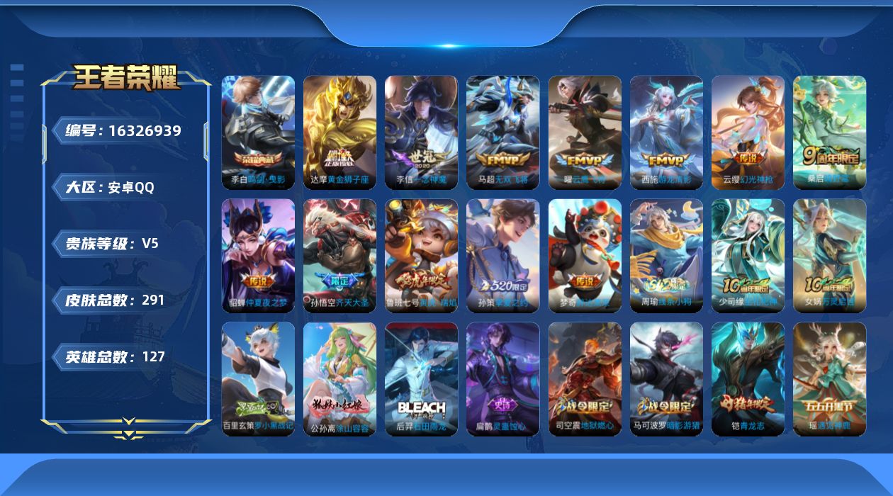 [16326939]安卓q-v5-291皮肤-1典藏皮肤-13传说-96史诗 【荣耀典藏】:李白鸣剑曳影 【传说皮肤】:后羿神树通天,云缨幻光神呛,桑启鸣野蒿,孙悟空齐天大圣,马超无双飞将,孙策挚爱之约,鲁班七号寅虎瑞焰,西施游龙清影,曜云鹰飞将,李信一念神魔,达摩黄金狮子座,梦奇胖达荣荣,貂蝉仲夏夜之梦 【限定皮肤】:蔡文姬夏日便利店,虞姬夏日便利店,姜子牙天穹之誓,狄仁杰阴阳师,赵云皇家上将,嬴政优雅恋人,鲁班七号寅虎瑞焰,庄周高山流水,扁鹊奇幻香踪,白起夜都怪侠,芈月幻夜卜梦,周瑜赤莲之焰,元歌云间偶戏,元歌无心,甄姬游园惊梦,马可波罗暗影游猎,狄仁杰魔术师,狄仁杰万华元夜,达摩星际陆战队,达摩沙漠行僧,项羽海滩派对,老夫子醍醐杖,程咬金演武夺筹,韩信飞衡,王昭君午后时光,兰陵王金庭之子,花木兰默契交锋,亚瑟潮玩骑士王,孙悟空齐天大圣,后羿圣弓游侠,李元芳云中旅人,钟馗驱傩正仪,杨戬潮玩骑兵,干将莫邪真爱魔法,雅典娜单词大作战,雅典娜黎明之约,蔡文姬繁星吟游,鬼谷子原初探秘者,鬼谷子五谷丰年,黄忠火炮绅士,铠青龙志,苏烈千军破阵,百里玄策原初追逐者,梦奇顽趣,沈梦溪星空之诺,沈梦溪大漠名商,明世隐疑决卦,明世隐吟游魔法,裴擒虎李小龙,裴擒虎擒涛扼浪,狂铁电玩高手,米莱狄胡桃异想国,云中君纤云弄巧,孙策挚爱之约,猪八戒西部大镖客,上官婉儿梁祝,嫦娥拒霜思,嫦娥暖冬兔眠,蒙犽狂想玩偶喵,鲁班大师探海日志,镜匿光追影者,桑启海盐诗旅,暃星界游侠,艾琳女武神,艾琳流音漫舞,司空震地狱燃心,阿古朵江河有灵,张良古海寻踪,蒙犽百解令,蒙恬荣光圣徽,高渐离燃音魔法,妲己灵卜魔法,鬼谷子天穹祈灯,姬小满妄想食味,沈梦溪龙舞盛年,鲁班七号蔬乡物语,李元芳蔬乡物语,刘邦剑破天穹,程咬金群星魔术团,刘备异域游侠,周瑜熔金海岸 【年限皮肤】:铠青龙志,鲁班七号寅虎瑞焰,韩信飞衡 【赛季限定】:狄仁杰万华元夜,达摩沙漠行僧,老夫子醍醐杖,程咬金演武夺筹,兰陵王金庭之子,张良古海寻踪,李元芳云中旅人,钟馗驱傩正仪,雅典娜黎明之约,鬼谷子原初探秘者,苏烈千军破阵,百里玄策原初追逐者,梦奇顽趣,沈梦溪大漠名商,明世隐疑决卦,裴擒虎擒涛扼浪,鲁班大师探海日志,桑启海盐诗旅,鬼谷子天穹祈灯,蒙恬荣光圣徽,刘邦剑破天穹,姜子牙天穹之誓 【战令限定】:蔡文姬夏日便利店,虞姬夏日便利店,扁鹊奇幻香踪,白起夜都怪侠,芈月