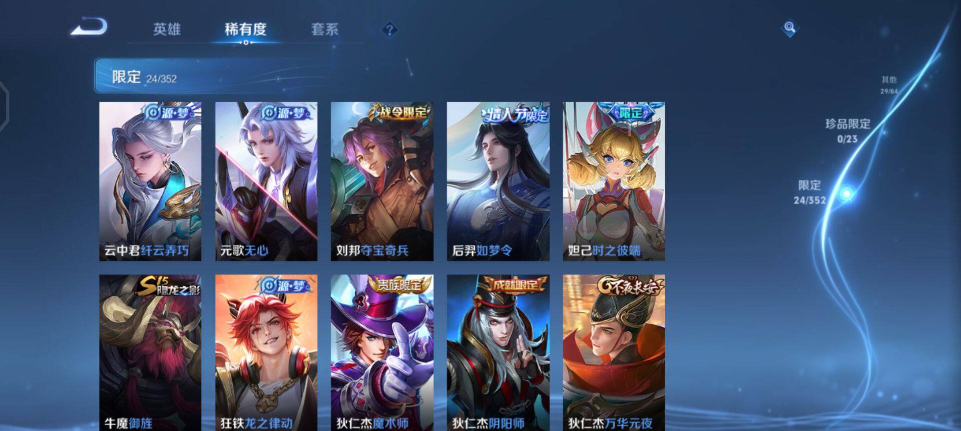 w12945 可立即换绑无需挂单养号 铭文满级 传说3 按键2 夺宝76 安卓q-v7-最强王者段位-123英雄-101皮肤-3传说-21史诗 【传说皮肤】:后羿黄金射手座,孙悟空地狱火,狄仁杰超时空战士 【限定皮肤】:狄仁杰阴阳师,赵云皇家上将,妲己时之彼端,钟无艳王者之锤,元歌无心,狄仁杰魔术师,狄仁杰万华元夜,项羽海滩派对,老夫子醍醐杖,刘邦夺宝奇兵,韩信飞衡,牛魔御旌,后羿
