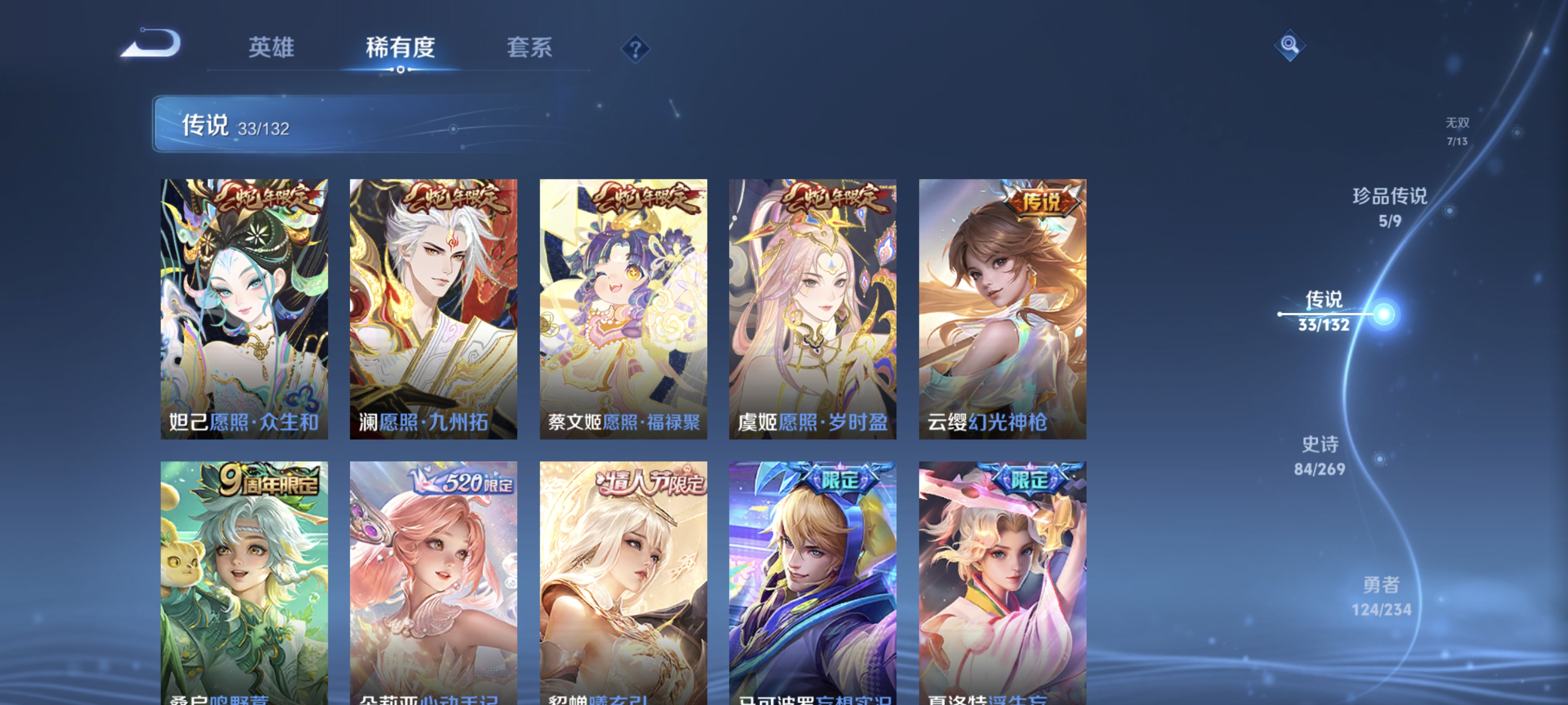 txwz29787虎年蛇年限定全套 西施全皮带星元 v8 128英雄 282皮 1星元皮 游龙瑾华 1珍品无双馥梦繁花 2荣耀典藏天鹅之梦,鸣剑·曳影 7无双无相,真我赫兹,雪境奇遇,神罪,碎月剑心,天机白泽,器灵·螭龙剑 5珍品黑崎一护,朽木白哉,大耳狗之梦,江户川柯南,怪盗基德 33传说长夜焕生,末日机甲,山海·苍雷引,心动手记,纵目迁山,神树通天,千山共赴,诡秘之主,死亡执政官,九山相柳,诗剑行,寅虎·瑞焰,寅虎·赤拳,启明星使,浮生妄,祈雪灵祝,续相思,绯月行,幻光神呛,愿照·千秋盛,愿照·山河定,愿照·岁时盈,愿照·福禄聚,愿照·众生和,愿照·九州拓,炽阳神光,云鹰飞将,胖达荣荣,音你心动,妄想实况,鸣野蒿,曦玄引,游龙清影 83史诗