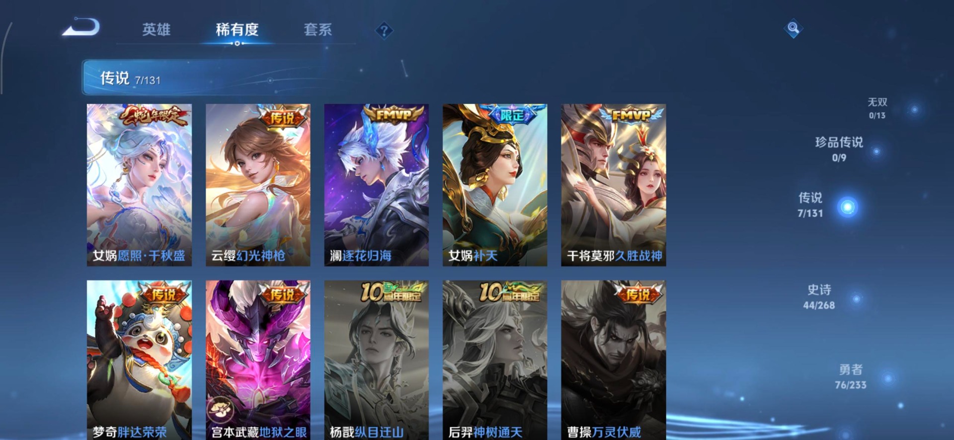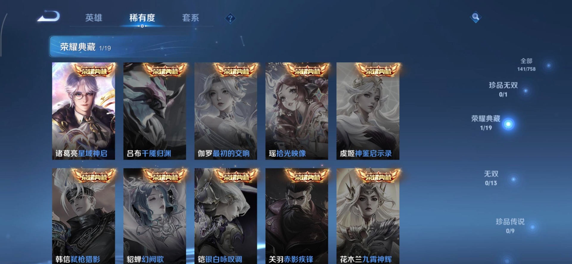 [16171506]v5 1典藏 7传说 128英雄 141皮肤 可修改实名 【英雄全皮】敖隐全皮大禹全皮 【稀有英雄】敖隐小龙人大司命嬴政始皇帝韩信韩跳跳夏洛特夏师傅艾琳橘右京橘子娜可露露鸟人不知火舞赵云金蝉唐僧戈娅 【荣耀水晶】星域神启倪克