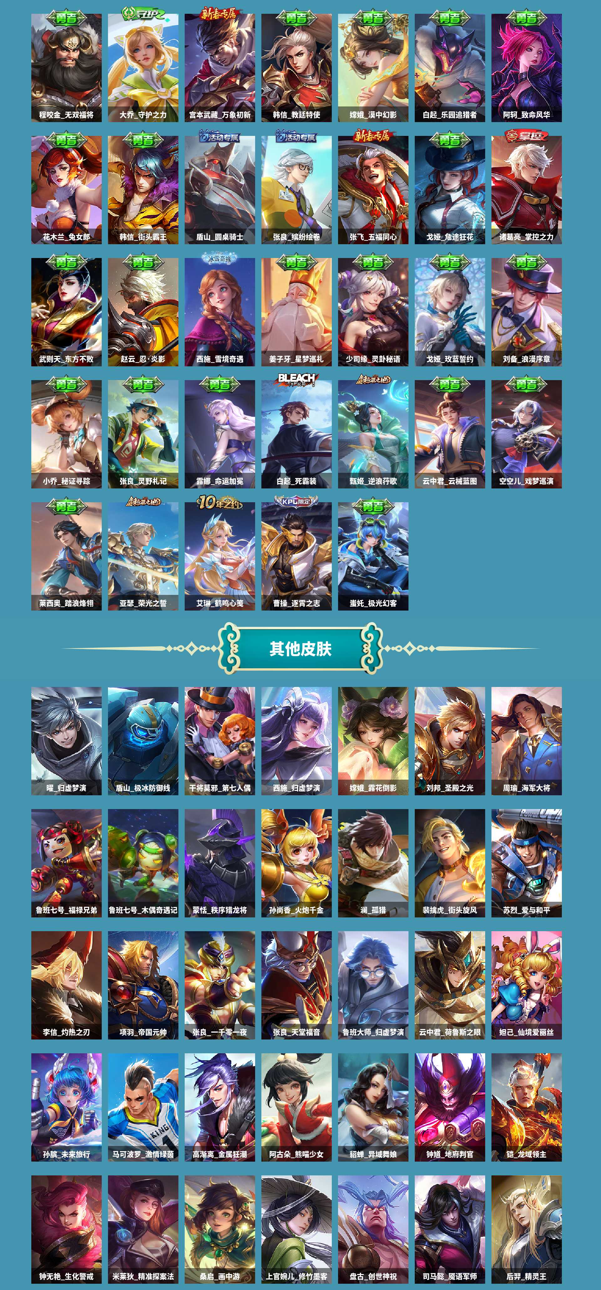 f7英雄-f8皮肤-al 【v10-打野55段韩信全皮-历史3个万战,10金标带妹数据号-8典藏-瑶拾光映像,李白鸣剑曳影,韩信弑呛猎影,夏侯惇无限飓风号,孙悟空全息碎影,鲁班七号星空梦想,小乔天鹅之梦,孙尚香杀手不太冷-韩信群星魔术团,后裔神树通天,赵云乘龙铭钟鼎,澜逐花归海,狄仁杰夜礼服假面,孙策挚爱之约,孙策末日机甲,诸葛亮武陵仙君,赵云淬星耀世,孙尚香异界灵契,干将莫邪久胜战神,曜云鹰飞将,百里玄