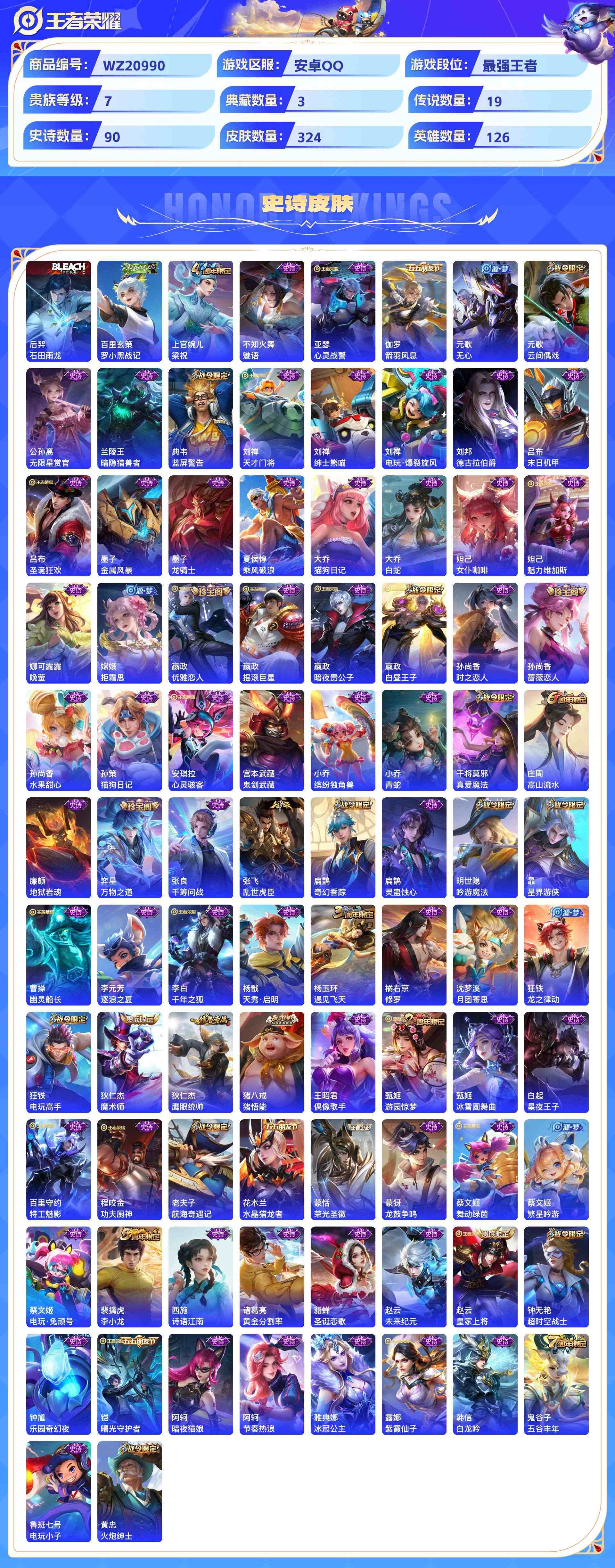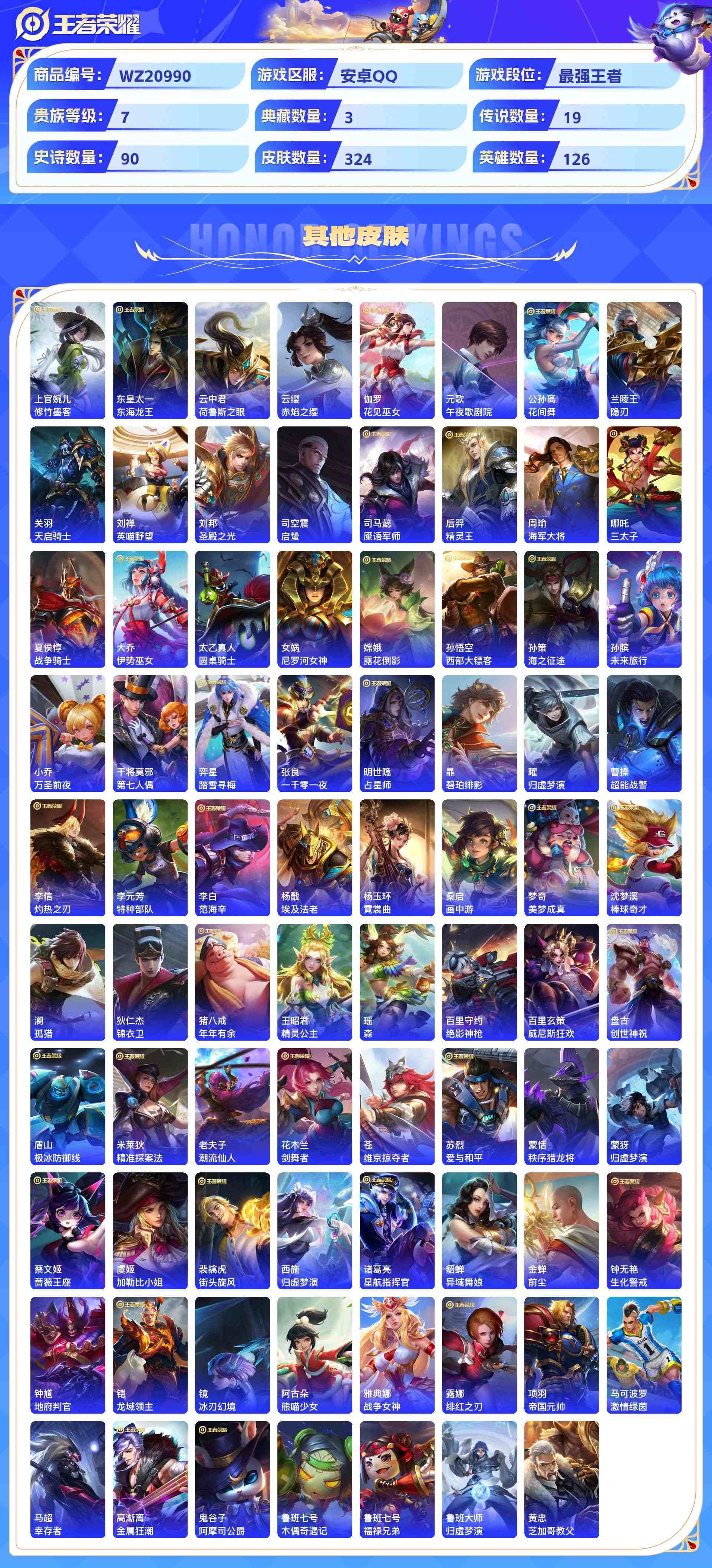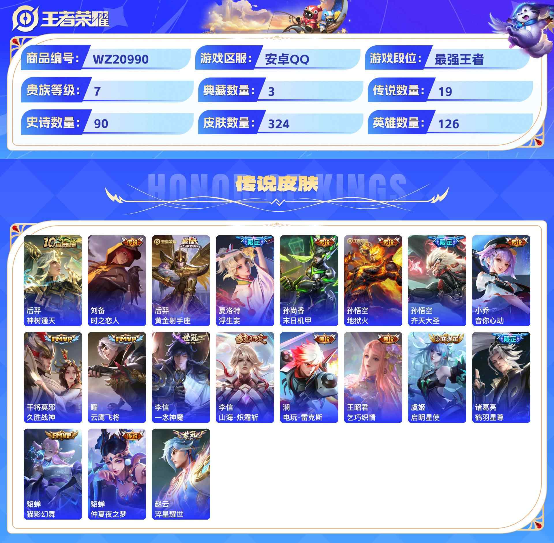 wz20990|精品小号安卓qq324皮贵族7级3典藏(无限飓风号鸣剑·曳影幻阙歌)19传说(云鹰飞将 仲夏夜之梦音你心动 时之恋人)90史诗3星传说3个性按键