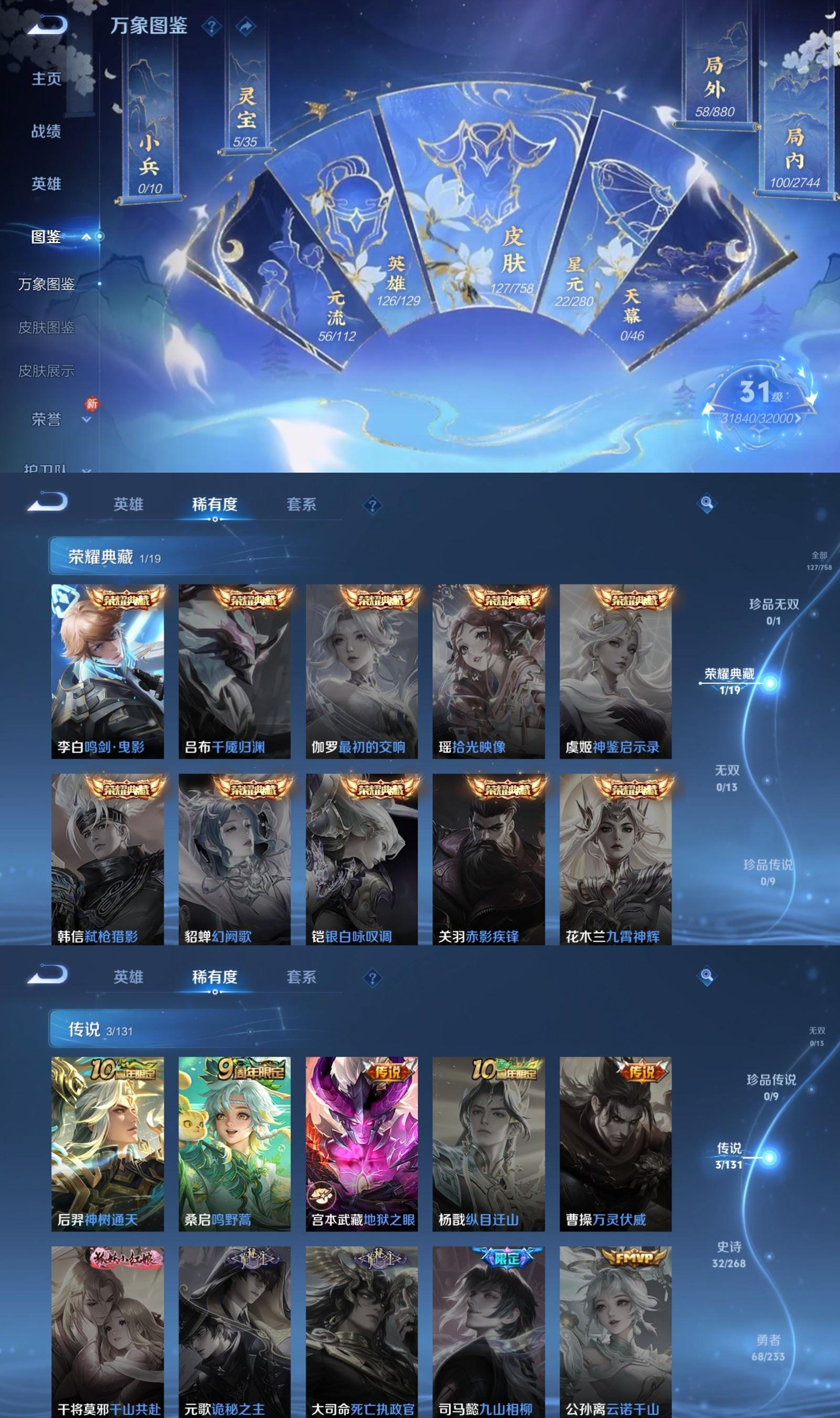 126英雄-127皮肤-1金标 百里守约 127皮肤1典藏3传说1星元32史诗35限定-535紫星币 【典藏】 鸣剑曳影 【星元】 幽冥之眼 【传说】 神树通天 鸣野蒿 地狱之眼 【热门】涂山容容 原初追逐者 黄忠百相守梦 灵蛊蚀心 李小龙 水晶猎龙者 暗隐猎兽者 猫狗日记男 金属风暴 特工魅影 曙光守护者 特工战影 黄金分割率 妄想食味 逐浪之夏 心灵战警 圣诞恋歌 乘风破浪 星夜王子 天才门将 街头霸王 鬼剑