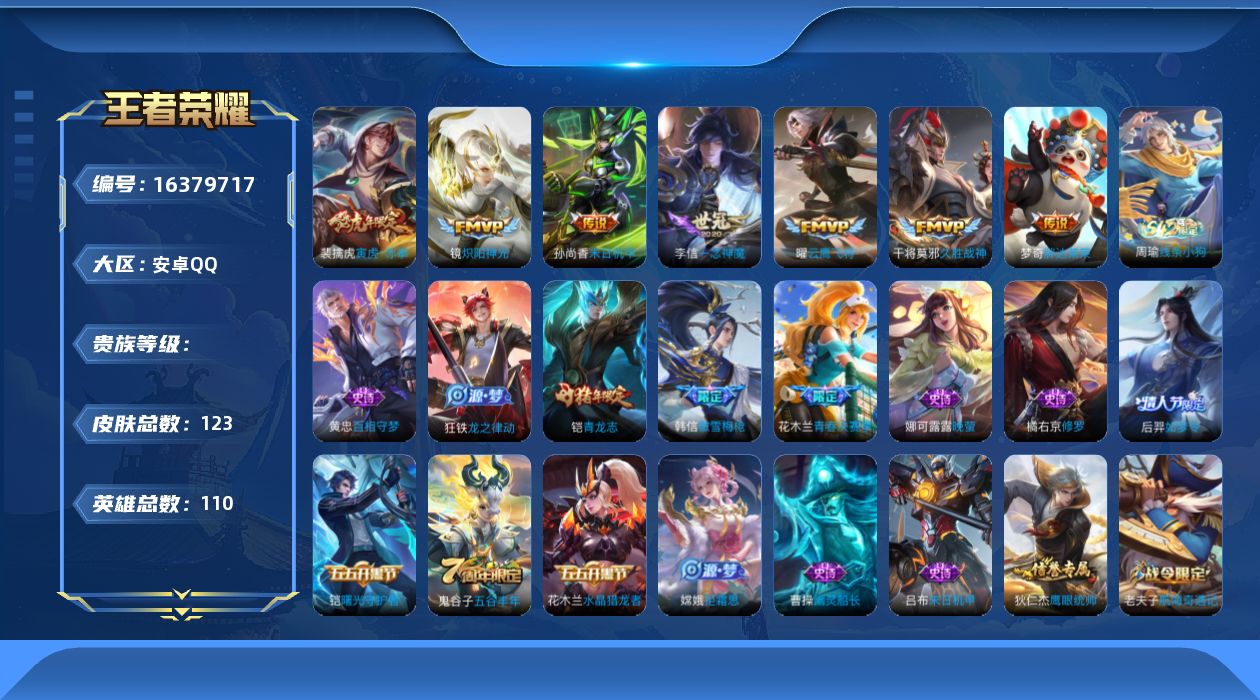 [16379717]王者 可二次 省标金标万战裴擒虎 银标万战韩信 打野带妹号 7传 寅虎赤拳 炽阳神光 云鹰飞将 一念神魔 久胜战神 胖达荣荣 末日机甲 傲雪梅呛 修罗 天秀启明 青龙志1按键