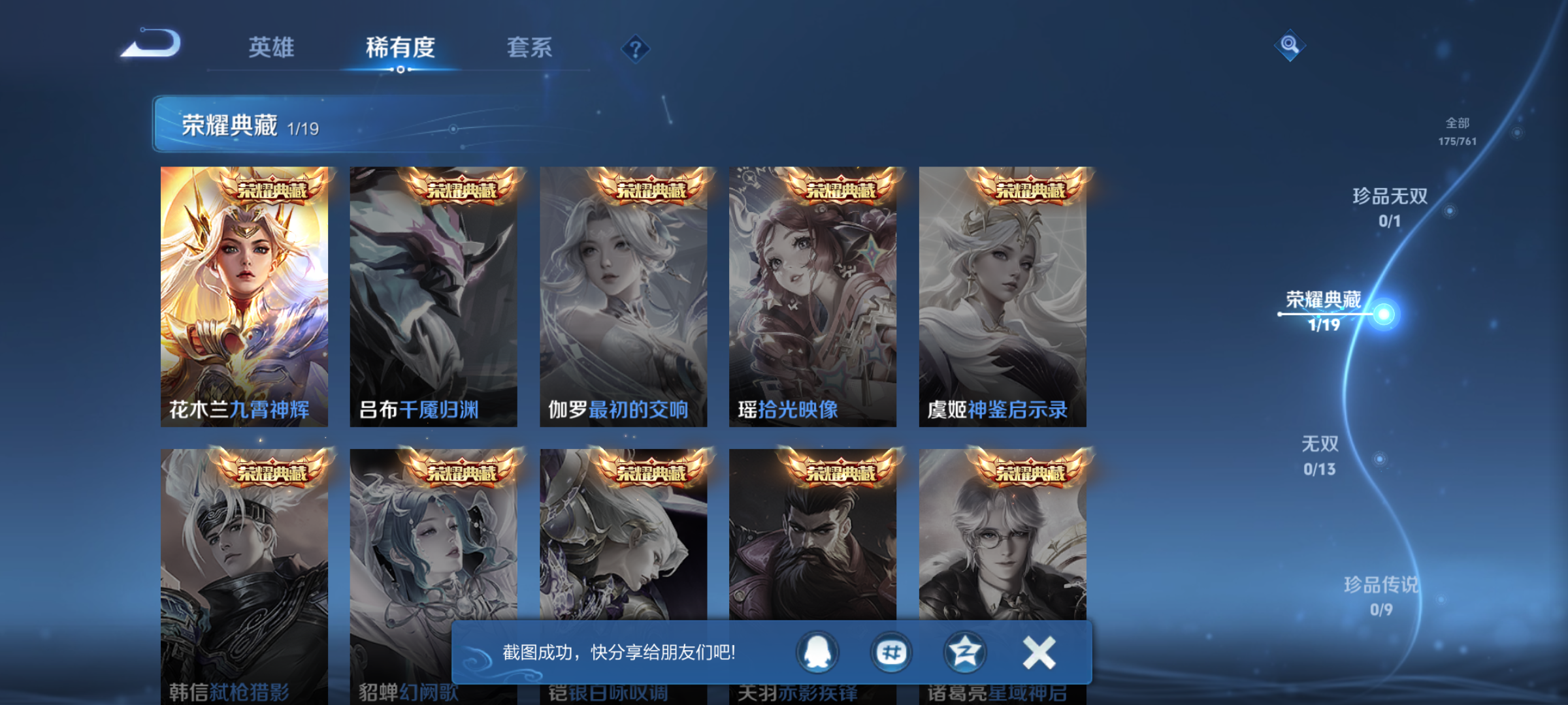 txwz29807 v7 175皮 1典藏 九霄神辉 15传说 神树通天,黄金白羊座,黄金狮子座,末日机甲,久胜战神,愿照·九州拓,幻光神呛,无双飞将,鸣野蒿,妄想实况,地狱之眼,逐花归海,乘龙·淬吴钩,云鹰飞将,炽阳神光 56史诗 九幽镇关,冰冠公主,万灵启世,乱世虎臣,涂山容容,原初追逐者,节奏热浪,百相守梦,舞动绿茵,金属风暴,龙之律动,化蝶舞,茶境仙,傲雪梅呛,滕王阁序,星界战将,遇见神鹿,逐浪之夏,特工魅影,心灵骇客,功夫厨神,乘风破浪,幽灵船长,摇滚巨星,破空之剑,战舞者,驯魔猎人,顽岩魄,夏日便利店,未来纪元,末日机甲,鬼剑武藏,赏金猎手,怒海争锋,无限星赏官,蓝屏警告,鹰眼统帅,蔬乡物语,时之恋人,魔术师,德古拉伯爵,青蛇,偶像歌手,燃音魔法,皇家上将,暗渊魔法,千年之狐,紫霞仙子,黄金分割率,女仆咖啡,修罗,水果甜心,无心,魅力维加斯,五谷丰年,水晶猎龙者
