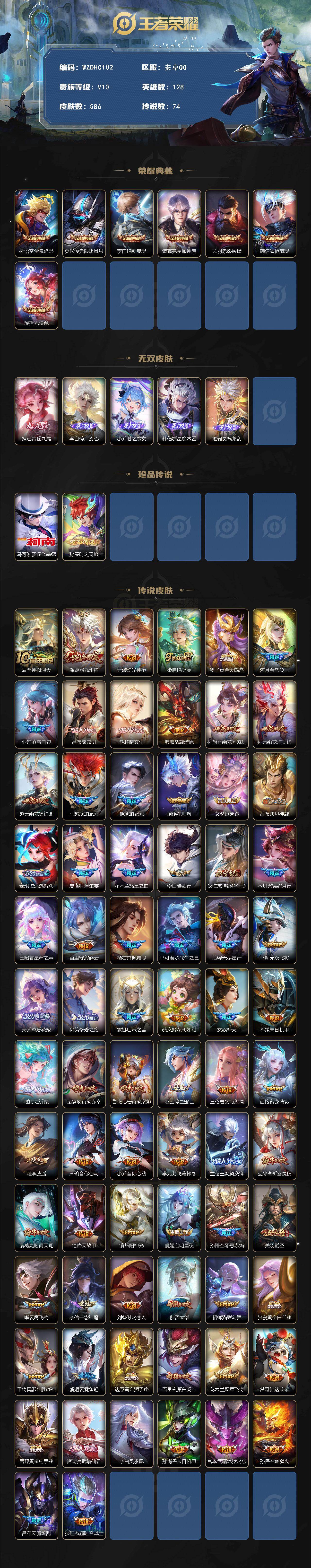 dhc42655,10星元/紫瑶/21按键/,安卓q-v10-最强王者段位-128英雄-586皮肤-7典藏皮肤-5无双-2珍品传说-74传说-193史诗 【英雄全皮】:赵云全皮,墨子全皮,刘禅全皮,扁鹊全皮,白起全皮,典韦全皮,达摩全皮,刘邦全皮,韩信全皮,孙权全皮,橘右京全皮,钟馗全皮,雅典娜全皮,太乙真人全皮,黄忠全皮,百里玄策全皮,狂铁全皮,盾山全皮,孙策全皮,猪八戒全皮,马超全皮,鲁班大师全皮,蒙恬全皮,夏洛特全皮,金蝉全皮,空空儿全皮,影全皮 【荣耀典藏】:孙悟空全息碎影,夏侯惇无限飓风号,李白鸣剑曳影,诸葛亮星域神启,关羽赤影疾锋,韩信弑呛猎影,瑶拾光映像 【无双皮肤】:妲己青丘九尾,李白碎月剑心,小乔时之魔女,韩信群星魔术团,曜器灵螭龙剑 【珍品传说】:马可波罗怪盗基德,孙策时之奇旅 【传说皮肤】:后羿神树通天,澜愿照九州拓,云缨幻光神呛,桑启鸣野蒿,墨子黄金天蝎座,海月金乌负日,亚连落雪白狼,吕布曦玄引,貂蝉曦玄引,典韦战鼓燎原,孙尚香乘龙问璇玑,孙策乘龙淬吴钩,赵云乘龙铭钟鼎,马超琥珀纪元,铠琥珀纪元,澜逐花归海,艾琳觅芳踪,吕布遇见神鼓,安琪拉追逃游戏,夏洛特浮生妄,花木兰燃星之曲,李白诗剑行,狄仁杰神器狴犴令,不知火舞绯月行,王昭君星穹之声,百里守约碎云,橘右京枫霜尽,马可波罗深海之息,后羿无尽星芒,马超无双飞将,大乔挚爱花嫁,孙策挚爱之约,露娜启示之音,蔡文姬花朝如约,女娲补天,孙策末日机甲,瑶时之祈愿,裴擒虎寅虎赤拳,鲁班七号寅虎瑞焰,赵云淬星耀世,王昭君乞巧织情,西施游龙清影,曜李 ,周瑜音你心动,小乔音你心动,李元芳飞鸢探春,兰陵王默契交锋,公孙离祈雪灵祝,诸葛亮时雨天司,铠绛天战甲,镜炽阳神光,虞姬启明星使,孙悟空零号赤焰,关羽武圣,曜云鹰飞将,李信一念神魔,刘备时之恋人,伽罗太华,貂蝉猫影幻舞,张良黄金白羊座,干将莫邪久胜战神,虞姬云霓雀翎,达摩黄金狮子座,百里玄策白虎志,花木兰冠军飞将,梦奇胖达荣荣,后羿黄金射手座,诸葛亮武陵仙君,李白凤求凰,孙尚香末日机甲,宫本武藏地狱之眼,孙悟空地狱火,吕布天魔缭乱,狄仁杰超时空战士 【限定皮肤】:白起狰,蔡文姬夏日便利店,大乔绒语心约,虞姬夏日便利店,姜子牙天穹之誓,杨戬破阵退雄兵,狄仁杰阴阳师,小乔纯白花嫁,虞姬凯尔特女王,廉颇寅虎御盾,赵云皇家上将,赵云引擎之心,赵云龙胆,赵云百木心呛,墨子神迹守卫,墨子降魔,妲己时之彼端,妲己时之奇旅,嬴政优雅恋人,嬴政白昼王子,孙尚香蔷薇恋人,鲁班七号狮舞东方,鲁班七号寅虎瑞焰,庄周蜃楼王,庄周云端筑梦师,庄周玄嵩,庄周高山流水,高渐离死亡摇滚,阿轲迷踪丽影,钟无艳超时空战士,孙膑妖精王,孙膑天狼运算者,孙膑寅虎展翼,扁鹊炼金王,扁鹊奇幻香踪,白起夜都怪侠,芈月重明,芈月白晶晶,芈月幻夜卜梦,吕布天魔缭乱,吕布猎兽之王,吕布御风骁将,吕布遇见神鼓,周瑜真爱至上,周瑜赤莲之焰,元歌云间偶戏,元歌无心,夏侯惇朔风刀,夏侯惇匿光决锋者,甄姬幽恒,甄姬女儿国国王,甄姬游园惊梦,甄姬落雪兰心,曹操烛龙,曹操天狼征服者,典韦穷奇,典韦蓝屏警告,典韦岱宗,马可波罗逐梦之星,马可波罗暗影游猎,马可波罗深海之息,狄仁杰魔术师,狄仁杰万华元夜,狄仁杰神器狴犴令,达摩星际陆战队,达摩沙漠行僧,项羽海滩派对,项羽霸王别姬,老夫子醍醐杖,老夫子航海奇遇记,关羽冰锋战神,关羽武圣,安琪拉魔法小厨娘,安琪拉追逃游戏,程咬金演武夺筹,露娜一生所爱,露娜启示之音,刘邦夺宝奇兵,韩信逐梦之影,韩信飞衡,韩信傲雪梅呛,王昭君凤凰于飞,王昭君午后时光,王昭君星穹之声,兰陵王默契交锋,兰陵王驯魔猎人,兰陵王金庭之子,花木兰瑞麟志,花木兰默契交锋,花木兰燃星之曲,不知火舞绯月行,橘右京枫霜尽,亚瑟狮心王,亚瑟潮玩骑士王,孙悟空美猴王,孙悟空至尊宝,孙悟空大圣娶亲,孙悟空零号赤焰,孙悟空孙行者,牛魔御旌,牛魔奔雷神使,后羿辉光之辰,后羿如梦令,后羿圣弓游侠,后羿无尽星芒,李元芳银河之约,李元芳云中旅人,虞姬霸王别姬,虞姬启明星使,钟馗神迹守卫,钟馗驱傩正仪,杨玉环遇见飞天,杨玉环寅虎心曲,杨戬潮玩骑兵,女娲朔望之晖,女娲补天,干将莫邪冰霜恋舞曲,干将莫邪真爱魔法,雅典娜单词大作战,雅典娜黎明之约,蔡文姬繁星吟游,太乙真人饕餮,太乙真人华丽摇滚,东皇太一逐梦之光,鬼谷子原初探秘者,鬼谷子五谷丰年,诸葛亮武陵仙君,诸葛亮时雨天司,大乔白鹤梁神女,大乔挚爱花嫁,黄忠烈魂,黄忠火炮绅士,铠青龙志,苏烈玄武志,苏烈千军破阵,百里玄策白虎志,百里玄策原初追逐者,百里守约朱雀志,弈星混沌棋,梦奇顽趣,公孙离祈雪灵祝,公孙离玉兔公主,沈梦溪星空之诺,沈梦溪大漠名商,明世隐疑决卦,明世隐吟游魔法,裴擒虎天狼狩猎者,裴擒虎李小龙,裴擒虎寅虎赤拳,裴擒虎擒涛扼浪,狂铁御狮,狂铁电玩高手,米莱狄御霄,米莱狄胡桃异想国,瑶时之祈愿,云中君纤云弄巧,云中君时之祈愿,伽罗太华,伽罗天狼溯光者,盾山御銮,盾山梦圆繁星,孙策挚爱之约,猪八戒西部大镖客,猪八戒猪悟能,上官婉儿梁祝,上官婉儿天狼绘梦者,上官婉儿神器万象笔,嫦娥拒霜思,嫦娥暖冬兔眠,曜李 ,西施玲珑珍味,蒙犽狂想玩偶喵,鲁班大师匿光启智者,鲁班大师探海日志,镜匿光追影者,桑启海盐诗旅,夏洛特浮生妄,金蝉唐三藏,暃星界游侠,戈娅驭风魔法,艾琳女武神,艾琳流音漫舞,司空震地狱燃心,阿古朵江河