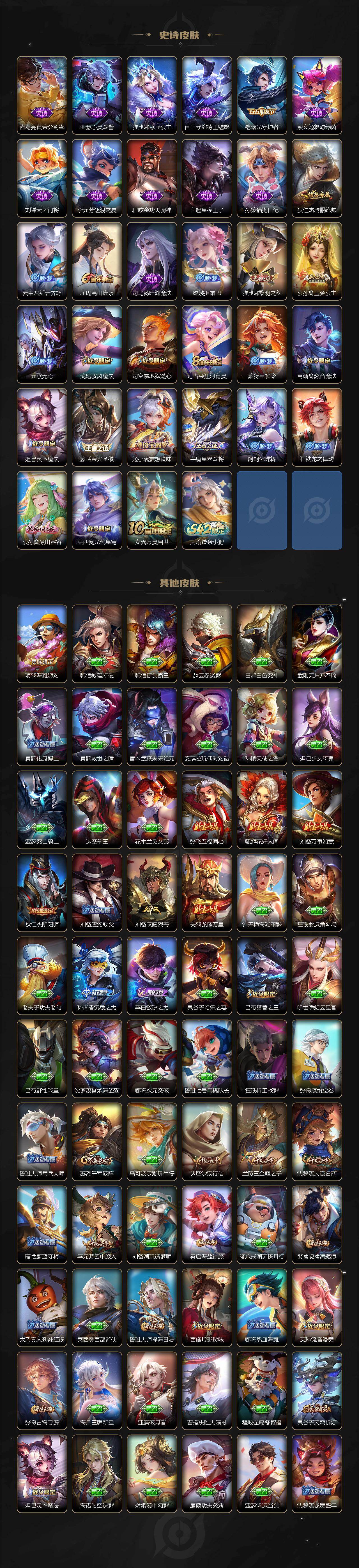 【wz180368】安卓q-v6-至尊星耀v段位-127英雄-182皮肤-5传说-50史诗 【英雄全皮】:孙权全皮,影全皮 【传说皮肤】:桑启鸣野蒿,澜逐花归海,镜炽阳神光,孙悟空零号赤焰,貂蝉猫影幻舞 【限定皮肤】:大乔绒语心约,姜子牙天穹之誓,狄仁杰阴阳师,赵云皇家上将,庄周高山流水,吕布猎兽之王,元歌无心,狄仁杰魔术师,达摩沙漠行僧,项羽海滩派对,兰陵王金庭之子,孙悟空零号赤焰,李元芳云中旅人,雅典娜黎明之约,苏烈千军破阵,公孙离玉兔公主,沈梦溪大漠名商,裴擒虎擒涛扼浪,云中君纤云弄巧,嫦娥拒霜思,西施玲珑珍味,鲁班大师探海日志,桑启海盐诗旅,戈娅驭风魔法,艾琳流音漫舞,司空震地狱燃心,阿古朵江河有灵,张良古海寻踪,蒙犽百解令,蒙恬荣光圣徽,高渐离燃音魔法,妲己灵卜魔法,鬼谷子天穹祈灯,姬小满妄想食味,沈梦溪龙舞盛年,刘邦剑破天穹,程咬金群星魔术团,周瑜熔金海岸 【赛季限定】:苏烈千军破阵,达摩沙漠行僧,兰陵王金庭之子,沈梦溪大漠名商,李元芳云中旅人,桑启海盐诗旅,裴擒虎擒涛扼浪,鲁班大师探海日志,张良古海寻踪,鬼谷子天穹祈灯,刘邦剑破天穹,姜子牙天穹之誓,东皇太一噬灭天穹,太乙真人谧流熔炉,钟馗虚灵犬护,雅典娜黎明之约,蒙恬荣光圣徽,牛魔星界战将 【战令限定】:吕布猎兽之王,戈娅驭风魔法,西施玲珑珍味,司空震地狱燃心,艾琳流音漫舞,高渐离燃音魔法,妲己灵卜魔法,莱西奥光弋星穹,明世隐往忆晖光,周瑜线条小狗 【史诗皮肤】:鲁班七号电玩小子,露娜紫霞仙子,赵云皇家上将,貂蝉圣诞恋歌,甄姬冰雪圆舞曲,王昭君偶像歌手,狄仁杰魔术师,宫本武藏鬼剑武藏,孙尚香水果甜心,嬴政暗夜贵公子,妲己魅力维加斯,墨子金属风暴,李白千年之狐,花木兰水晶猎龙者,刘邦德古拉伯爵,夏侯惇乘风破浪,小乔缤纷独角兽,兰陵王暗隐猎兽者,诸葛亮黄金分割率,亚瑟心灵战警,雅典娜冰冠公主,百里守约特工魅影,铠曙光守护者,蔡文姬舞动绿茵,刘禅天才门将,李元芳逐浪之夏,程咬金功夫厨神,白起星夜王子,孙策猫狗日记,狄仁杰鹰眼统帅,云中君纤云弄巧,庄周高山流水,司马懿暗渊魔法,嫦娥拒霜思,雅典娜黎明之约,公孙离玉兔公主,元歌无心,戈娅驭风魔法,司空震地狱燃心,阿古朵江河有灵,蒙犽百解令,妲己灵卜魔法,高渐离燃音魔法,蒙恬荣光圣徽,姬小满妄想食味,牛魔星界战将,阿轲化蝶舞,狂铁龙之律动,公孙离涂山容容,莱西奥光弋星穹,女娲万灵启世,周瑜线条小狗 【其他皮肤】:项羽海滩派对,韩信教廷特使,韩信街头霸王,赵云忍炎影,白起白色死神,武则天东方不败,扁鹊化身博士,扁鹊救世之瞳,宫本武藏未来纪元,安琪拉玩偶对对碰,孙膑天使之翼,妲己少女阿狸,亚瑟死亡骑士,达摩拳王,花木兰兔女郎,张飞五福同心,甄姬花好人间,刘备万事如意,狄仁杰阴阳师,刘备纽约教父,刘备汉昭烈帝,关羽龙腾万里,钟无艳海滩丽影,狂铁命运角斗场,老夫子功夫老勺,孙尚香沉稳之力,李白敏锐之力,鬼谷子幻乐之宴,吕布猎兽之王,明世隐虹云星官,吕布野性能量,沈梦溪鲨炮海盗猫,哪吒次元突破,鲁班七号黑桃队长,狂铁特工战影,张良缤纷绘卷,鲁班大师乓乓大师,苏烈千军破阵,马可波罗潮玩牛仔,达摩沙漠行僧,兰陵王金庭之子,沈梦溪大漠名商,蒙恬蔚蓝守将,李元芳云中旅人,刘备潮玩造梦师,桑启海盐诗旅,猪八戒潮玩探月行,裴擒虎擒涛扼浪,太乙真人劲辣红锅,莱西奥西部游侠,鲁班大师探海日志,西施玲珑珍味,哪吒热血海滩,艾琳流音漫舞,张良古海寻踪,海月王牌新星,亚连破局者,曹操决胜大满贯,程咬金暖冬絮语,鬼谷子天穹祈灯,妲己灵卜魔法,海诺时空谍影,嫦娥漠中幻影,廉颇功夫炙烤,亚瑟鸿运当头,沈梦溪龙舞盛年,刘邦剑破天穹,程咬金群星魔术团,大司命暗都幽影,姜子牙天穹之誓,周瑜熔金海岸,大乔绒语心约,东皇太一噬灭天穹,苍苍林狼骑,太乙真人谧流熔炉,影魅影绮裳,姜子牙星梦巡礼,明世隐景韶洛都,戈娅玫蓝誓约,钟馗虚灵犬护,张良灵野札记,露娜命运加冕,白起死霸装,云中君云械蓝图,莱西奥踏浪烽翎,明世隐往忆晖光,孙权径山谋武,艾琳鹤鸣心笺,蚩奼极光幻客,虞姬溯影追猎,妲己线条小狗,狄仁杰锦衣卫,张良一千零一夜,孙膑未来旅行,周瑜海军大将,刘邦圣殿之光,虞姬加勒比小姐,雅典娜战争女神,马可波罗激情绿茵,诸葛亮星航指挥官,黄忠芝加哥教父,干将莫邪第七人偶,铠龙域领主,百里守约绝影神呛,百里玄策威尼斯狂欢,梦奇美梦成真,女娲尼罗河女神,明世隐占星师,公孙离花间舞,弈星踏雪寻梅,米莱狄精准探案法,司马懿魇语军师,李信灼热之刃,上官婉儿修竹墨客,盘古创世神祝,瑶森,曜归虚梦演,马超幸存者,镜冰刃幻境,蒙恬秩序猎龙将,阿古朵熊喵少女,澜孤猎,司空震启蛰,云缨赤焰之缨,金蝉前尘,暃碧珀绯影 【内测皮肤】:狂铁特工战影 【