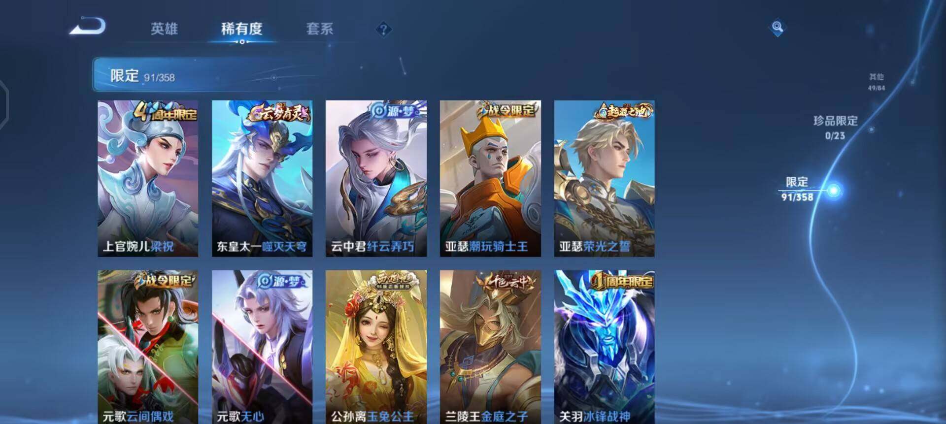 w14445,,可立即换绑无需挂单养号,,有限制令,,铭文满级,,典藏1,,传说14,,星传说1,,按键6,,,夺宝104,,安卓q-v7-永恒钻石iv段位-127英雄-268皮肤-1典藏皮肤-14传说-71史诗 【英雄全皮】:空空儿全皮,影全皮 【荣耀典藏】:伽罗最初的交响 【传说皮肤】:后羿神树通天,女娲愿照千秋盛,妲己愿照众生和,云缨幻光神呛,桑启鸣野蒿,橘右京枫霜尽,孙策挚爱之约,西施