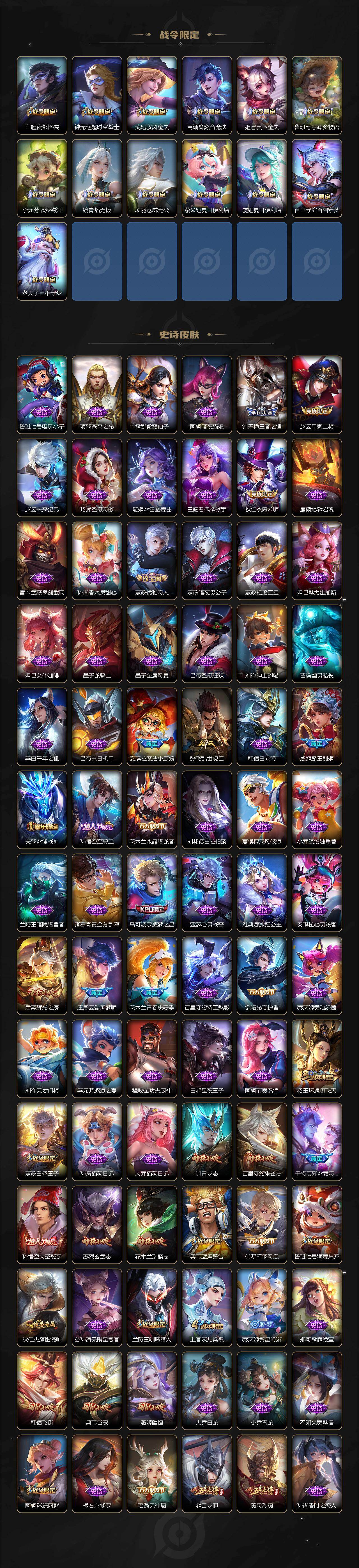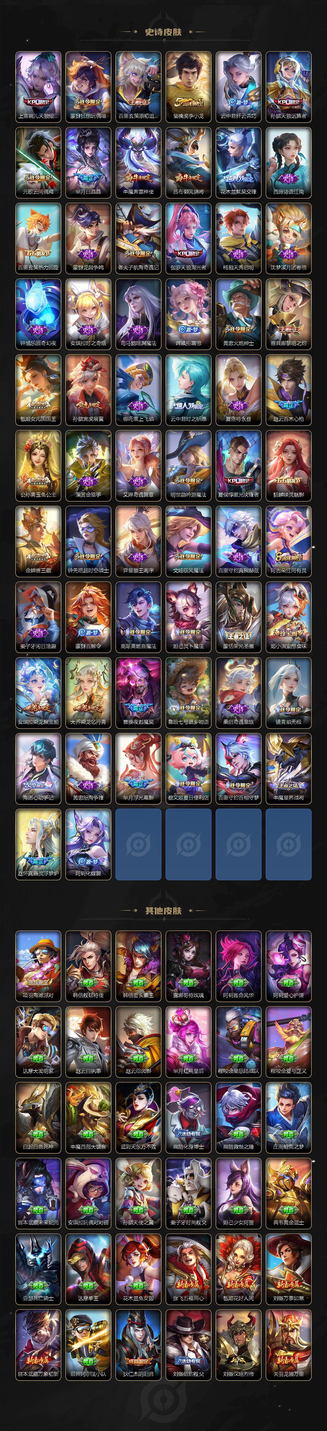 128英雄-459皮肤-贵族10/皮肤459/典藏14/传说54/史诗145/英雄128/嬴政全皮/阿轲全皮/姜子牙全皮/刘邦全皮/孙权全皮/金蝉全皮/戈娅全皮/影全皮/海诺全皮/武则天/全息碎影 孙悟空/倪克斯神谕 武则天/无限飓风号 夏侯惇/天鹅之梦 小乔/杀手不太冷 孙尚香/星空梦想 鲁班七号/大秦宣太后 芈月/活力突击 程咬金/鸣剑·曳影 李白/星域神启 诸葛亮/九霄神辉 花木兰/银白咏叹调 铠/弑呛猎影 韩