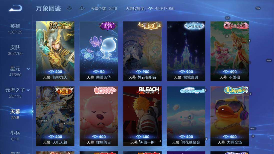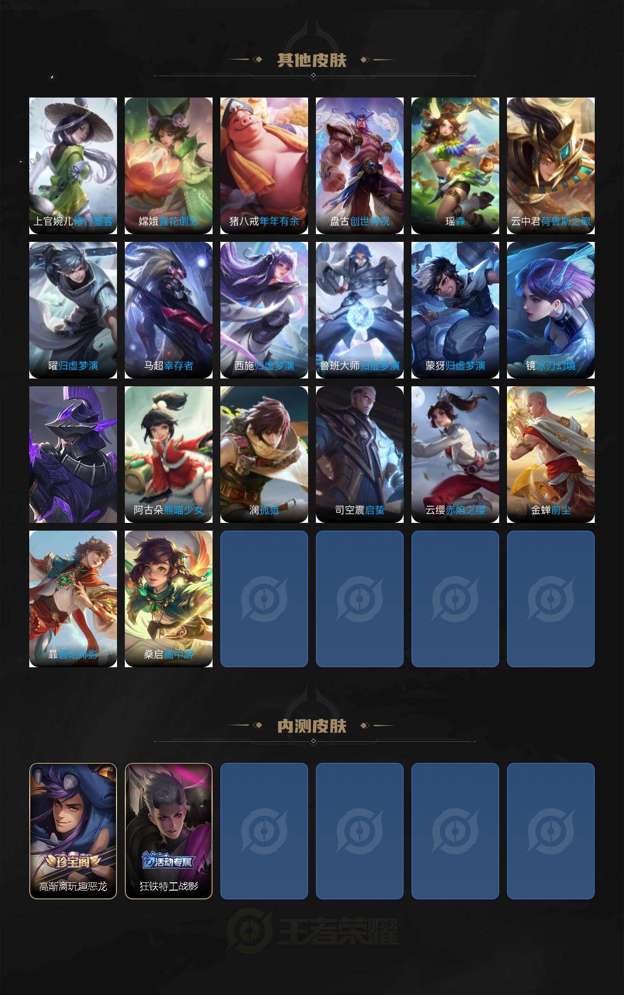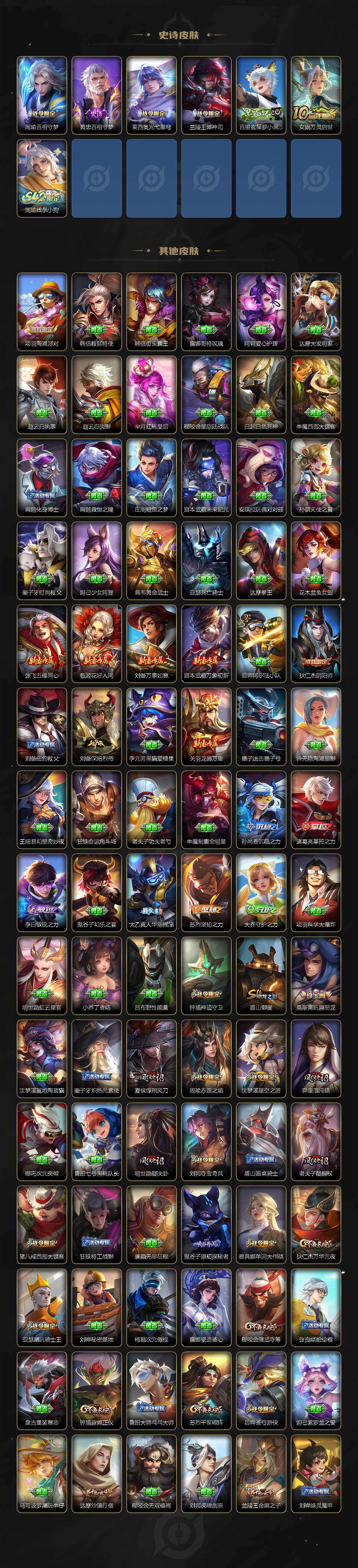 128英雄-362皮肤-贵族10/皮肤362/典藏11/传说30/史诗108/英雄128/刘邦全皮/李信全皮/武则天/全息碎影 孙悟空/倪克斯神谕 武则天/无限飓风号 夏侯惇/天鹅之梦 小乔/杀手不太冷 孙尚香/星空梦想 鲁班七号/大秦宣太后 芈月/活力突击 程咬金/鸣剑·曳影 李白/银白咏叹调 铠/拾光映像 瑶/神树通天 后羿/觅芳踪 艾琳/画中仙 干将莫邪/无限倾心 虞姬/无限倾心 项羽/炽翼辉光 伽罗/山海·苍