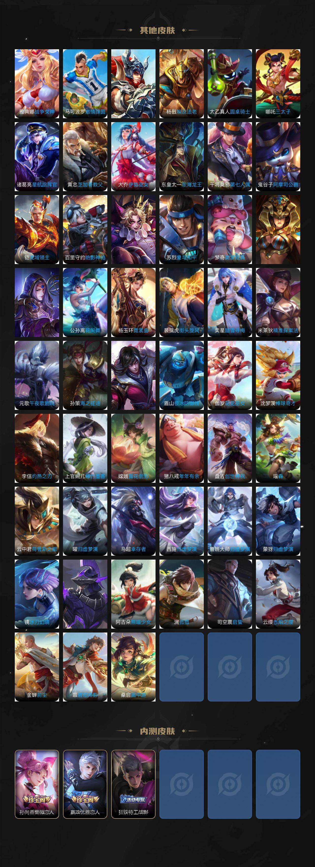128英雄-427皮肤-贵族10/皮肤427/典藏4/传说39/史诗129/英雄128/元歌全皮/孙权全皮/朵莉亚全皮/鬼谷子全皮/狂铁全皮/李信全皮/大司命全皮/马超全皮/司空震全皮/空空儿全皮/影全皮/天鹅之梦 小乔/鸣剑·曳影 李白/九霄神辉 花木兰/弑呛猎影 韩信/青丘·九尾 妲己/碎月剑心 李白/群星魔术团 韩信/孙悟空无相/器灵·落星盏 嫦娥/神树通天 后羿/诡秘之主 元歌/死亡执政官 大司命/愿照·山河