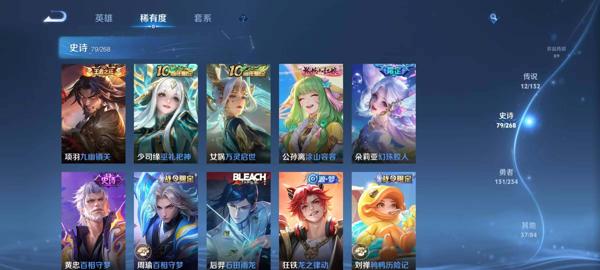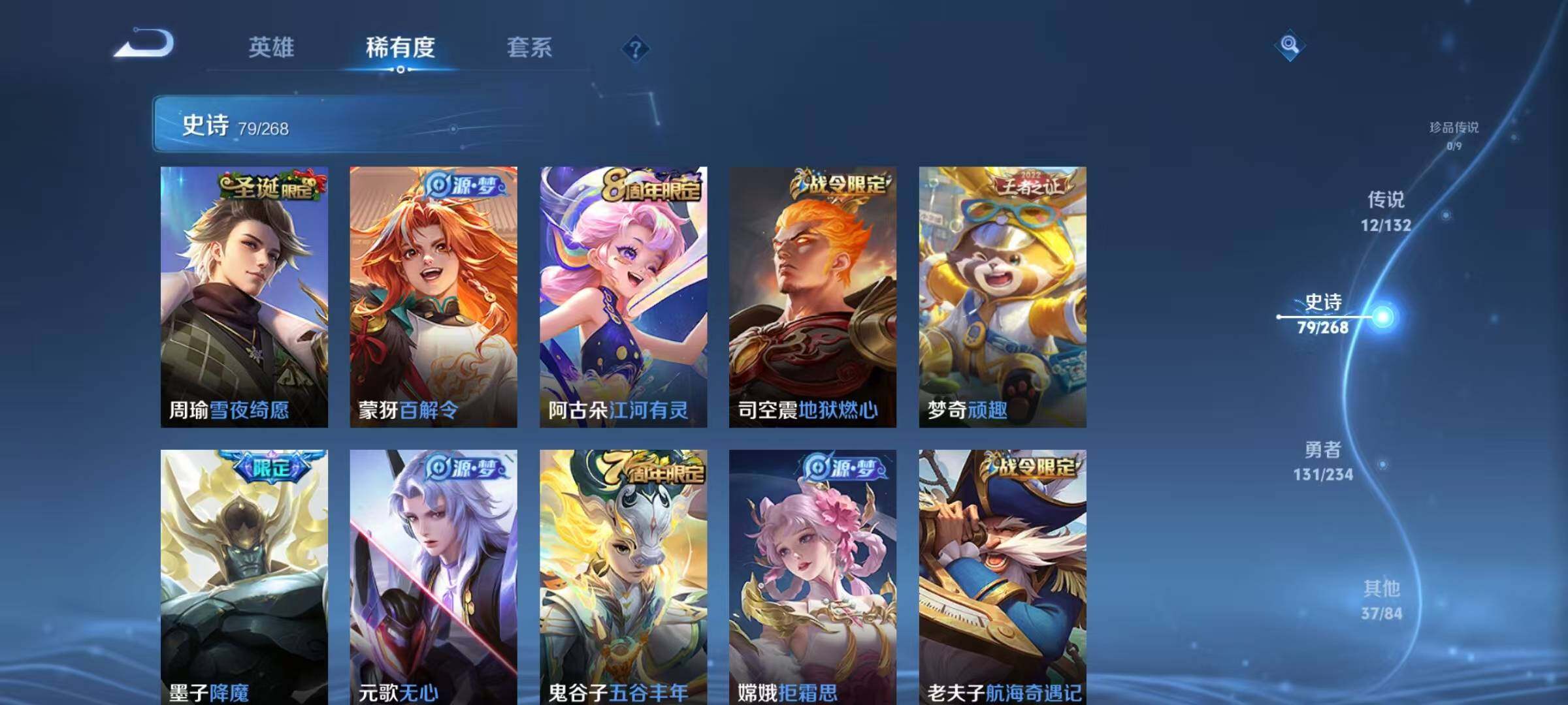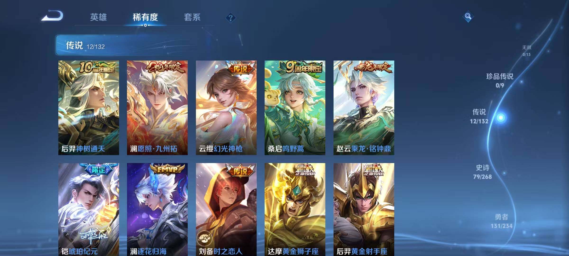 【4330】安卓q-v7-永恒钻石i段位-127英雄-260皮肤-1典藏皮肤-12传说-79史诗 【荣耀典藏】:铠银白咏叹调 【传说皮肤】:后羿神树通天,澜愿照九州拓,云缨幻光神呛,桑启鸣野蒿,赵云乘龙铭钟鼎,铠琥珀纪元,澜逐花归海,刘备时之恋人,达摩黄金狮子座,后羿黄金射手座,宫本武藏地狱之眼,孙悟空地狱火 【限定皮肤】:姜子牙天穹之誓,李白谪仙醉月,狄仁杰阴阳师,赵云皇家上将,墨子神迹守卫