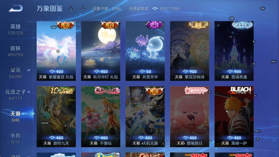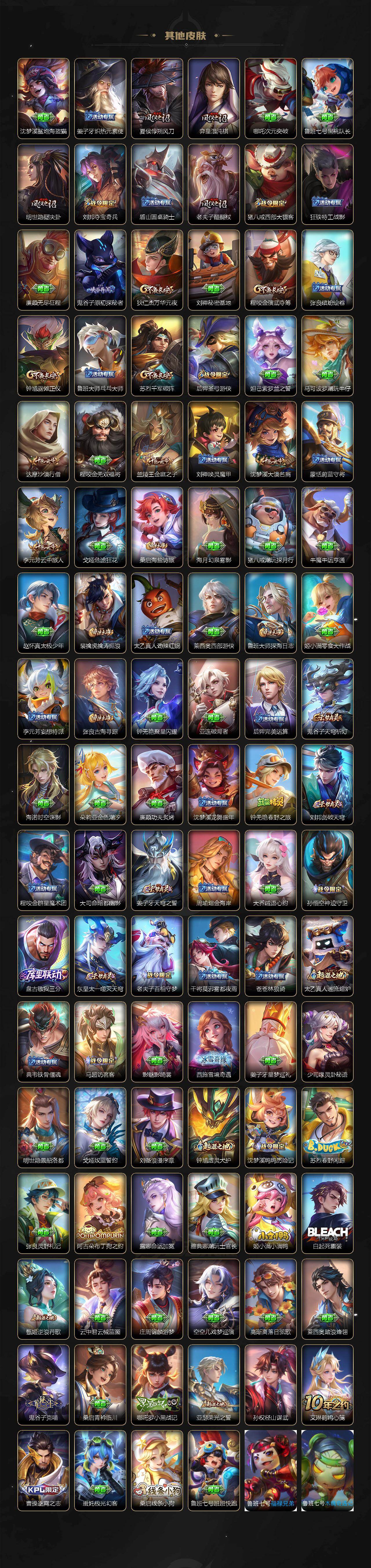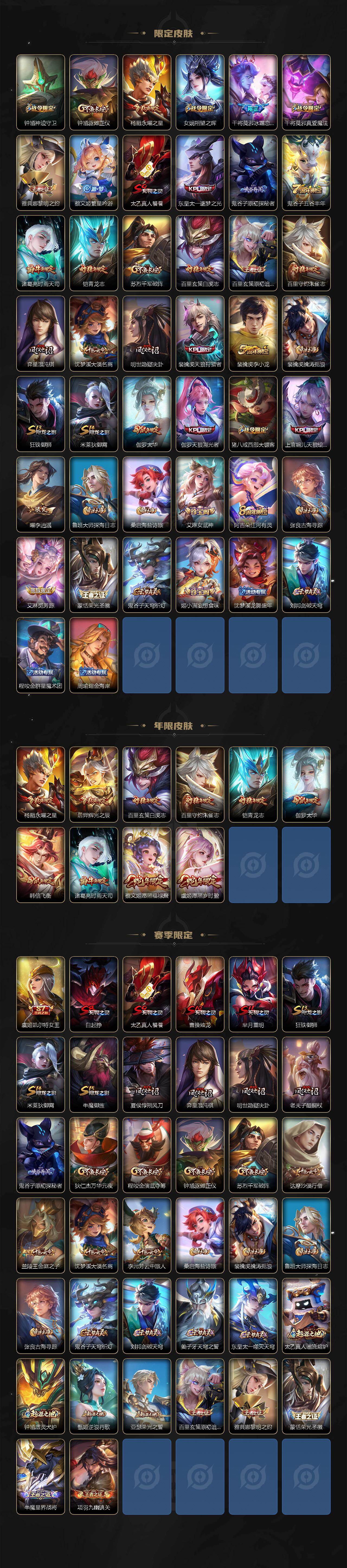 129英雄-405皮肤-贵族10/皮肤405/典藏11/传说37/史诗108/英雄129/刘禅全皮/孙权全皮/橘右京全皮/钟馗全皮/空空儿全皮/影全皮/武则天/全息碎影 孙悟空/倪克斯神谕 武则天/无限飓风号 夏侯惇/天鹅之梦 小乔/杀手不太冷 孙尚香/星空梦想 鲁班七号/鸣剑·曳影 李白/星域神启 诸葛亮/九霄神辉 花木兰/赤影疾锋 关羽/拾光映像 瑶/兔狲·蓬尾 张飞/大耳狗之梦 瑶/神树通天 后羿/续相思 西施