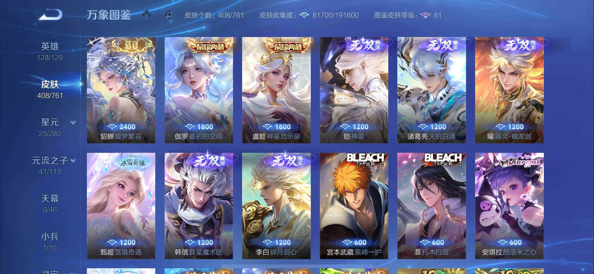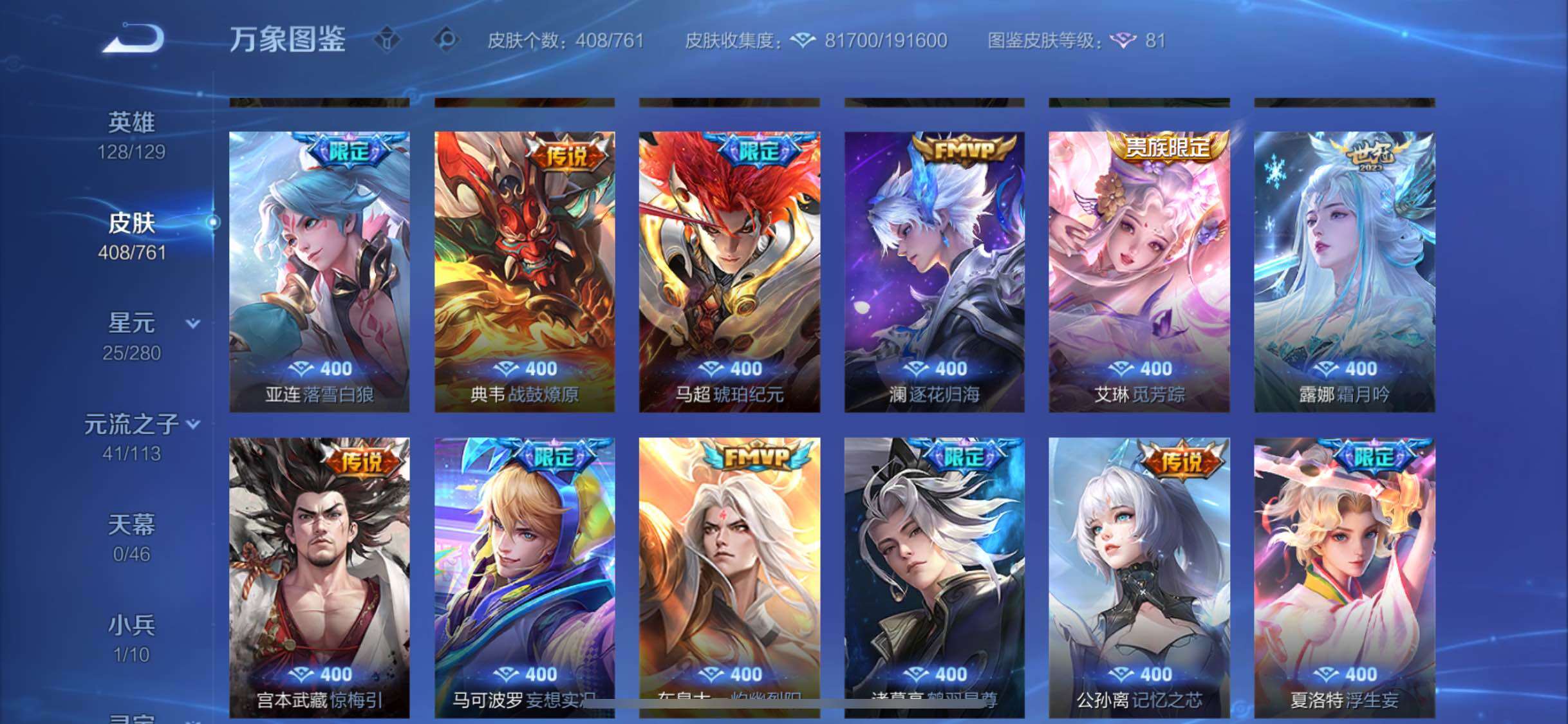 【精品v11·6w8流光积分·馥梦繁花·2典藏·6无双·7珍品·神罪·碎月剑心·器灵螭龙剑·大耳狗之梦·酷洛米之心·全皮宫本武藏·全皮马超·蛇年全限定·霜北刀·李·白虎志·可二次】w14540-苹果q-128英雄-408皮肤-9王者印记-240铭文-贵族积分25w【贵族11】【2典藏·1珍品无双·6无双·7珍品·2星传说·60传说·69按键·239个性戳戳】【因赛季更新游戏段付以上号为