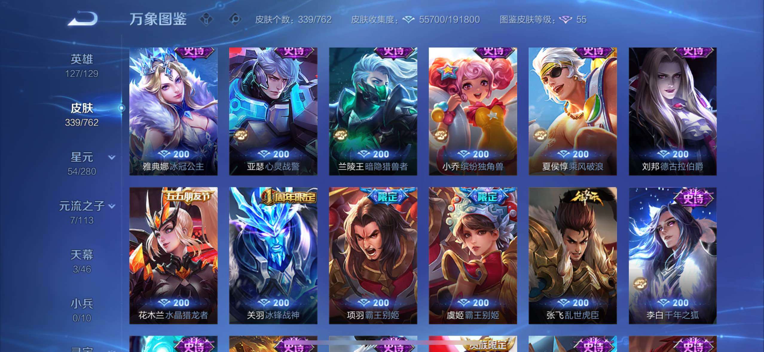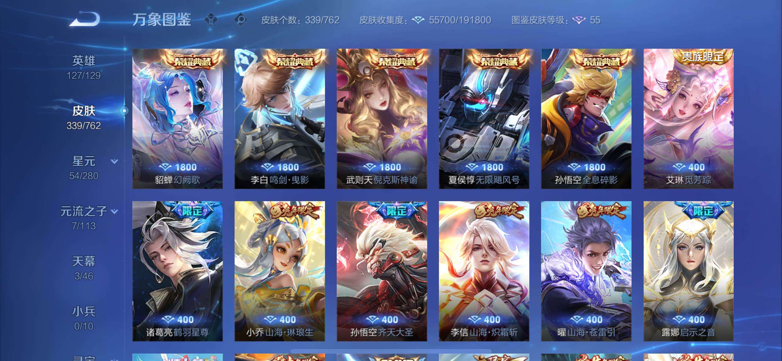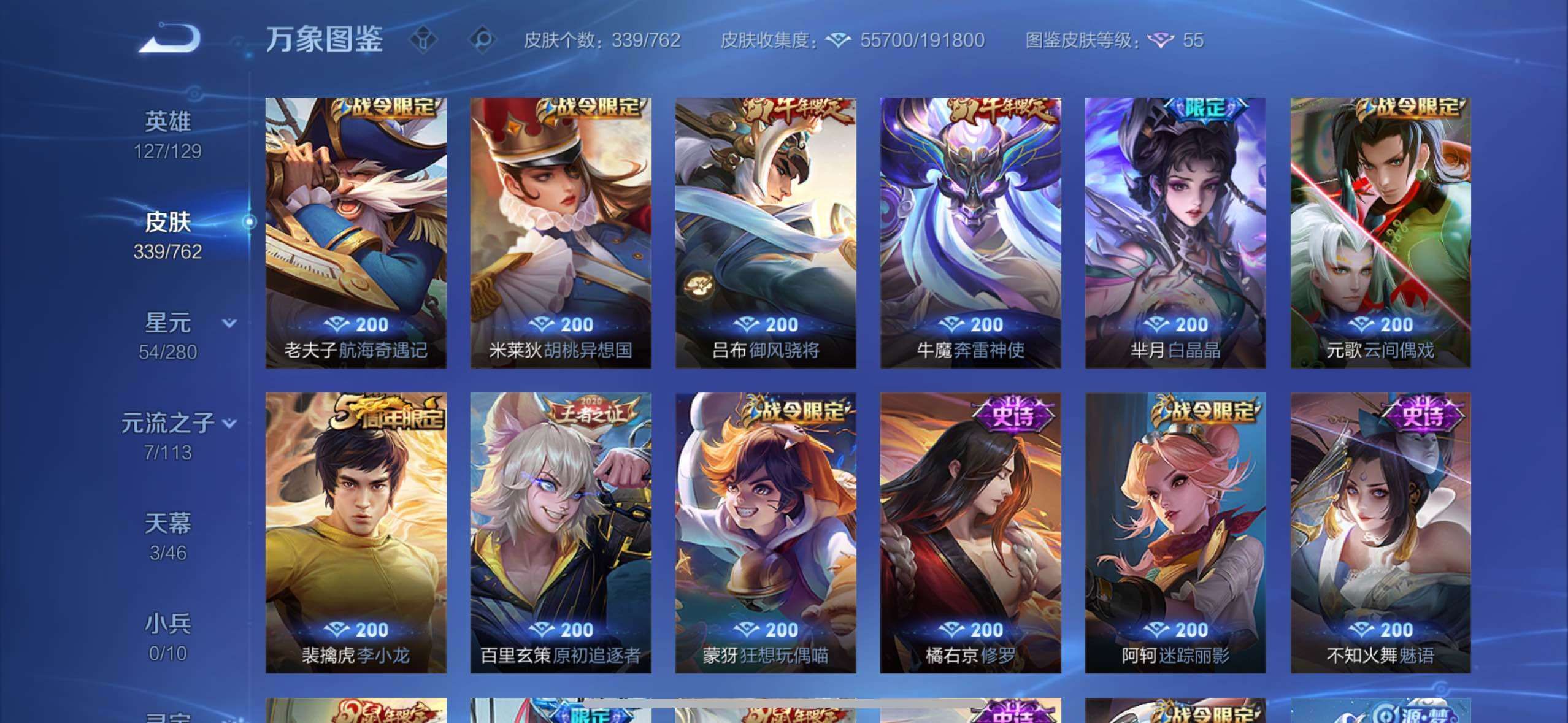 【高性价比v10·背包1水晶·小国标宫本·6典藏·紫瑶·花朝如约天幕·全息碎影·倪克斯神谕·无限飓风号·鸣剑曳影·幻阙歌·齐天大圣·鹤羽星尊·曜山海苍雷引·寅虎赤拳·游龙清影·李·祈雪灵祝·武圣·可二次】w12520-苹果wx-127英雄-339皮肤-13王者印记-300铭文-贵族积分20w【贵族10】【6典藏·5星传说·25传说·3天幕·2按键·455个性戳戳】【因赛季更新游戏段付以
