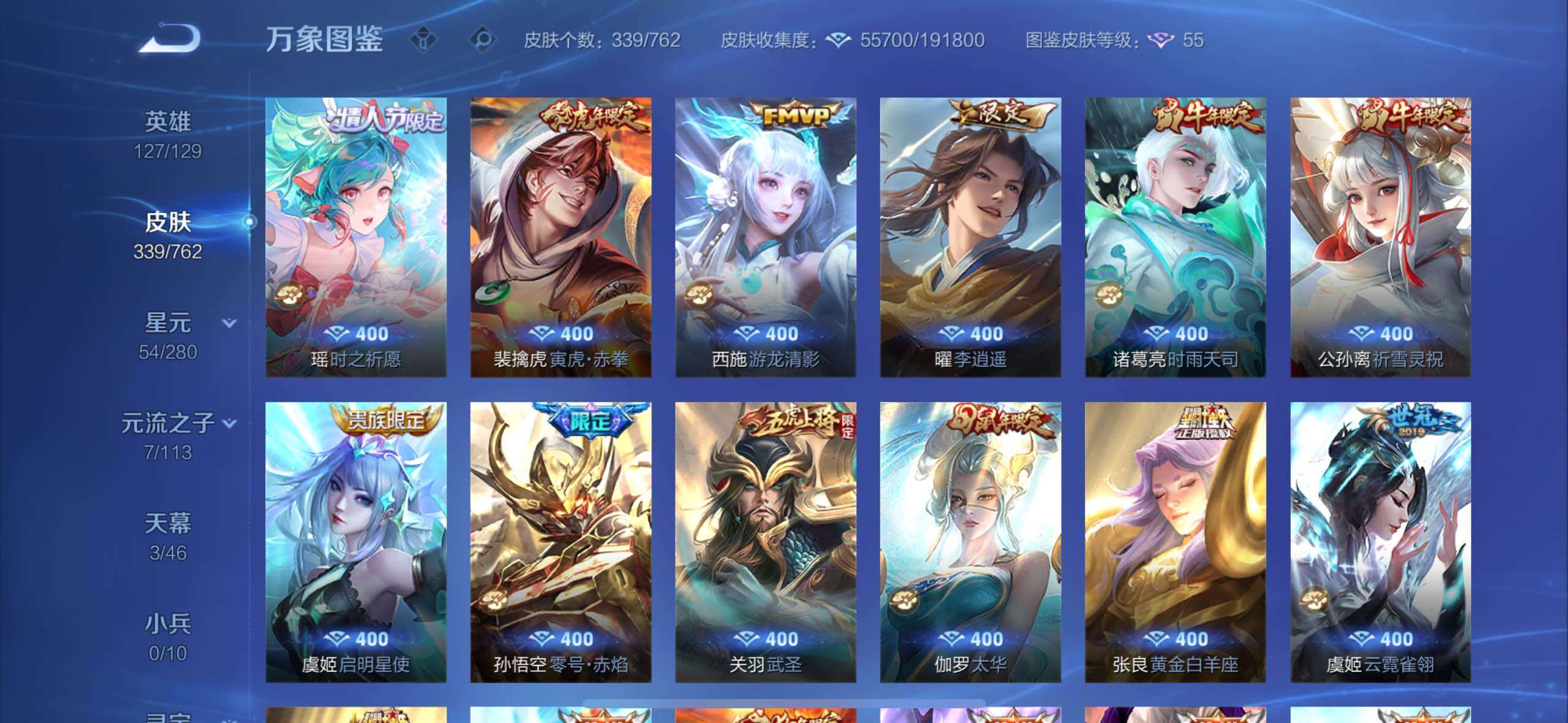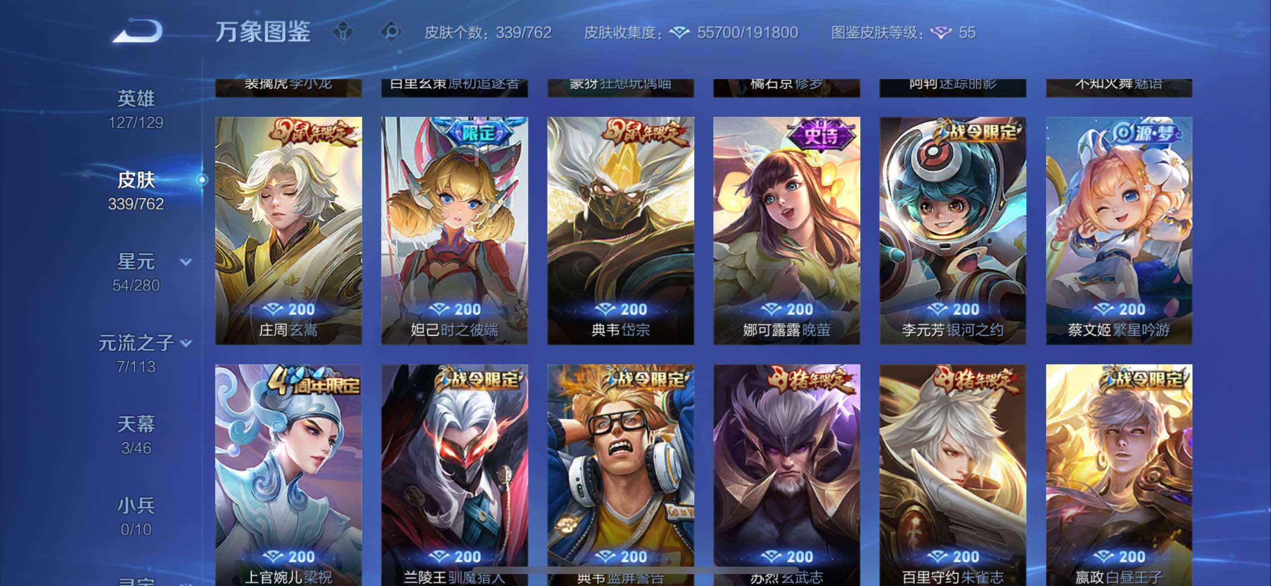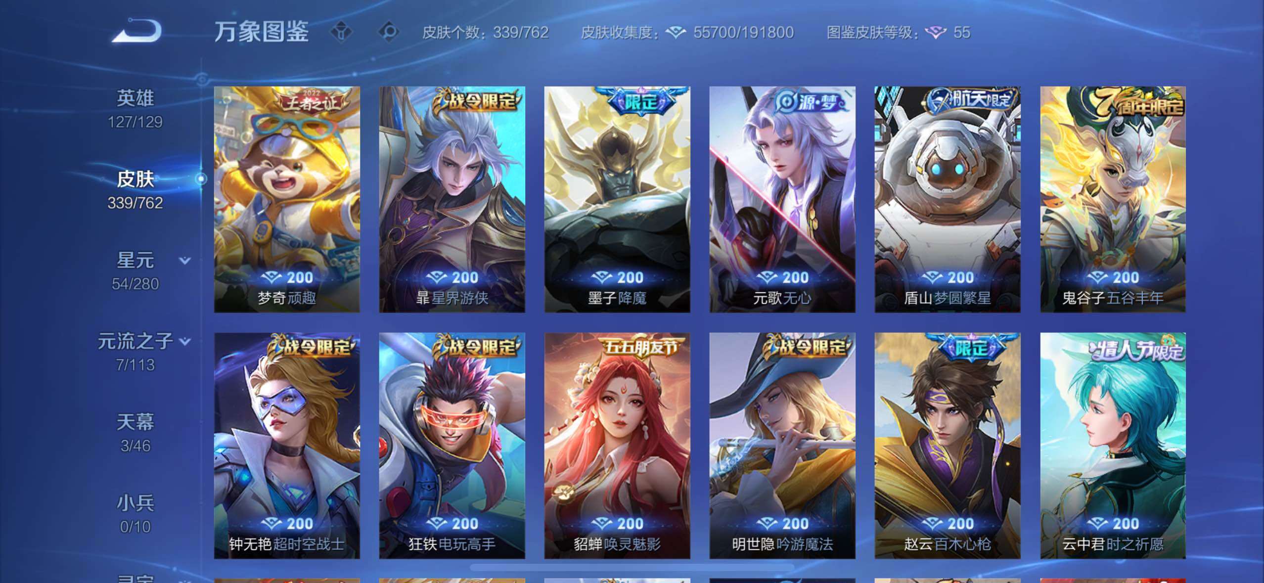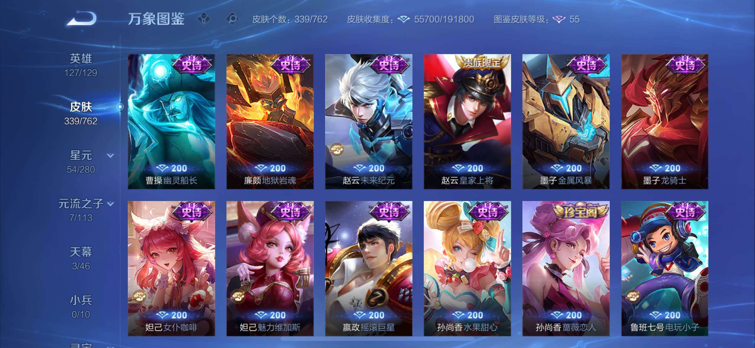 【高性价比v10·背包1水晶·小国标宫本·6典藏·紫瑶·花朝如约天幕·全息碎影·倪克斯神谕·无限飓风号·鸣剑曳影·幻阙歌·齐天大圣·鹤羽星尊·曜山海苍雷引·寅虎赤拳·游龙清影·李·祈雪灵祝·武圣·可二次】w12520-苹果wx-127英雄-339皮肤-13王者印记-300铭文-贵族积分20w【贵族10】【6典藏·5星传说·25传说·3天幕·2按键·455个性戳戳】【因赛季更新游戏段付以