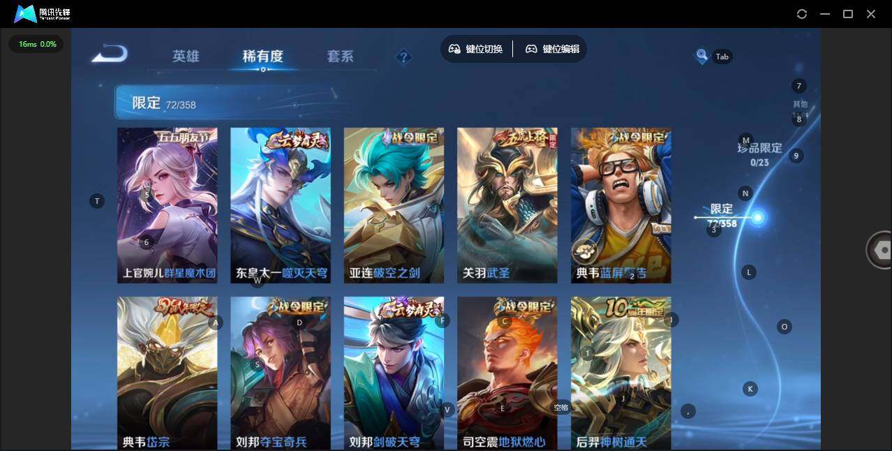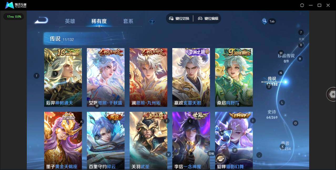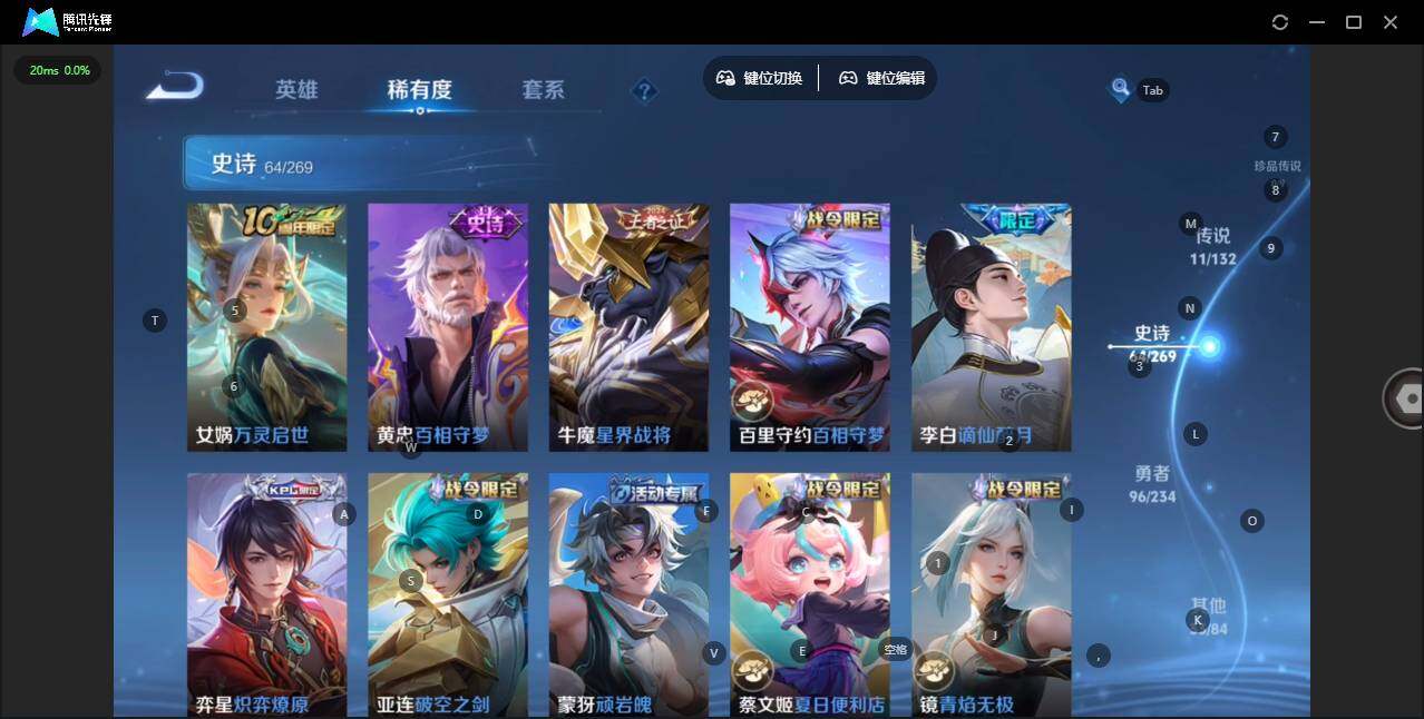 128英雄-206皮肤-贵族等级: v7 英雄数: 128 皮肤数: 206 荣耀水晶: 星域神启 传说皮: 黄金射手座猫影幻舞一念神魔碎云黄金天蝎座玄雷天君神树通天 限定皮: 李小龙武圣岱宗乒乒小将逐梦之影青龙志高山流水孙行者鸣野蒿愿照·千秋盛愿照·九州拓