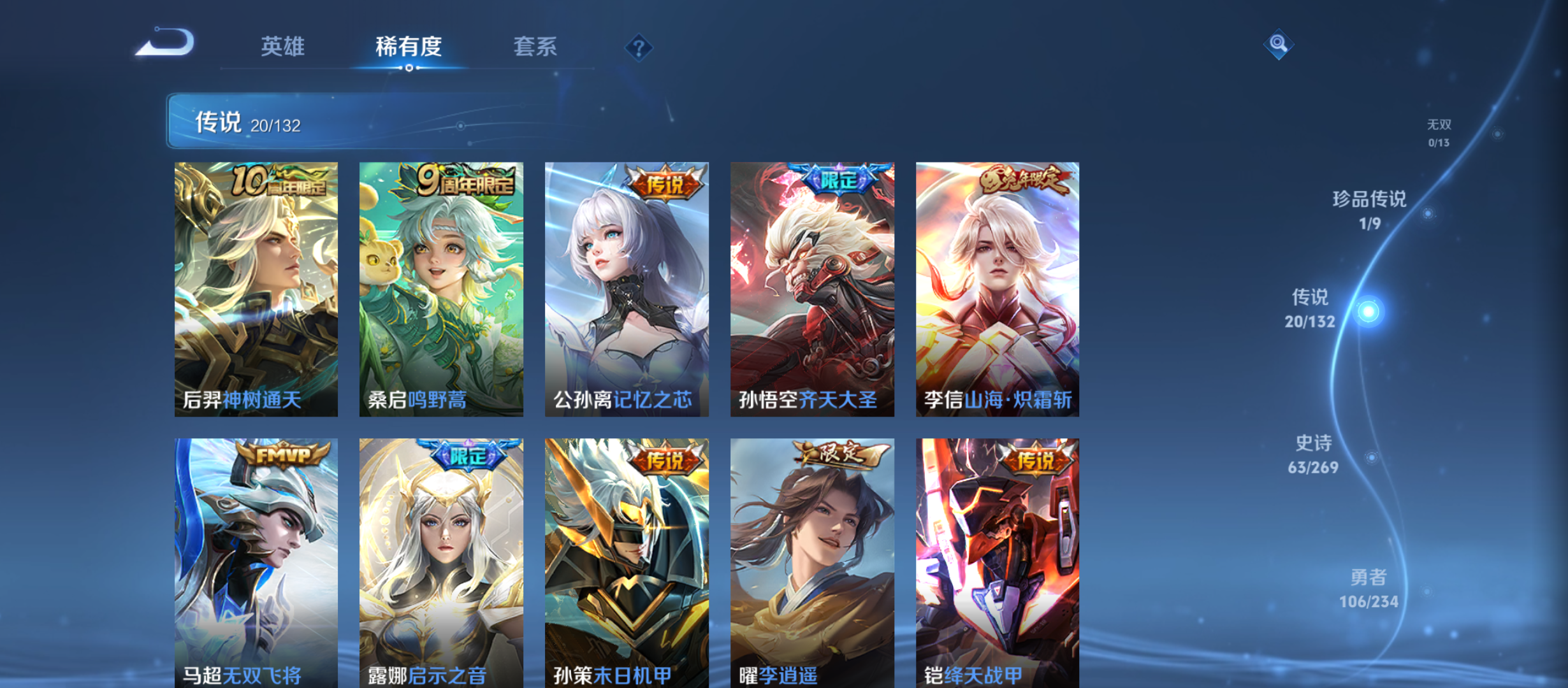txwz30065 v8 224皮 1典藏 武则天 1珍品 兔狲·蓬尾 20传说 神树通天,黄金狮子座,记忆之芯,久胜战神,鸣野蒿,山海·炽霜斩,齐天大圣,启明星使,李 ,海洋之心,冠军飞将,无双飞将,黄金白羊座,绛天战甲,猫影幻舞,末日机甲,武陵仙君,启示之音,云鹰飞将,一念神魔 62史诗