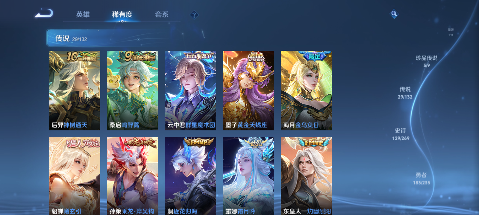 【王者荣耀】【lywz29799】珍品无双0 典藏3 无双1 珍品传说3 传说29 史诗128 英雄127 皮肤428 贵族9级 荣耀典藏:神鉴启示录|银白咏叹调|弑呛猎影__无双皮肤:无相__珍品传说:江户川柯南|怪盗基德|朽木白哉__传说皮肤:鸣野蒿|无尽星芒|无双飞将|绛天战甲|炽阳神光|启明星使|地狱之眼|地狱火|仲夏夜之梦|云霓雀翎|狄仁杰-超时空战士|黄金射手座|黄金白羊座|刘备-时之恋人|一念神魔|冠军飞将|游龙清影|淬星耀世|黄金天蝎座|金乌负日|怒海麟威|霜月吟|貂蝉-曦玄引|逐花归海|乘龙·淬吴钩|山海·炽霜斩|云中君-群星魔术团|灼幽烈阳|神树通天__稀有限定:奔雷神使|至尊宝|青龙志|大圣娶亲|岱宗|李小龙|神器·万象笔|时之彼端|狮舞东方|拒霜思|暗影游猎|百解令|超元猎域|大漠名商|地狱燃心|繁星吟游|古海寻踪|海滩派对|海盐诗旅|幻夜卜梦|皇家上将|混沌棋|剑破天穹|江河有灵|降魔|金庭之子|决胜骁骑|狂想玩偶喵|蓝屏警告|黎明之约|魔法小厨娘|魔术师|匿光侦查者|奇幻香踪|擒涛扼浪|青焰无极|穷奇|驱傩正仪|燃音魔法|沙漠行僧|朔风刀|探海日志|饕餮|醍醐杖|天穹祈灯|玩趣恶龙|万华元夜|妄想食味|无心|五谷丰年|纤云弄巧|星界游侠|星空之诺|演武夺筹|疑决卦|阴阳师|驭风魔法|御旌|御銮|御狮|云端筑梦师|云间偶戏|暗夜贵公子|暗隐猎兽者|暗渊魔法|白龙吟|白蛇|缤纷独角兽|冰冠公主|冰雪圆舞曲|苍穹之光|乘风破浪|大乔-猫狗日记|德古拉伯爵|地狱岩魂|电玩小子|伽罗-琥珀纪元|功夫厨神|鬼剑武藏|唤灵魅影|黄金分割率|箭羽风息|节奏热浪|金属风暴|乐园奇幻夜|李元芳-蔬乡物语|龙骑士|吕布-末日机甲|魅力维加斯|女仆咖啡|偶像歌手|青蛇|热力回旋|赏金猎手|上官婉儿-群星魔术团|绅士熊喵|圣诞狂欢|圣诞恋歌|诗语江南|鲁班七号-蔬乡物语|水果甜心|水晶猎龙者|孙策-猫狗日记|天才门将|天秀·启明|晚萤|赵云-未来纪元|星夜王子|摇滚巨星|鹰眼统帅|永昼|幽灵船长|遇见神鹿|月团寄思|至美·乘鲤谣|钟无艳-超时空战士|逐浪之夏|紫霞仙子|百里守约-百相守梦|老夫子-百相守梦|陌上桑|谪仙醉月|噬灭天穹|敬我三分|炽弈燎原|破空之剑|东方月初|蔡文姬-夏日便利店|虞姬-夏日便利店|天穹之誓|浮光幕影|怒海争锋|安琪拉-时之奇旅|修罗|曙光守护者|心灵战警|千年之狐|关羽-百相守梦|孙尚香-时之恋人|无限星赏官|舞动绿茵|特工魅影|心灵骇客|星界战将|谧流熔炉|御霄|狰|原初探秘者|重明|云中旅人|玲珑珍味|单词大作战|孙悟空-神迹守卫|达摩-星际陆战队|流音漫舞|暖冬·兔眠|灵卜魔法|苍威无极|圣弓游侠|落雪兰心|死神来了|刘禅-鸭鸭历险记|沈梦溪-鸭鸭历险记|灵蛊蚀心|龙之律动|虚灵犬护|石田雨龙|逆浪荇歌|孙策-百相守梦|周瑜-百相守梦|戍鼓铭心|幻珠鲛人|黄忠-百相守梦|织梦人|涂山容容|光弋星穹|往忆晖光|百里玄策-罗小黑战记|荣光之誓|巫礼祀神|鹤鸣心笺|九幽镇关|小乔-线条小狗|周瑜-线条小狗__优质皮肤:尼罗河女神|一千零一夜|创世神祝|年年有余|埃及法老|孤猎|木偶奇遇记|熊喵少女|午夜歌剧院|露花倒影|未来旅行|激情绿茵|海之征途|天启骑士|碧珀绯影|秩序猎龙将|锦衣卫|冰刃幻境|森|超能战警|英喵野望|维京掠夺者|海军大将|绯红之刃|踏雪寻梅|启蛰|战争骑士|伊势巫女|画中游|生化警戒|威尼斯狂欢|第七人偶|潮流仙人|芝加哥教父|街头旋风|绝影神呛|地府判官|荷鲁斯之眼|幸存者|赤焰之缨|福禄兄弟|隐刃|前尘|特种部队|三太子|精灵王|剑舞者|范海辛|星航指挥官|龙域领主|爱与和平|占星师|花间舞|魇语军师|极冰防御线|花见巫女|棒球奇才|东海龙王|蔷薇王座|灼热之刃|精准探案法|圣殿之光|帝国元帅|战争女神|霓裳曲|加勒比小姐|阿摩司公爵|异域舞娘|精灵公主|修竹墨客|万圣前夜|怪诞之夜|动物派对|绒语心约|长夏之忆|破阵·退雄兵|异域游侠|暗都幽影|功夫炙烤|幻夜行动|聚星闪耀|潮玩探月行|瓷语鉴心|秘密基地|次元突破|鲨炮海盗猫|野性能量|丁香结|奇妙博物学|虹云星官|守护之力|坚韧之力|幻乐之宴|功夫老勺|命运角斗场|幻想奇妙夜|海滩丽影|阿尔法小队|兔女郎|死亡骑士|黄金武士|少女阿狸|天使之翼|玩偶对对碰|宫本武藏-未来纪元|红桃皇后|忍·炎影|爱心护理|街头霸王|教廷特使|鸿运当头|金色潮汐|时空谍影|决胜大满贯|破局者|零食大作战|西部游侠|太极少年|牛运亨通|幻泉雾影|潮玩造梦师|危途狂花|契约魔法|紫罗兰之誓|重装意志|次元傲视|无尽征程|黑桃队长|幽兰居士|拳王|时尚教父|救世之瞳|白色死神|程咬金-星际陆战队|白执事|大发明家|哥特玫瑰|魅影绮裳|西施-雪境奇遇|星梦巡礼|灵卦秘语|猪八戒-西部大镖客|缤纷绘卷|掌控之力|雾都夜雨|逐霄战戟|纽约教父|龙腾万里|乱世虎臣|经纬探寻者|敏锐之力|西施-归虚梦演|孙悟空-西部大镖客|牛魔-西部大镖客|鲁班大师-归虚梦演|龙舞盛年|汉昭烈帝|乓乓大师|五福同心|盾山-圆桌骑士|蒙犽-归虚梦演|万事如意|曜-归虚梦演|唤灵魔甲|太乙真人-圆桌骑士|沉稳之力|程咬金-群星魔术团|完美运算|化身博士|花好人间|熔金海岸|春野之旅|潮玩骑士王|万象初新|潮玩骑兵|蔚蓝守将|劲辣红锅|特工战影|炽热元素使|妄想特派|秘证寻踪|春野闲踪|灵野札记|命运加冕|小满鸭|死霸装|无双福将|踏浪烽翎|云械蓝图|戏梦巡演|落日弦歌|克喵|青衿临川|哪吒-罗小黑战记|张良-罗小黑战记|径山谋武|逐霄