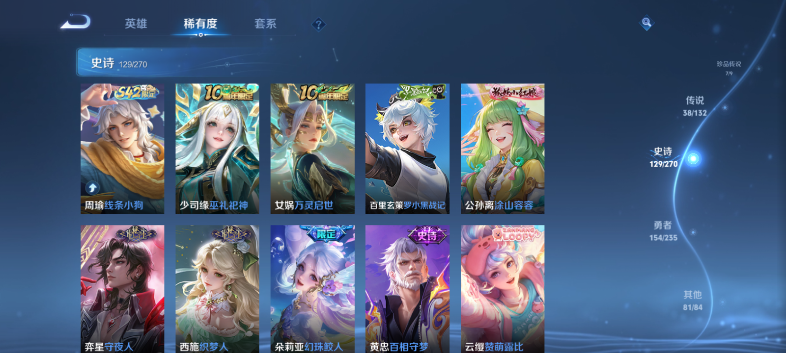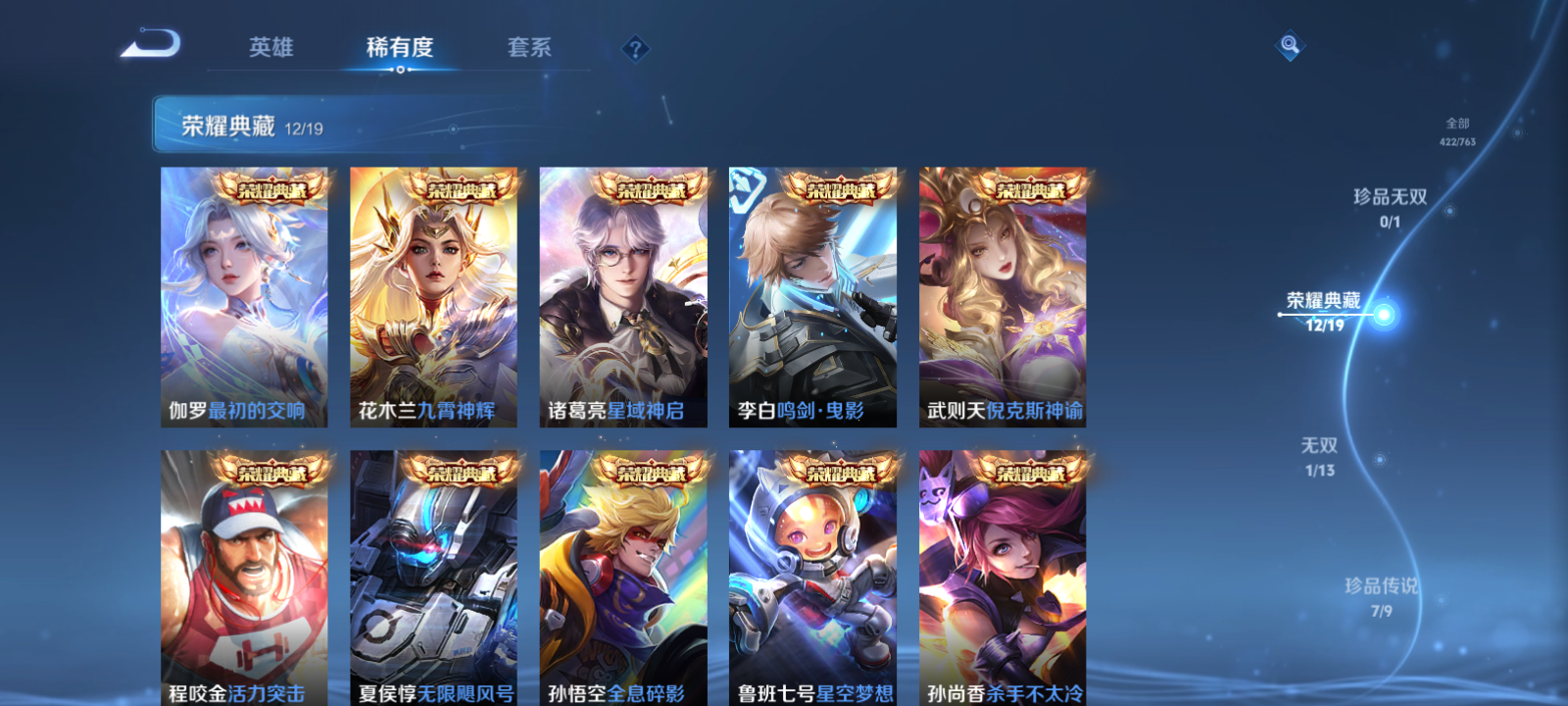 【王者荣耀】【lywz29771】珍品无双0 典藏13 无双1 珍品传说7 传说38 史诗127 英雄127 皮肤422 贵族10级 荣耀典藏:无限飓风号|全息碎影|天鹅之梦|大秦宣太后|杀手不太冷|武则天|活力突击|九霄神辉|鸣剑·曳影|倪克斯神谕|星空梦想|星域神启|最初的交响__无双皮肤:神罪__珍品传说:孙策-时之奇旅|器灵·落星盏|兔狲·蓬尾|大耳狗之梦|酷洛米之心|朽木白哉|黑崎一护__传说皮肤:启明星使|胖达荣荣|地狱之眼|地狱火|海洋之心|仲夏夜之梦|云霓雀翎|黄金狮子座|狄仁杰-超时空战士|黄金射手座|黄金白羊座|猫影幻舞|刘备-时之恋人|一念神魔|游龙清影|记忆之芯|孙尚香-末日机甲|白虎志|霜月吟|妄想实况|武圣|觅芳踪|幻光神呛|愿照·岁时盈|愿照·山河定|愿照·九州拓|愿照·众生和|愿照·福禄聚|星之鸣奏|愿照·千秋盛|千劫归真|云诺千山|九山相柳|死亡执政官|千山共赴|神树通天|纵目迁山|长夜焕生__稀有限定:奔雷神使|白晶晶|至尊宝|虞姬-霸王别姬|大圣娶亲|纯白花嫁|玄嵩|蔷薇恋人|奇迹圣诞|蜜橘之夏|虎魄|神威|烈魂|龙胆|李小龙|时之彼端|狮舞东方|暗影游猎|冰锋战神|冰霜恋舞曲|冰霜神祇|大漠名商|繁星吟游|凤凰于飞|古海寻踪|海滩派对|海盐诗旅|航海奇遇记|胡桃异想国|华丽摇滚|皇家上将|混沌棋|金庭之子|狂想玩偶喵|蓝屏警告|黎明之约|迷踪丽影|魔术师|女武神|千军破阵|擒涛扼浪|青焰无极|驱傩正仪|荣光圣徽|沙漠行僧|死亡摇滚|探海日志|醍醐杖|天狼绘梦者|天狼溯光者|天狼运算者|天穹祈灯|阿古朵-顽趣|万华元夜|妄想食味|无心|纤云弄巧|项羽-霸王别姬|星空之诺|演武夺筹|疑决卦|阴阳师|银河之约|御狮|原初追逐者|云端筑梦师|云间偶戏|逐梦之星|暗夜贵公子|暗夜猫娘|暗隐猎兽者|白龙吟|白蛇|缤纷独角兽|冰冠公主|冰雪圆舞曲|苍穹之光|乘风破浪|大乔-猫狗日记|德古拉伯爵|地狱岩魂|电玩·爆裂旋风|电玩小子|功夫厨神|鬼剑武藏|黄金分割率|箭羽风息|节奏热浪|金属风暴|乐园奇幻夜|龙骑士|吕布-末日机甲|魅力维加斯|魅语|梦奇-顽趣|女仆咖啡|偶像歌手|青蛇|绅士熊喵|圣诞狂欢|圣诞恋歌|水果甜心|水晶猎龙者|孙策-猫狗日记|天才门将|天秀·启明|完美假期|晚萤|赵云-未来纪元|星夜王子|摇滚巨星|鹰眼统帅|幽灵船长|遇见神鹿|至美·乘鲤谣|逐浪之夏|紫霞仙子|东方月初|涂山红红|修罗|曙光守护者|心灵战警|千年之狐|孙尚香-时之恋人|无限星赏官|舞动绿茵|特工魅影|心灵骇客|茶境仙|谧流熔炉|器灵·浮梦炉|化蝶舞|狰|烛龙|原初探秘者|云中旅人|单词大作战|朔望之晖|钟馗-神迹守卫|达摩-星际陆战队|访茗客|暖冬·兔眠|灵卜魔法|夺宝奇兵|墨子-神迹守卫|死神来了|仙境爱丽丝|刘禅-鸭鸭历险记|沈梦溪-鸭鸭历险记|藏狐·褐绒|雪豹·霜爪|龙之律动|布丁狗之约|虚灵犬护|布丁狗之誓|石田雨龙|逆浪荇歌|孙策-百相守梦|周瑜-百相守梦|戍鼓铭心|赞萌露比|幻珠鲛人|黄忠-百相守梦|织梦人|守夜人|涂山容容|百里玄策-罗小黑战记|荣光之誓|万灵启世|巫礼祀神|鹤鸣心笺|周瑜-线条小狗__优质皮肤:尼罗河女神|一千零一夜|创世神祝|年年有余|埃及法老|孤猎|木偶奇遇记|熊喵少女|午夜歌剧院|露花倒影|未来旅行|激情绿茵|海之征途|天启骑士|碧珀绯影|秩序猎龙将|锦衣卫|冰刃幻境|森|超能战警|英喵野望|维京掠夺者|海军大将|绯红之刃|踏雪寻梅|启蛰|战争骑士|伊势巫女|画中游|生化警戒|威尼斯狂欢|第七人偶|潮流仙人|芝加哥教父|街头旋风|绝影神呛|地府判官|荷鲁斯之眼|幸存者|赤焰之缨|福禄兄弟|隐刃|前尘|特种部队|三太子|精灵王|剑舞者|范海辛|星航指挥官|龙域领主|爱与和平|占星师|花间舞|魇语军师|极冰防御线|花见巫女|棒球奇才|东海龙王|蔷薇王座|灼热之刃|精准探案法|圣殿之光|帝国元帅|神奇女侠|战争女神|霓裳曲|加勒比小姐|阿摩司公爵|异域舞娘|精灵公主|修竹墨客|万圣前夜|功夫炙烤|聚星闪耀|潮玩探月行|瓷语鉴心|秘密基地|次元突破|鲨炮海盗猫|野性能量|丁香结|奇妙博物学|虹云星官|科学大爆炸|守护之力|坚韧之力|幻乐之宴|功夫老勺|命运角斗场|幻想奇妙夜|海滩丽影|阿尔法小队|兔女郎|死亡骑士|黄金武士|少女阿狸|天使之翼|玩偶对对碰|宫本武藏-未来纪元|红桃皇后|忍·炎影|爱心护理|街头霸王|教廷特使|金色潮汐|时空谍影|破局者|王牌新星|零食大作战|西部游侠|幻泉雾影|危途狂花|胡桃狂想曲|铁甲之心|重装意志|次元傲视|无尽征程|进击墨子号|拳王|时尚教父|鲤鱼之梦|救世之瞳|白色死神|爱与正义|程咬金-星际陆战队|白执事|大发明家|哥特玫瑰|西施-雪境奇遇|金福满堂|星梦巡礼|灵卦秘语|爆裂喵拳|景韶洛都|浪漫序章|猪八戒-西部大镖客|缤纷绘卷|掌控之力|纽约教父|龙腾万里|乱世虎臣|敏锐之力|西施-归虚梦演|孙悟空-西部大镖客|牛魔-西部大镖客|鲁班大师-归虚梦演|龙舞盛年|汉昭烈帝|乓乓大师|五福同心|盾山-圆桌骑士|猎兽之王|蒙犽-归虚梦演|万事如意|曜-归虚梦演|太乙真人-圆桌骑士|沉稳之力|赤莲之焰|完美运算|化身博士|花好人间|潮玩骑士王|万象初新|特工战影|炽热元素使|秘证寻踪|春野闲踪|灵野札记|玫蓝誓约|命运加冕|潮玩士官长|小满鸭|死霸装|无双福将|锦麟游梦|踏浪烽翎|云械蓝图|戏梦巡演|落日弦歌|克喵|哪吒-罗小黑战记|张良-罗小黑战记|径山谋武|逐霄之志|极光幻客|谜偶窥秘|桑启-线条小狗|妲己-线条小