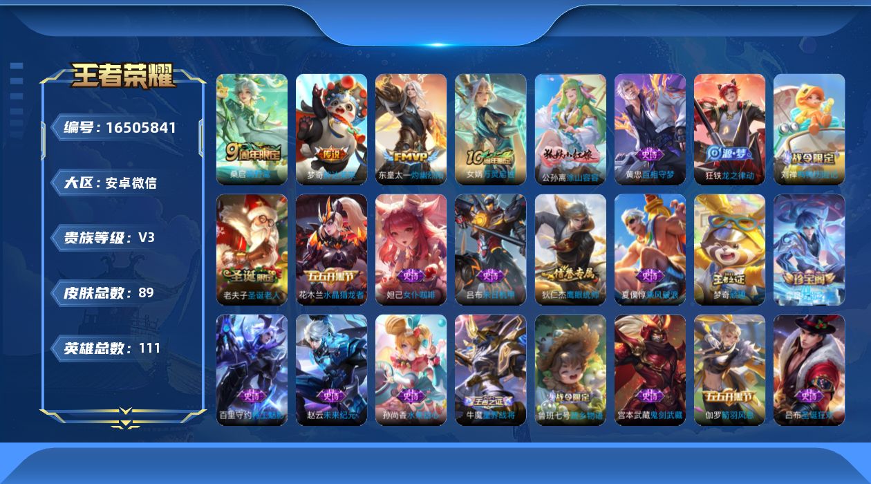 [16505841]v3 4传说 111英雄 89皮肤 可修改实名 有社交场景限制 【英雄全皮】敖隐全皮 【稀有英雄】韩信韩跳跳不知火舞娜可露露鸟人大司命敖隐小龙人夏洛特夏师傅金蝉唐僧戈娅赵云 【传说皮】灼幽烈阳神树通天胖达荣荣 【珍宝阁皮】万物之道 【赛季/战令皮】剑破天穹s35噬灭天穹s37狂想玩偶喵潮玩骑兵天穹祈灯s34顽趣-梦奇天穹之誓s36 【史诗皮】鬼剑武藏德古拉伯爵涂山容容乘风破浪水晶猎龙者百相守梦-黄忠箭羽风息万灵启世鹰眼统帅水果甜心星界战将未来纪元-赵云特工魅影金属风暴蔬乡物语鲁班七号圣诞狂欢末日机甲-吕布女仆咖啡鸭鸭历险记-刘禅天才门将龙之律动 【限定皮】圣诞老人鸣野蒿 【普通皮】启蛰乓乓大师金福满堂东海龙王玫蓝誓约苍林狼骑罗小黑战记-哪吒棒球奇才占星师鸭鸭历险记-沈梦溪景韶洛都激情绿茵鹤鸣心笺埃及法老浪漫序章克喵死亡骑士鬼谷子天穹祈灯s34亚瑟鸿运当头死霸装雪境奇遇-西施五福同心灵野札记天使之翼画中游锦衣卫春野闲踪阴阳师程咬金群星魔术团归虚梦演-曜铁骨偃魂星际陆战队(程咬金)踏浪烽翎救世之瞳拳王布丁狗之约西部大镖客牛魔街头霸王蔬乡物语李元芳帝国元帅命运加冕完美运算野性能量朵莉亚金色潮汐东方不败熔金海岸少女阿狸锦麟游梦掌控之力赤焰之缨幻想奇妙夜虚灵犬护龙腾万里命运角斗场谧流熔炉午夜歌剧院