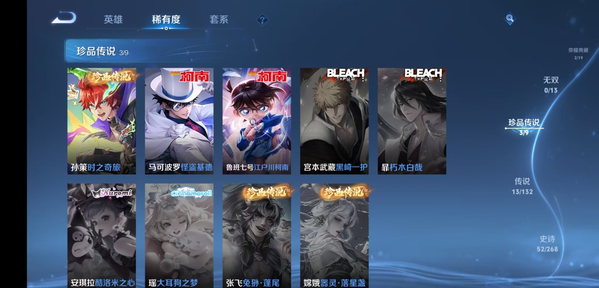 121英雄-153皮肤-[]v7 2典藏 3珍品传说 13传说 121英雄 153皮肤 可修改实名 男号 【英雄全皮】敖隐全皮苍全皮大禹全皮 【稀有英雄】敖隐小龙人大司命韩信韩跳跳夏洛特夏师傅艾琳橘右京橘子娜可露露鸟人不知火舞赵云金蝉唐僧戈娅 【荣耀水晶】九